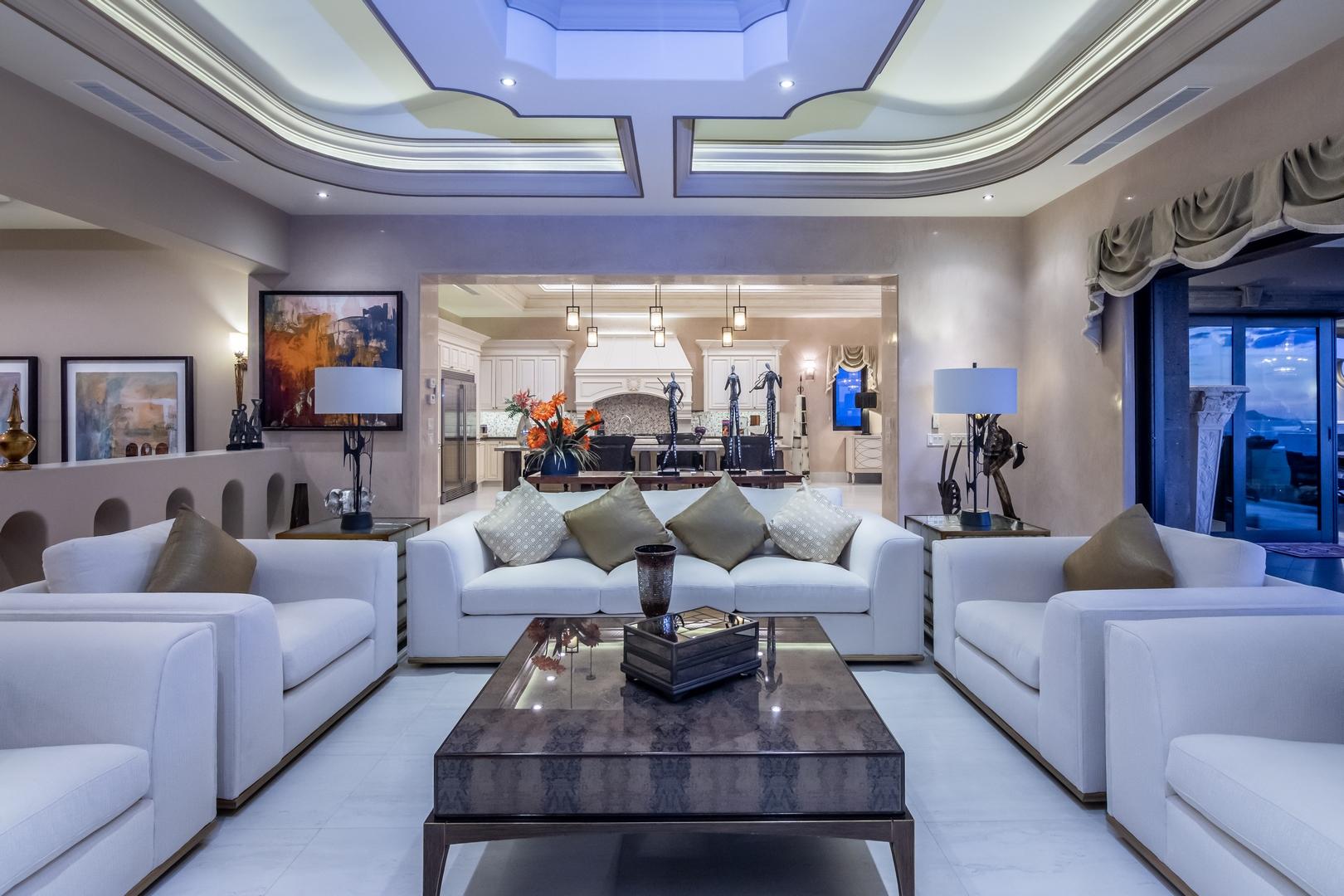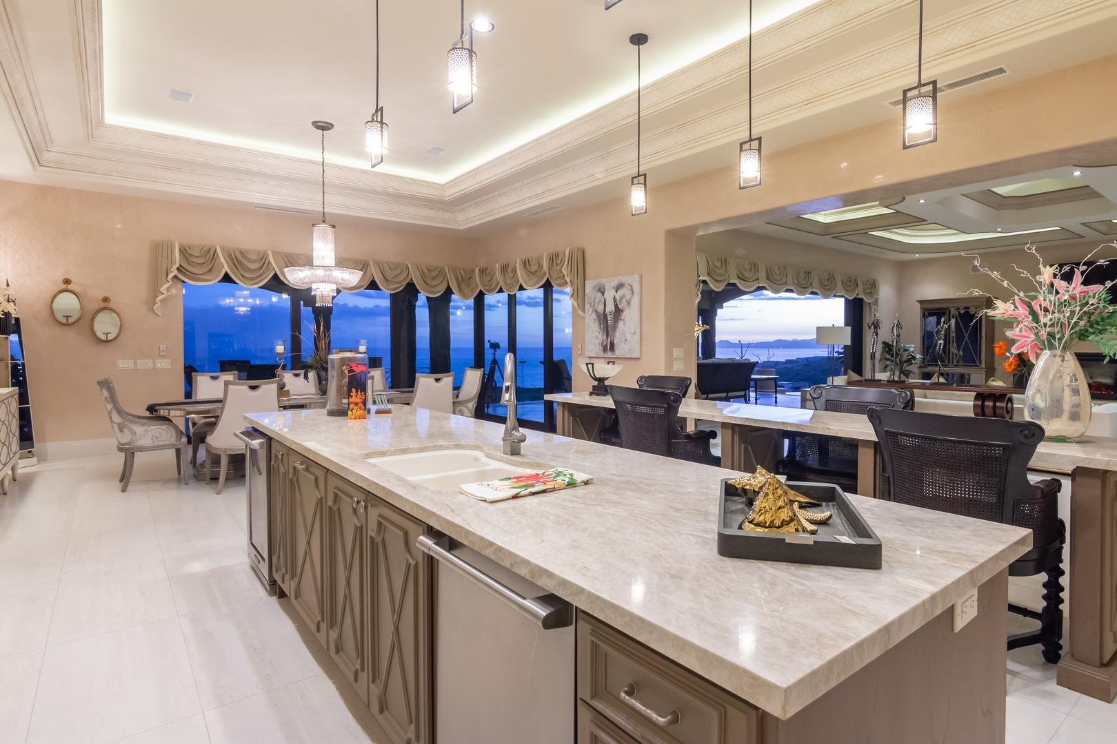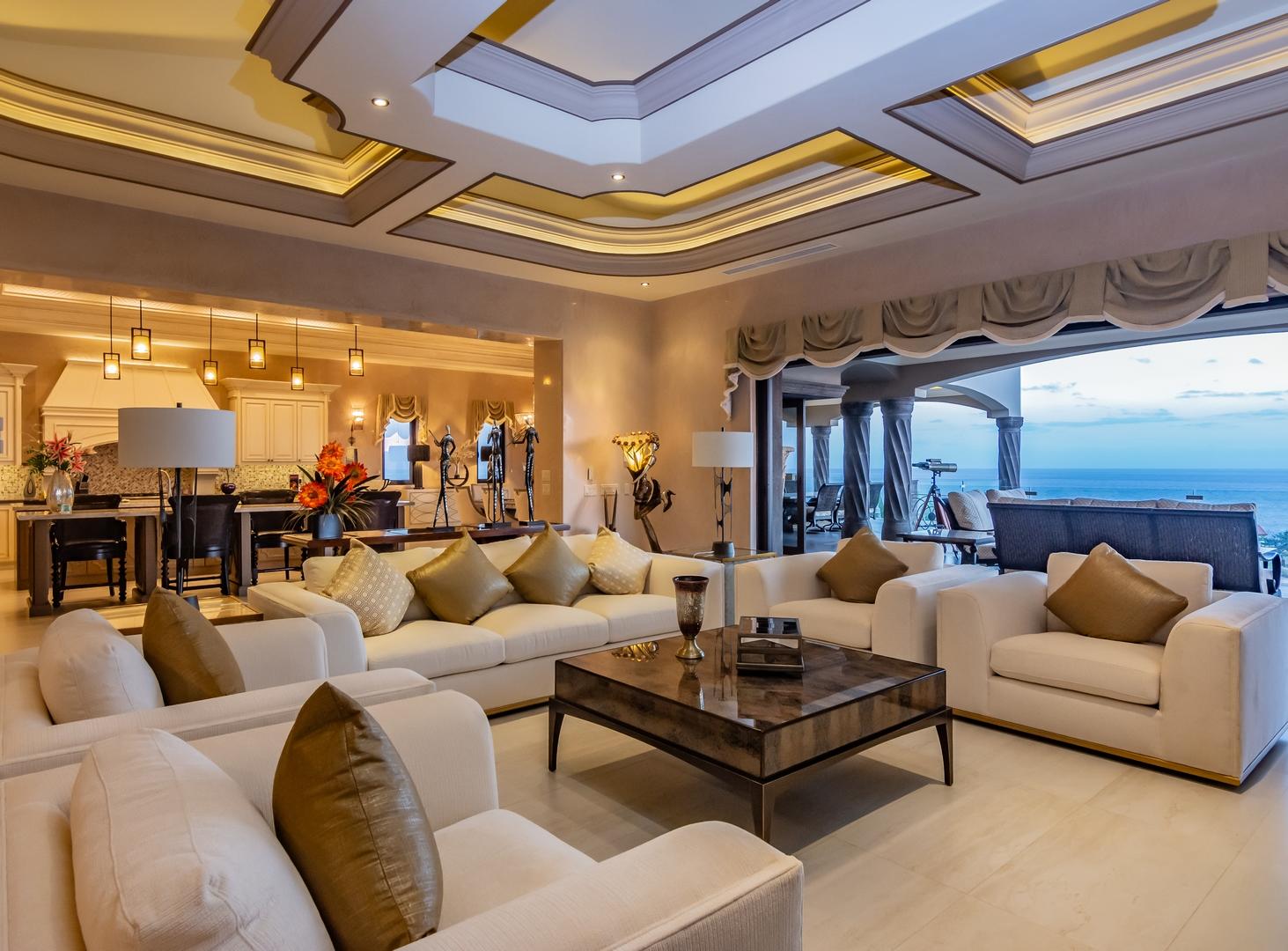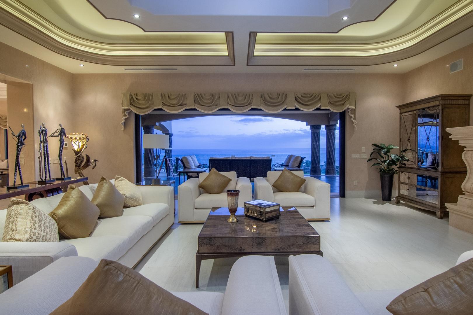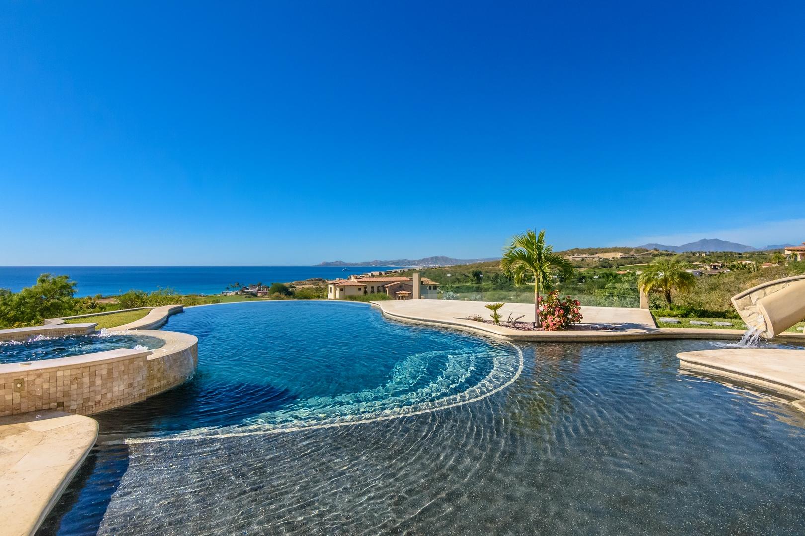 Forever views across the Sea of Cortez to Palmilla Point fill this stunning, elegant, modern and immaculately maintained fairway front home. True to the property’s name, Casa Mi Isla provides a private, personal sanctuary from the cares of the world. Every imaginable luxury has been considered and expertly executed in this expansive home with fine custom finishes throughout. A tastefully decorated Great Room with gourmet kitchen and formal dining area are the centerpieces of the main living area that also includes a luxe Master Bedroom suite complete with private outdoor pool. An office, laundry room and half bath plus plenty of outdoor living and dining complete the upper level. The lower level, accessed by either elevator, interior or exterior stairs includes a theatre style media room,