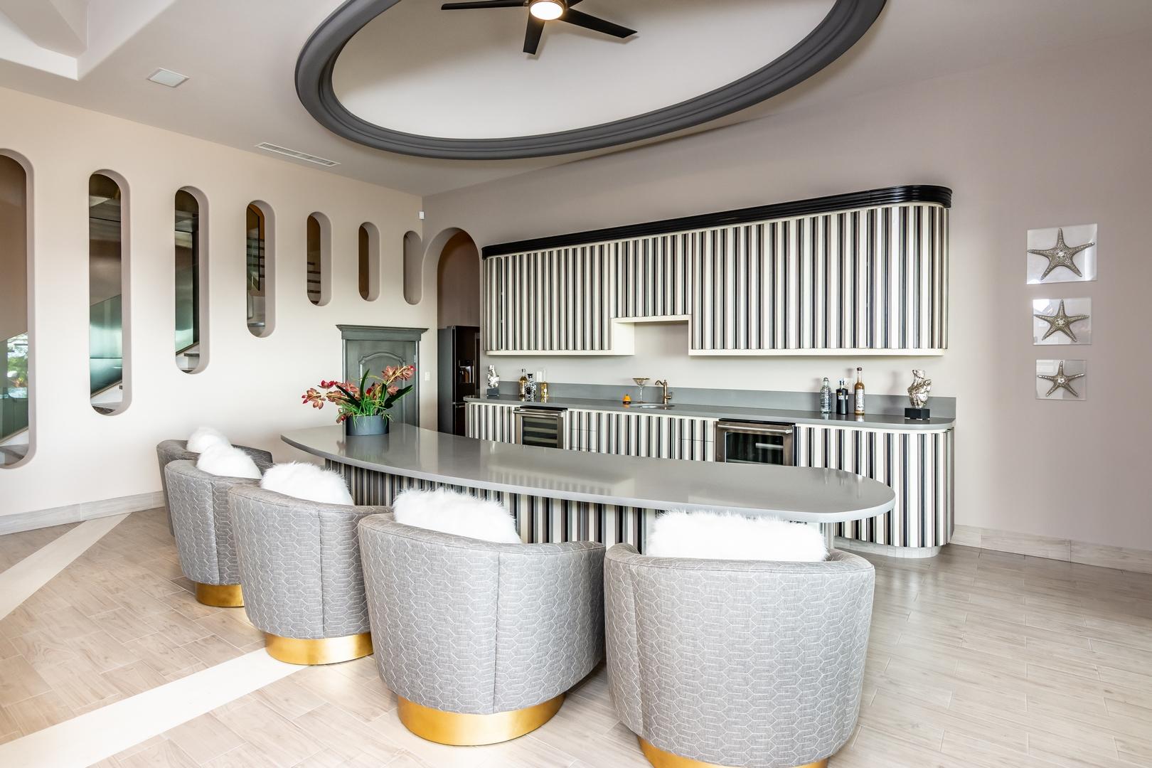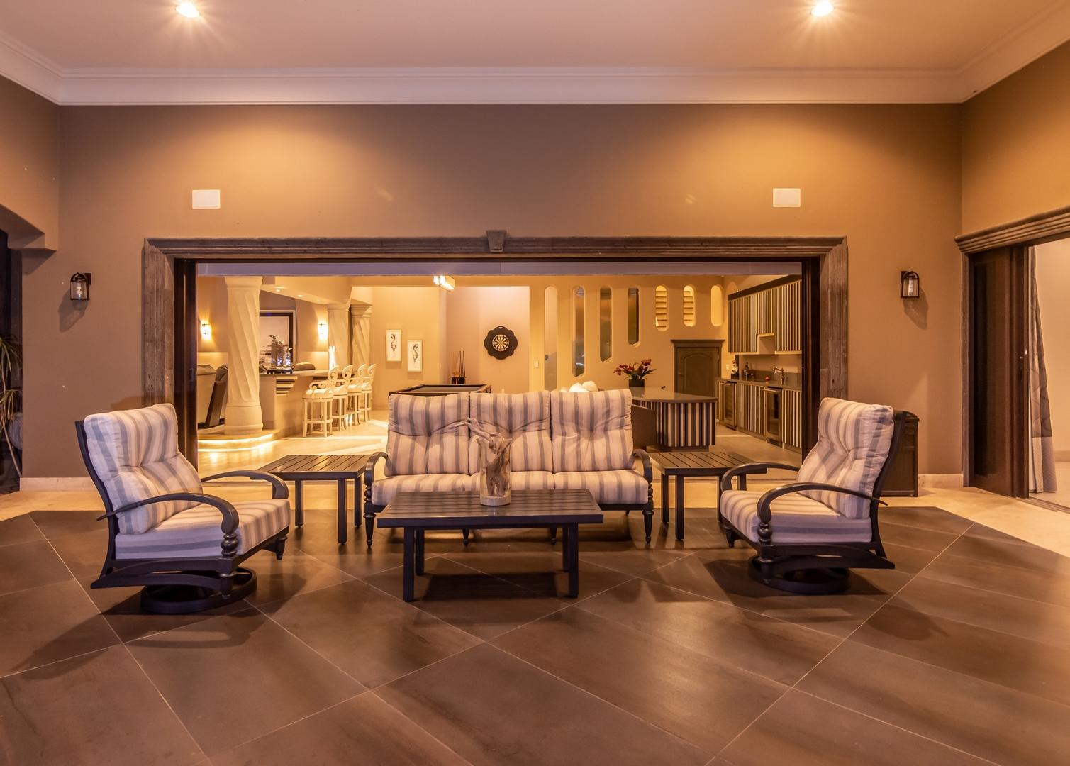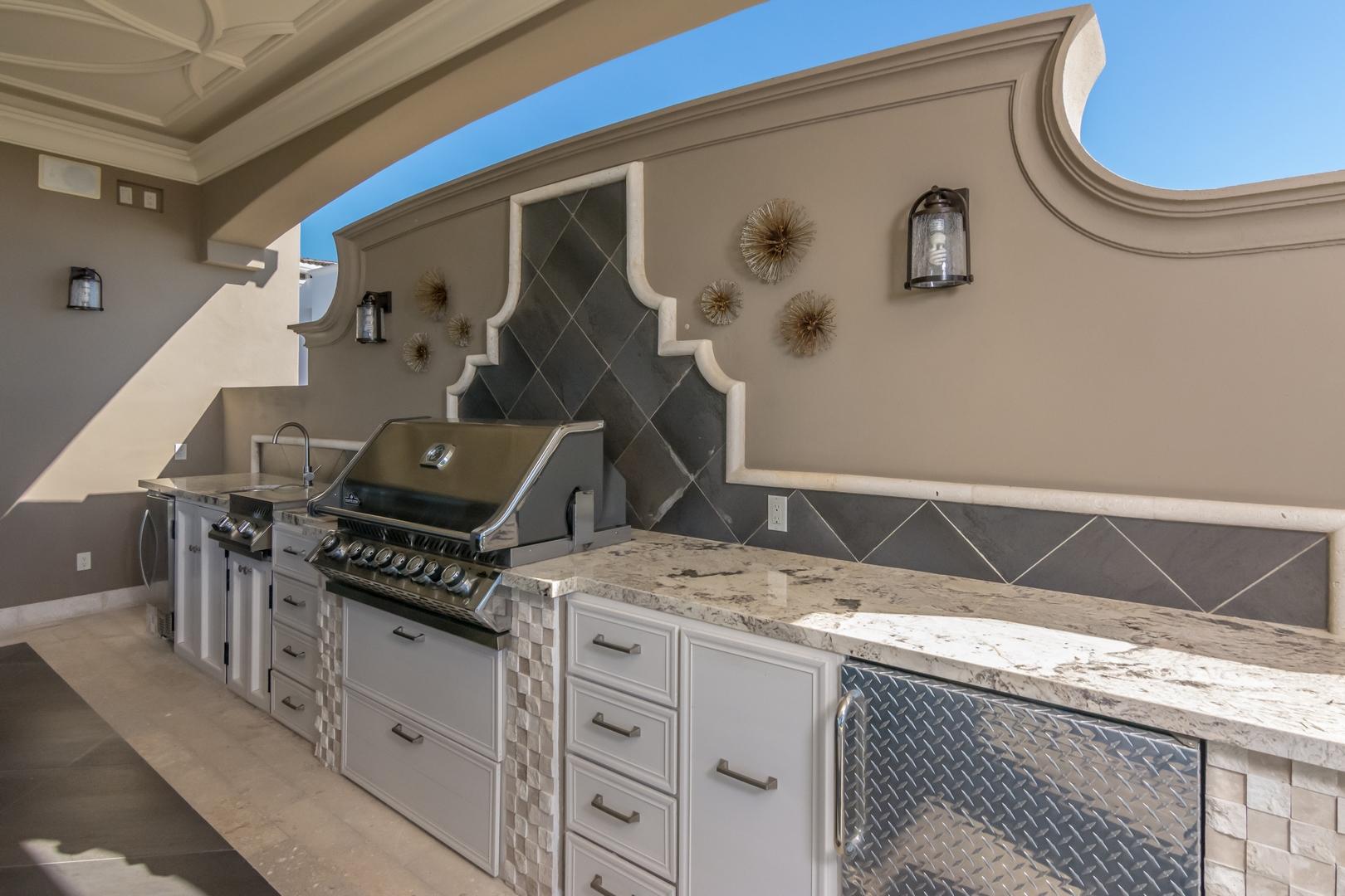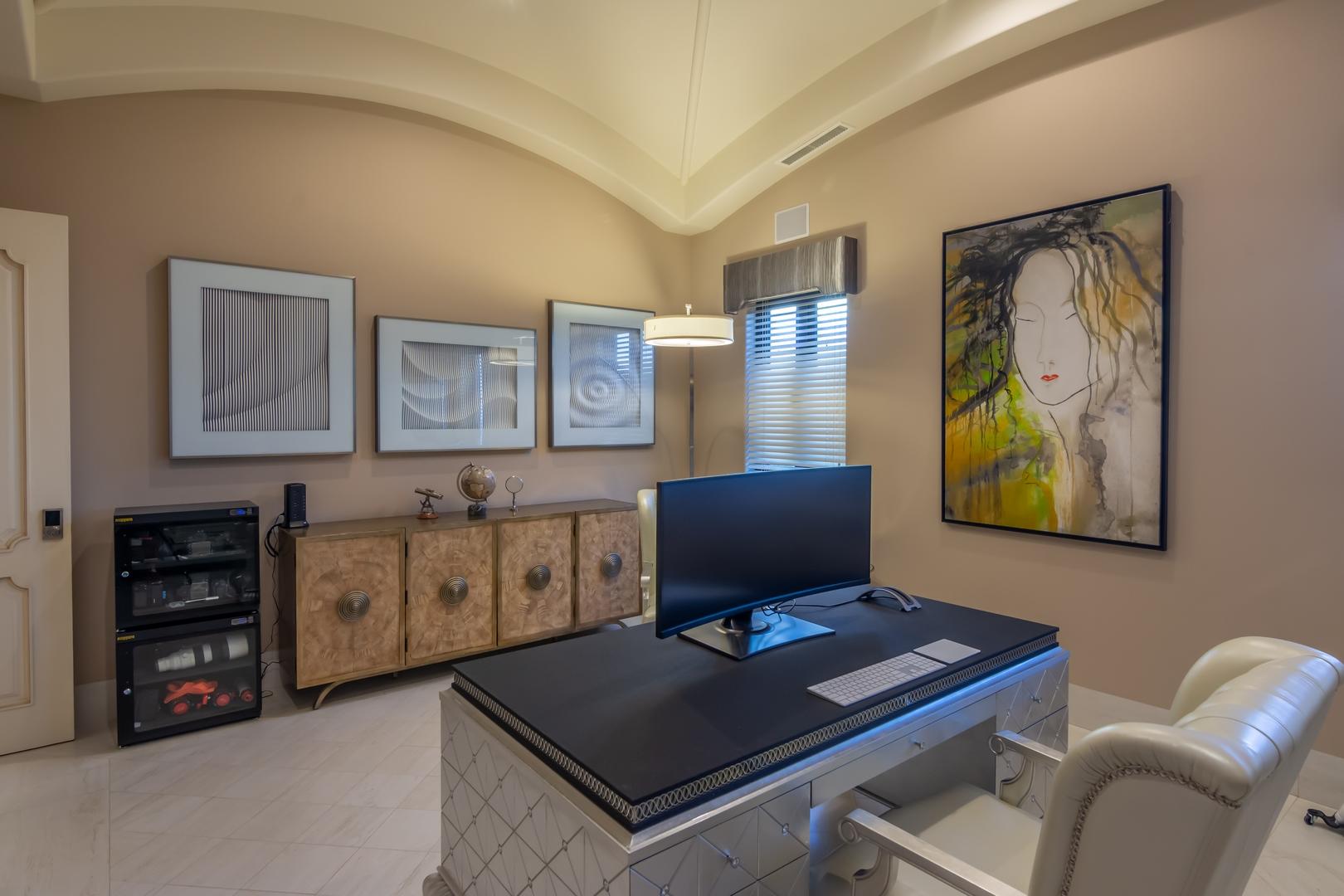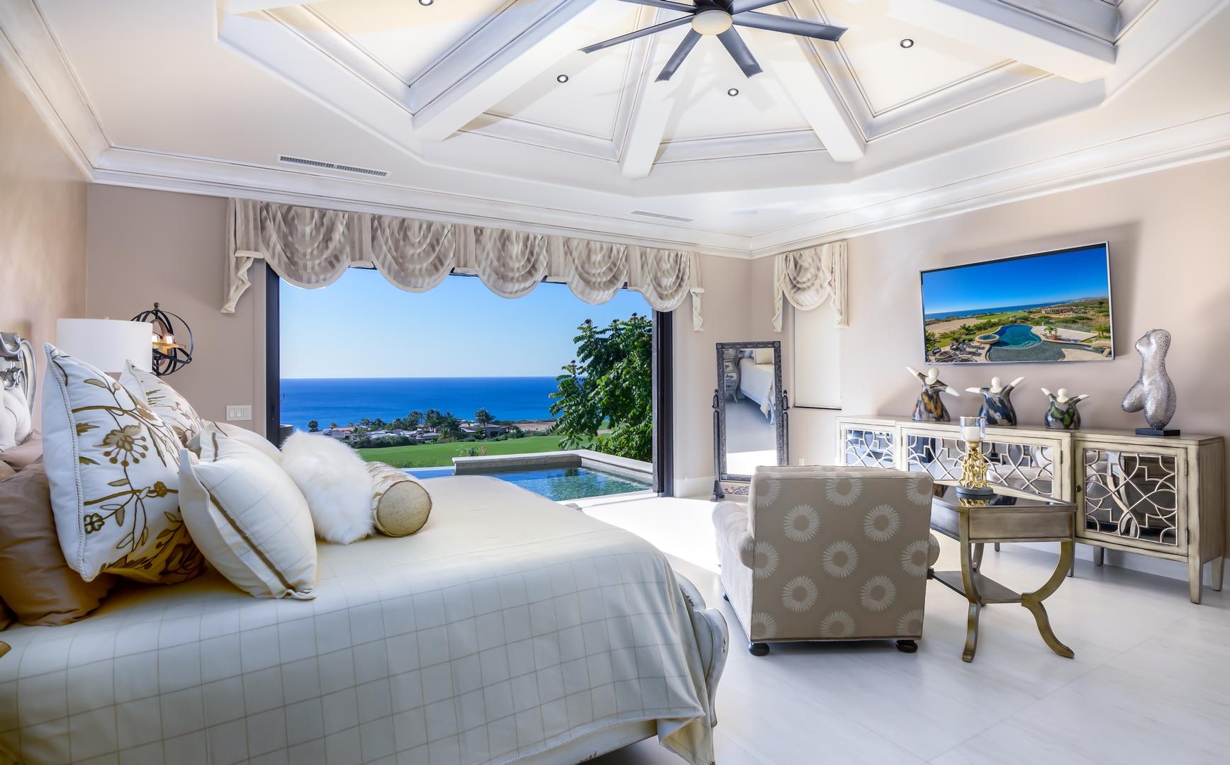 Forever views across the Sea of Cortez to Palmilla Point fill this stunning, elegant, modern and immaculately maintained fairway front home. True to the property’s name, Casa Mi Isla provides a private, personal sanctuary from the cares of the world. Every imaginable luxury has been considered and expertly executed in this expansive home with fine custom finishes throughout. A tastefully decorated Great Room with gourmet kitchen and formal dining area are the centerpieces of the main living area that also includes a luxe Master Bedroom suite complete with private outdoor pool. An office, laundry room and half bath plus plenty of outdoor living and dining complete the upper level. The lower level, accessed by either elevator, interior or exterior stairs includes a theatre style media room,