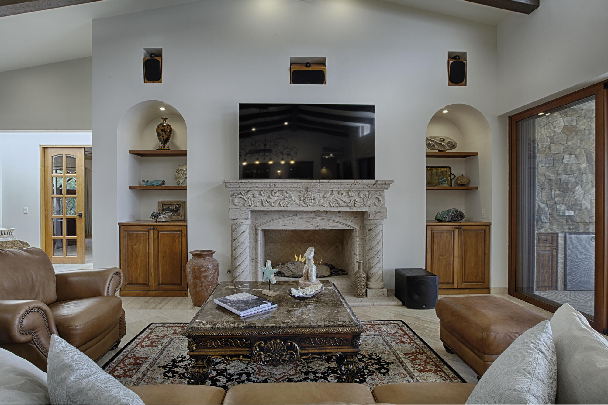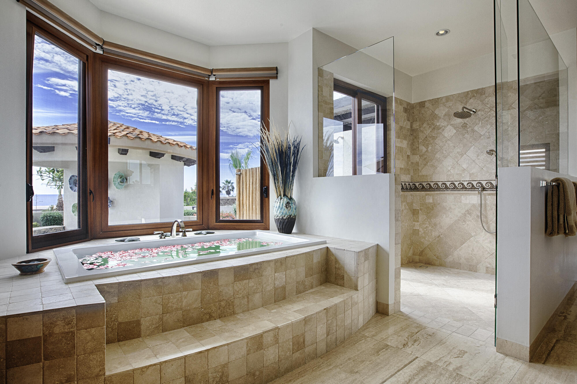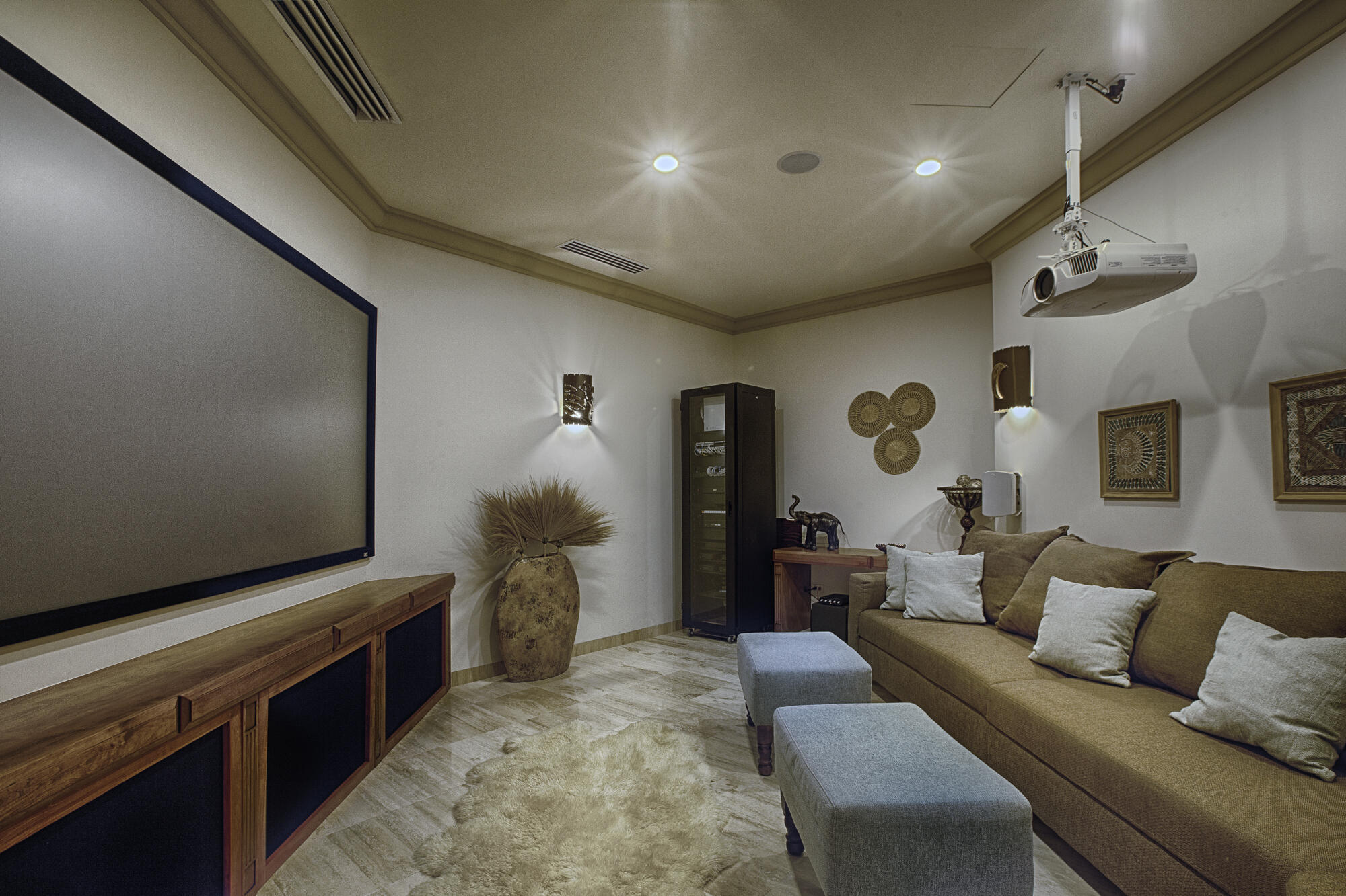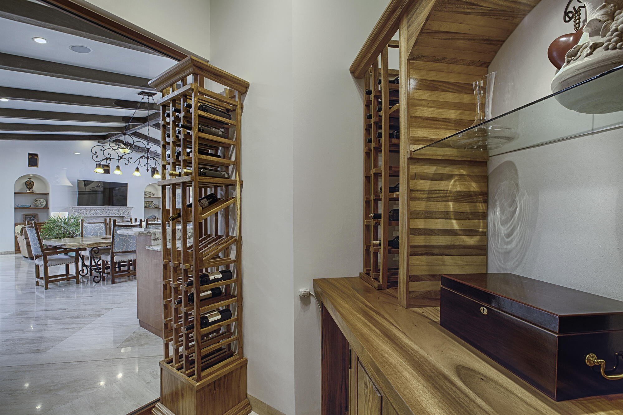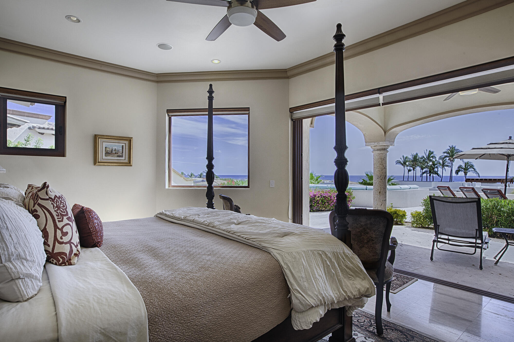 A private coastal sanctuary is this newer 2nd row oceanfront villa meticulously maintained for supreme privacy & luxury. Tranquil cul-de-sac, no thru traffic, beach access across street, easy walk to private Beach Club. 5 bedrooms w/ en-suite baths (one serves as office), 2 half baths, big ocean views from nearly every room. Epic outdoor retreat: expansive terraces with large pool and swim-up bar, Jacuzzi, firepit, rooftop terrace offering 360 ocean & mountain views. Large-shaded outdoor living/dining w/fireplace, gourmet outdoor BBQ kitchen. Home features breathtaking Custom Parota wood wine room, premium 4K theater, elegant custom bar w/appliances. Single-story, flooded with natural light via windows & skylights, 29 solar panels, ultra-low bills, on-demand water heaters, and more.
