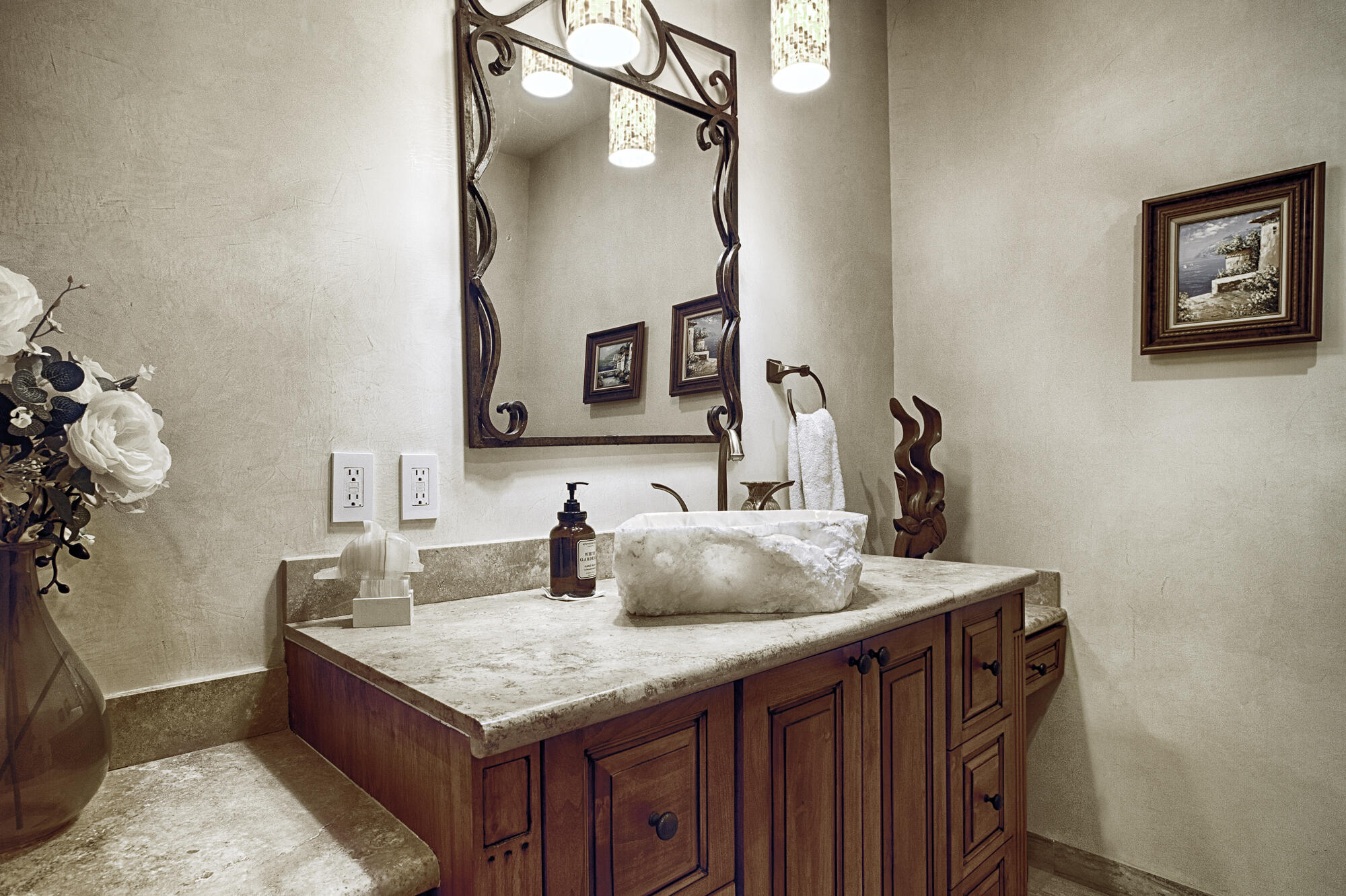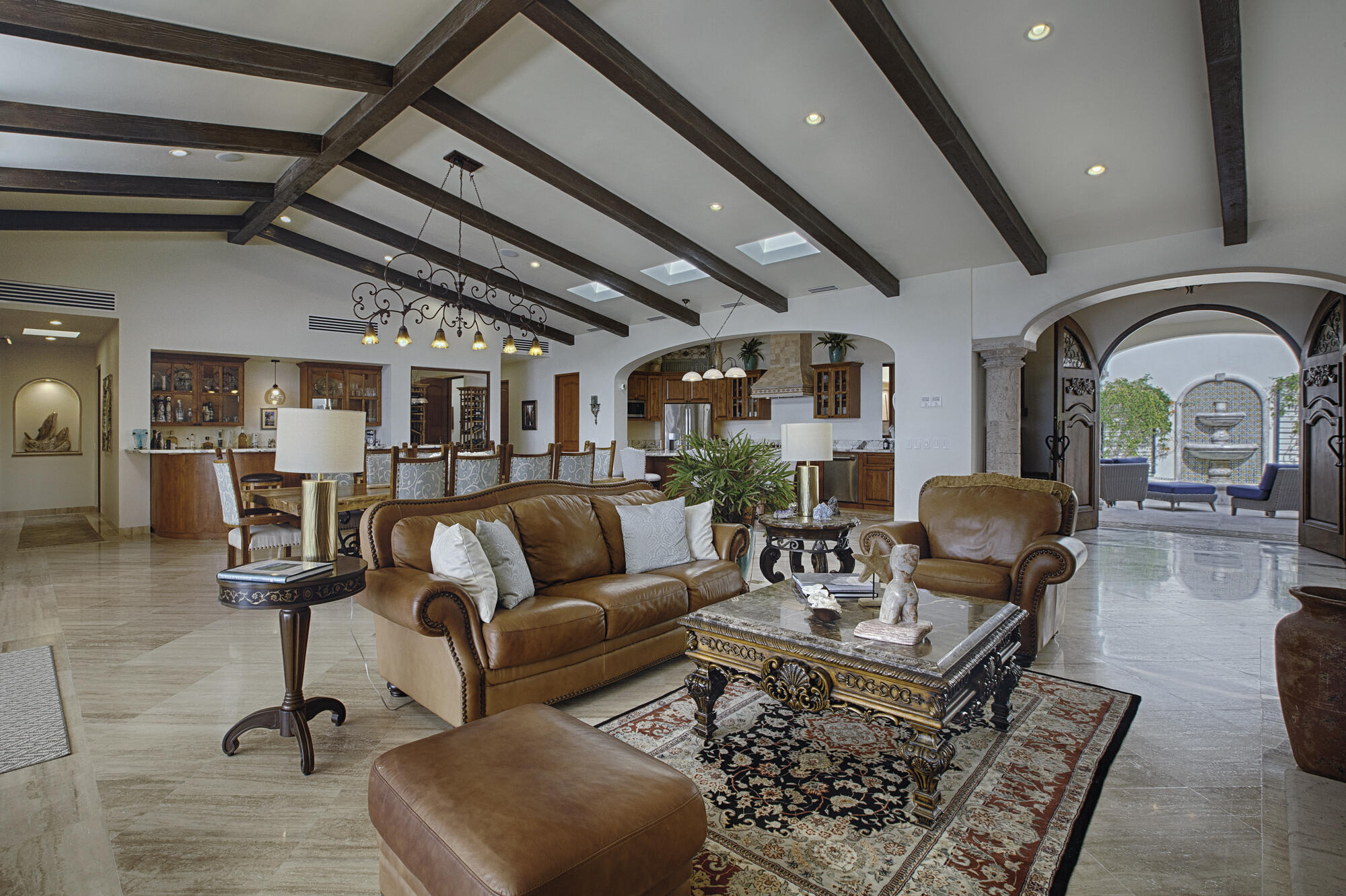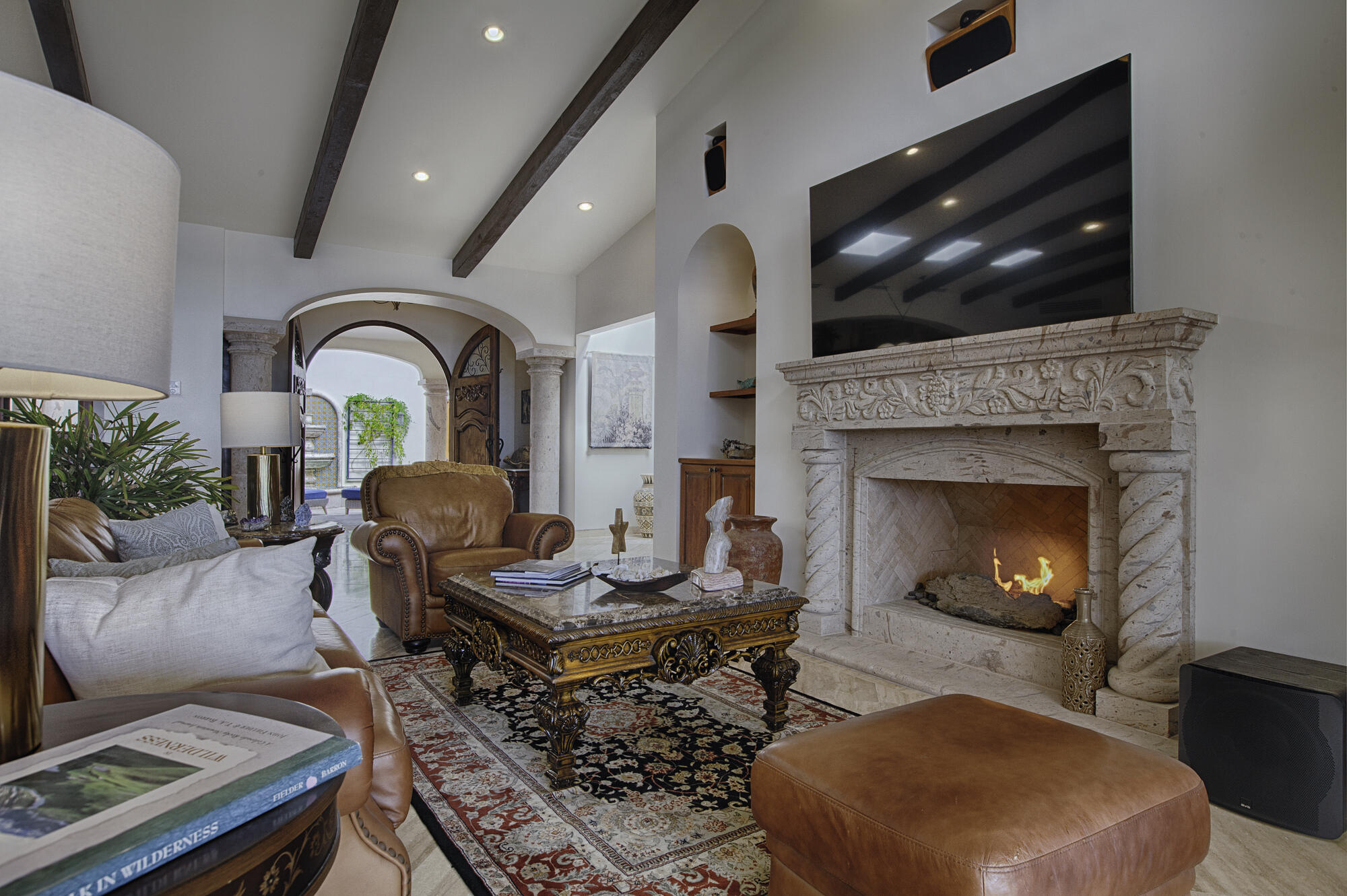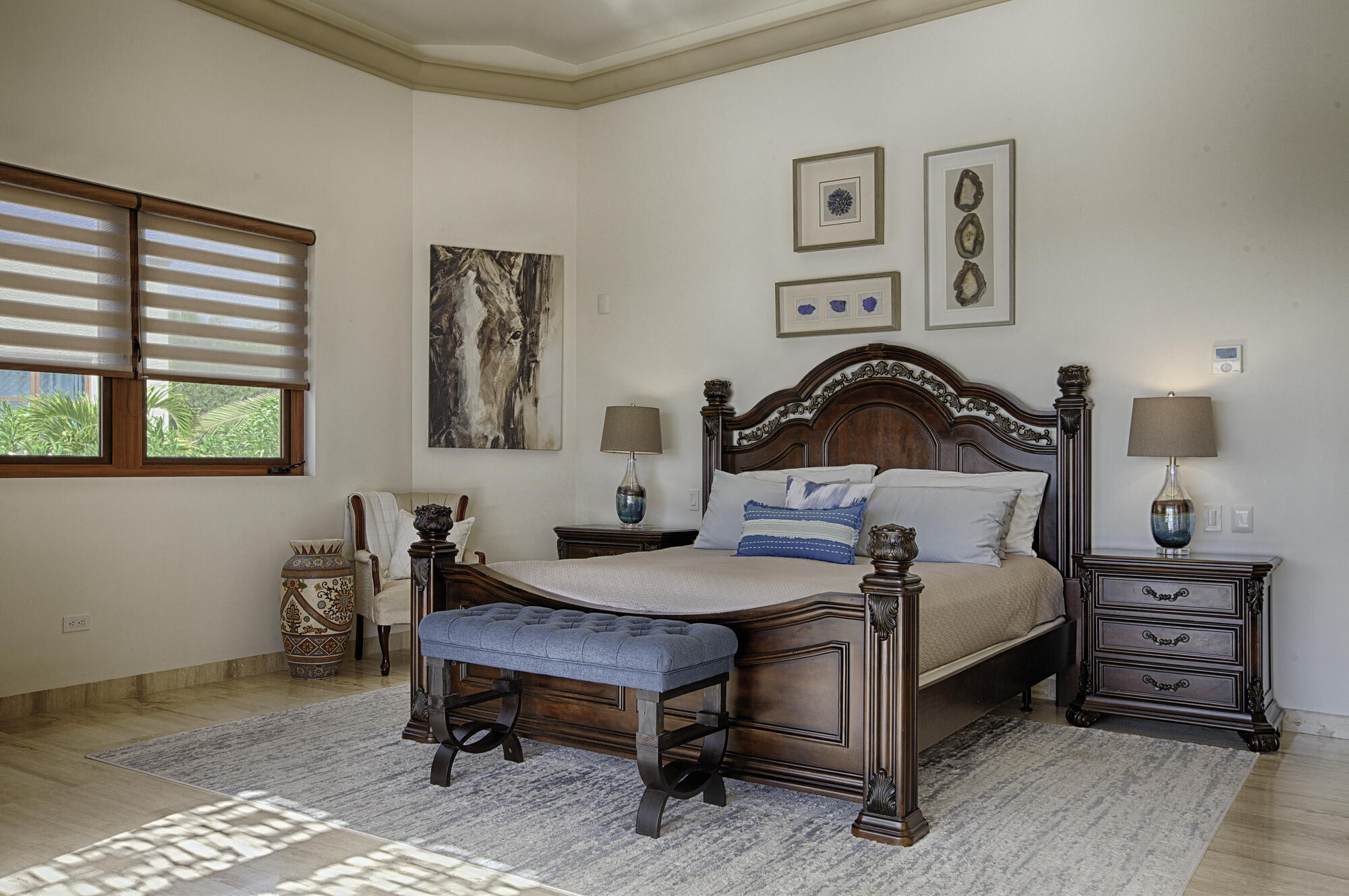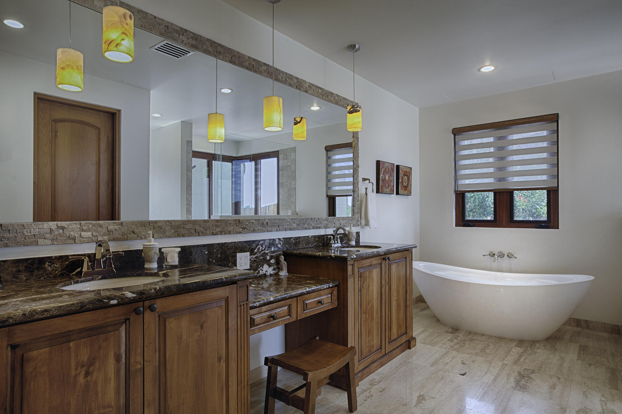 A private coastal sanctuary is this newer 2nd row oceanfront villa meticulously maintained for supreme privacy & luxury. Tranquil cul-de-sac, no thru traffic, beach access across street, easy walk to private Beach Club. 5 bedrooms w/ en-suite baths (one serves as office), 2 half baths, big ocean views from nearly every room. Epic outdoor retreat: expansive terraces with large pool and swim-up bar, Jacuzzi, firepit, rooftop terrace offering 360 ocean & mountain views. Large-shaded outdoor living/dining w/fireplace, gourmet outdoor BBQ kitchen. Home features breathtaking Custom Parota wood wine room, premium 4K theater, elegant custom bar w/appliances. Single-story, flooded with natural light via windows & skylights, 29 solar panels, ultra-low bills, on-demand water heaters, and more.