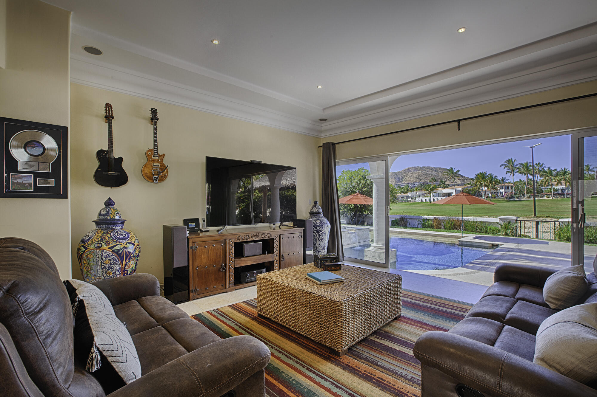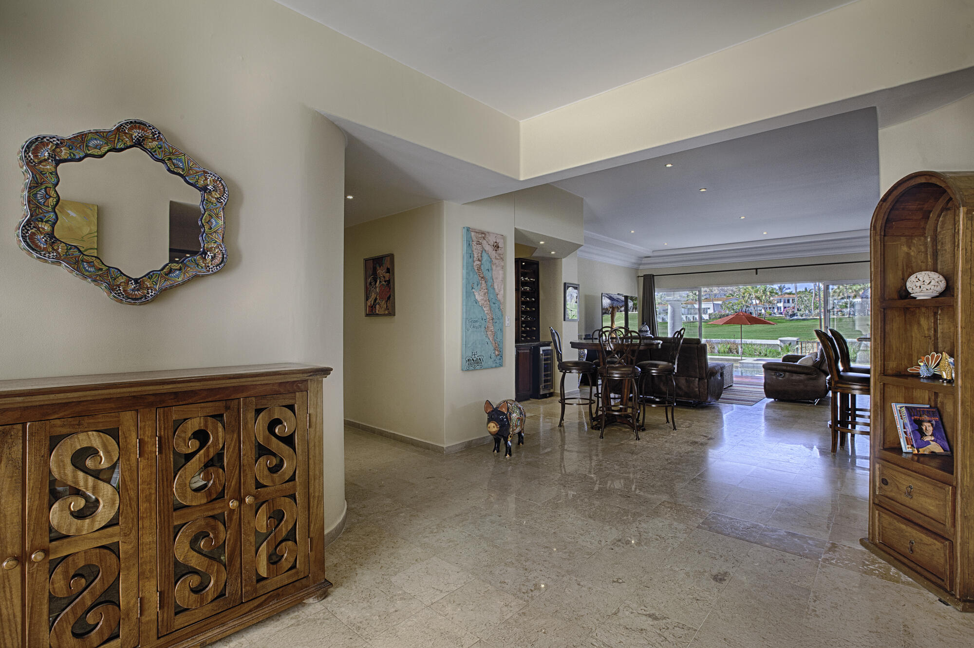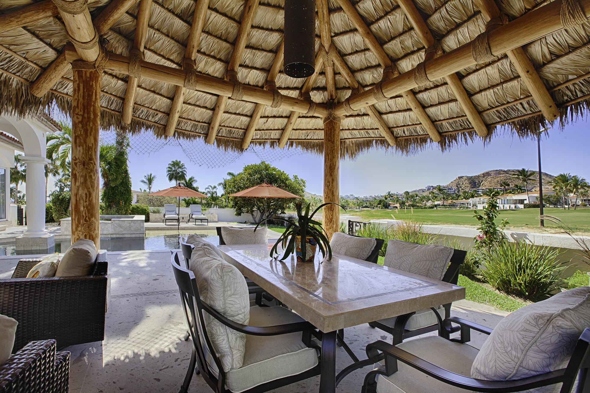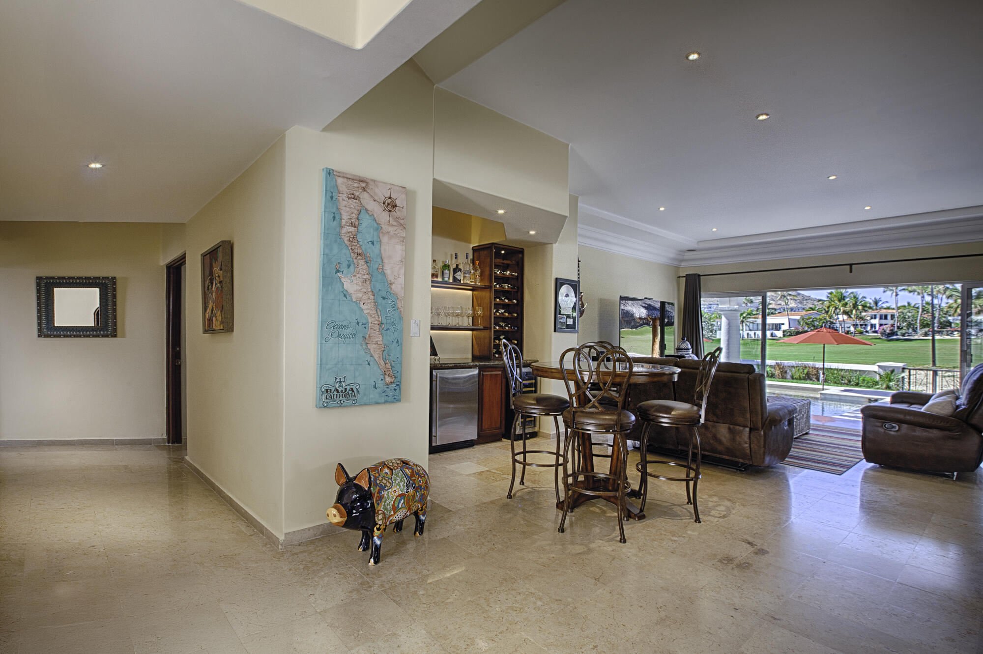 Discover Casa Oceano, a stunning single-story fairway home in one of Los Cabos’ most coveted communities. Prime location with year-round swimmable beaches, championship golf, vibrant social club, and easy access to shopping, gourmet cafes, restaurants, spas, fitness, organic markets, and endless events.This elegant residence boasts 5 ensuite bedrooms total:-3 spacious suites within the main home – one a generous live-in quarters with private en-suite.-2 additional private lock-off suites – perfect for guests, family, or rental income.Step outside to a beautifully redesigned pool terrace that expands your entertaining and relaxation space, seamlessly complementing the inviting indoor living areas. Your coastal dream awaits at Casa Oceano. LOT 9 ALSO FOR SALE.
