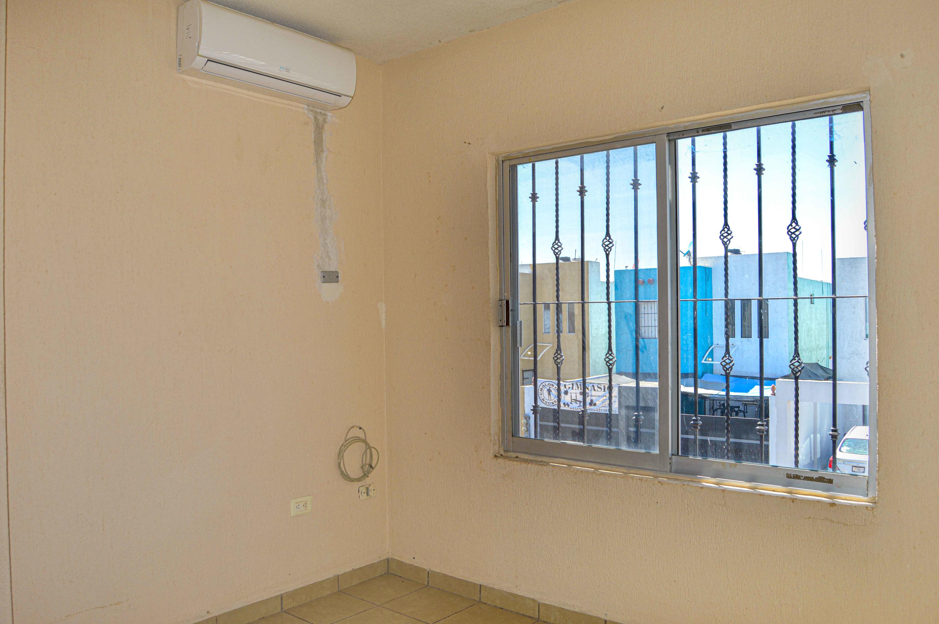 Hermosa casa de dos pisos, 3 recamaras, 1.5 banos, cocina integral, 3 minisplits, espacio para 2 autos, piso de concreto en cochera, pasillo lateral y patio trasero, lavadero, aljibe, tinaco, barda perimetral de 25 metros.Precio en pesos: $895,000.00