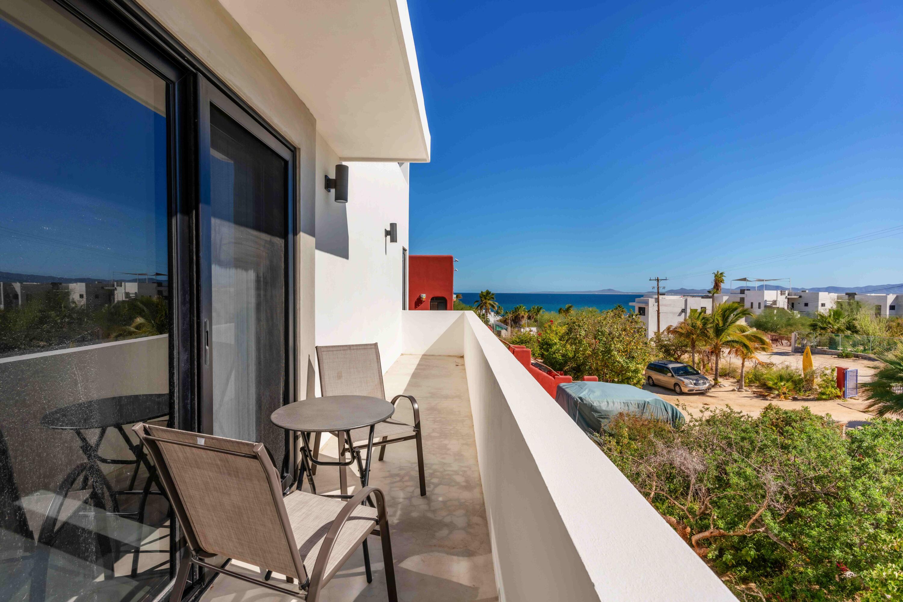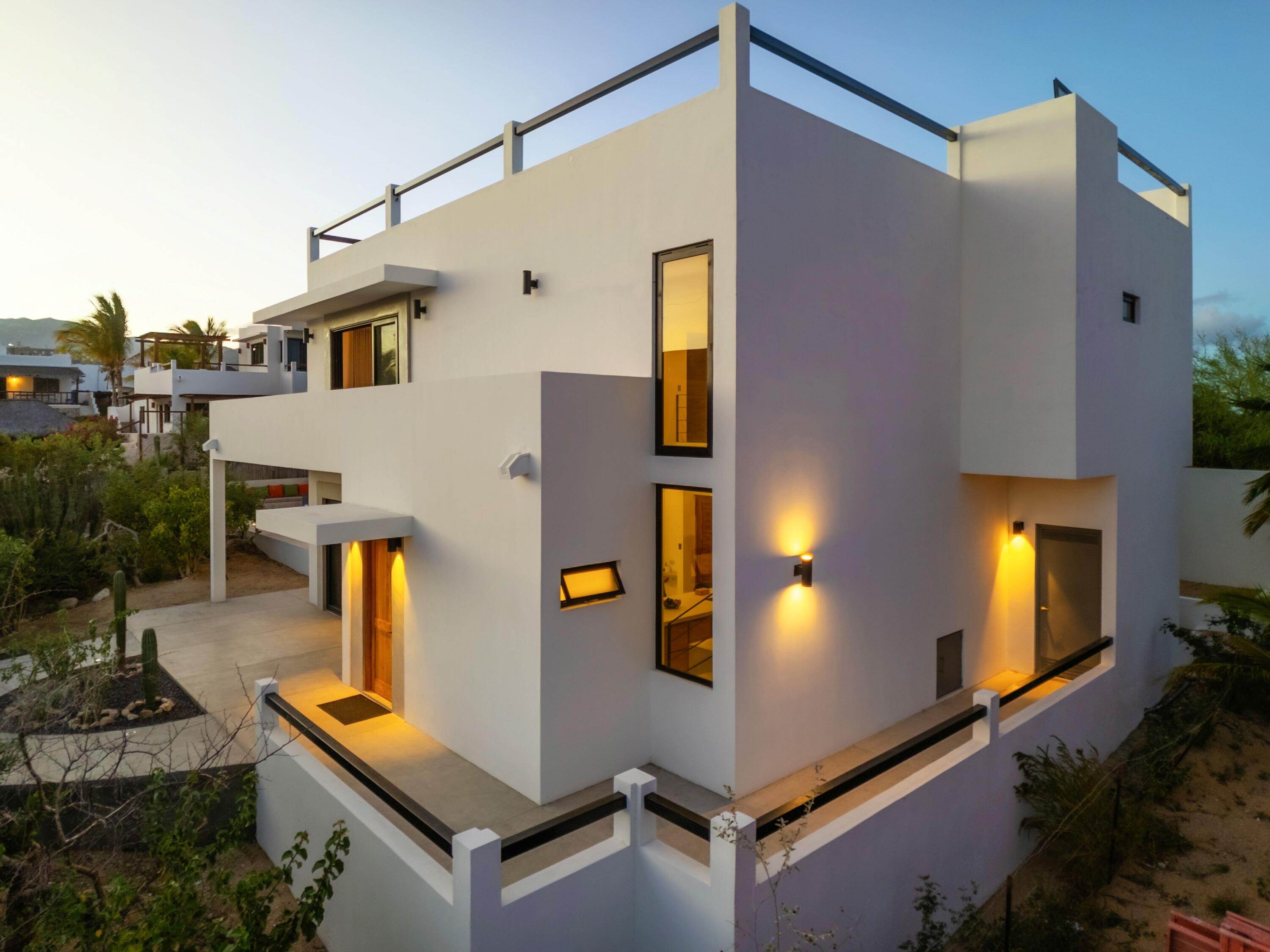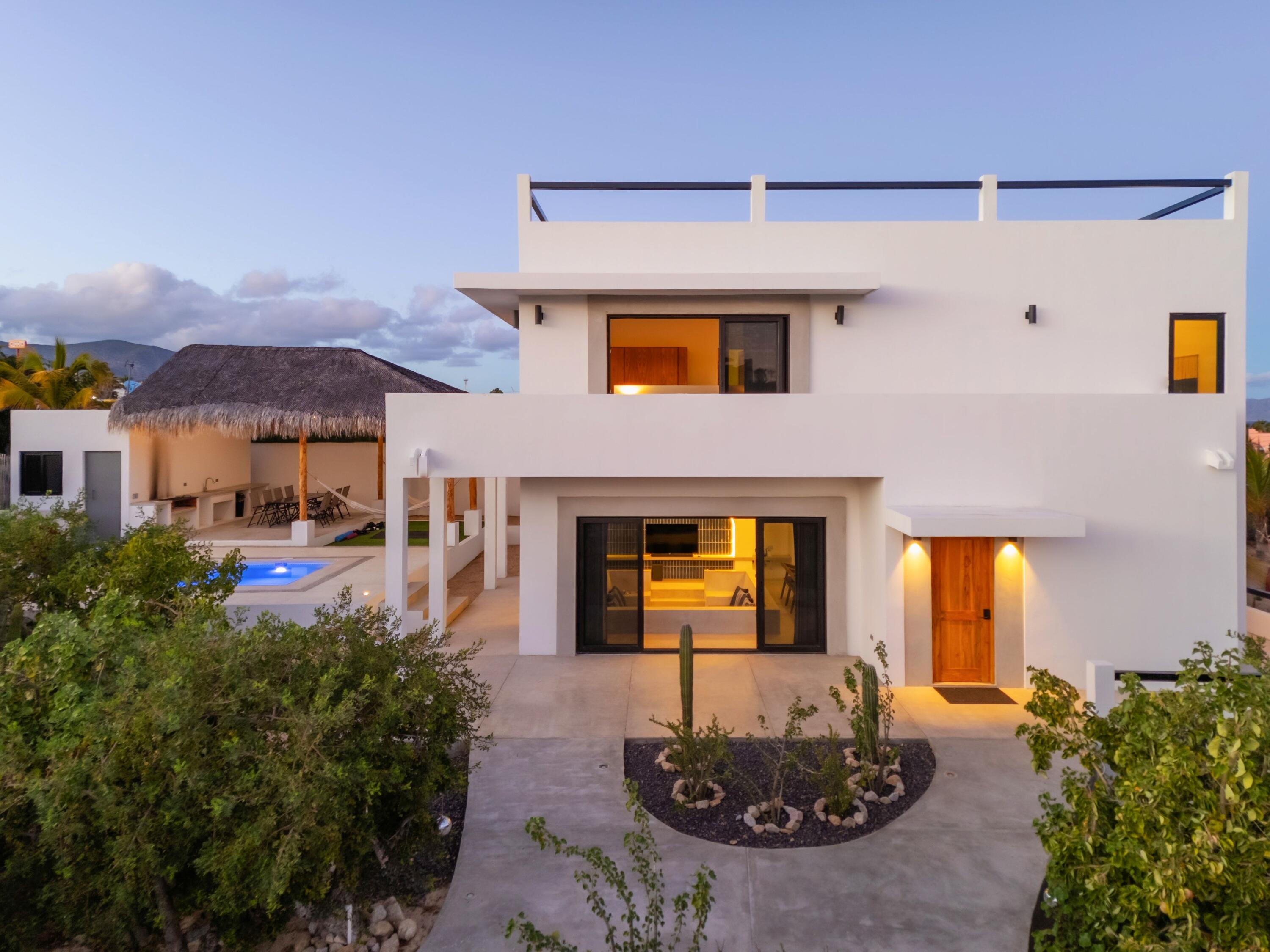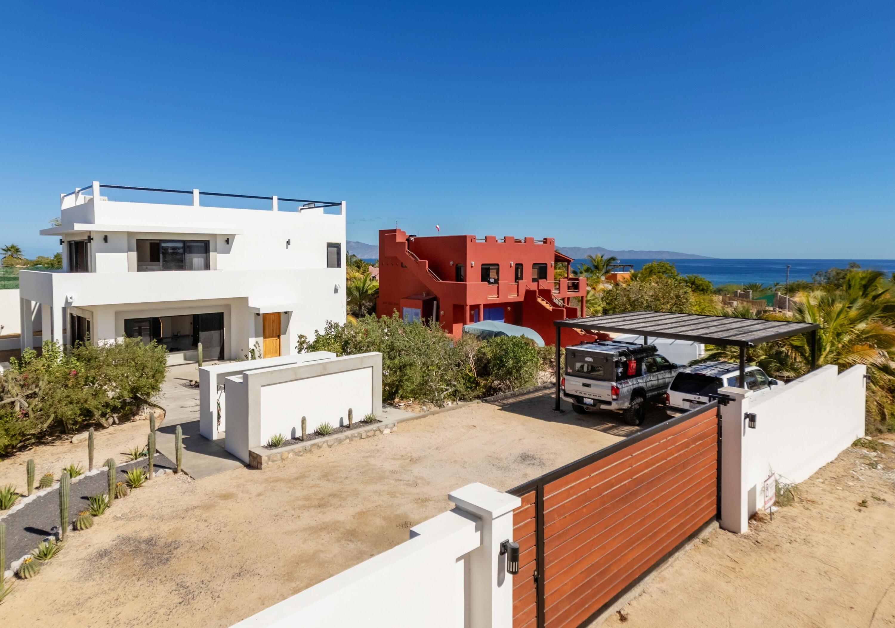 Casa Pitaya is a brand new modern home set on an expansive 1,000 m lot in El Teso, one of the most desirable and walkable neighborhoods between La Ventana and El Sargento. Just steps from a beach access point, the location is ideal for carrying kite and wind sports gear on foot, with restaurants, cafes, and local shops all within minutes. This property offers a true turnkey opportunity–perfect for personal enjoyment or as a high performing vacation rental in one of Baja’s most sought after coastal destinations. INTERIOR FEATURES: 3 king bedrooms, each with a full en suite bathroom and custom wood closets, One bedroom conveniently located on the ground floor. A spacious primary suite with a private terrace and ocean views.