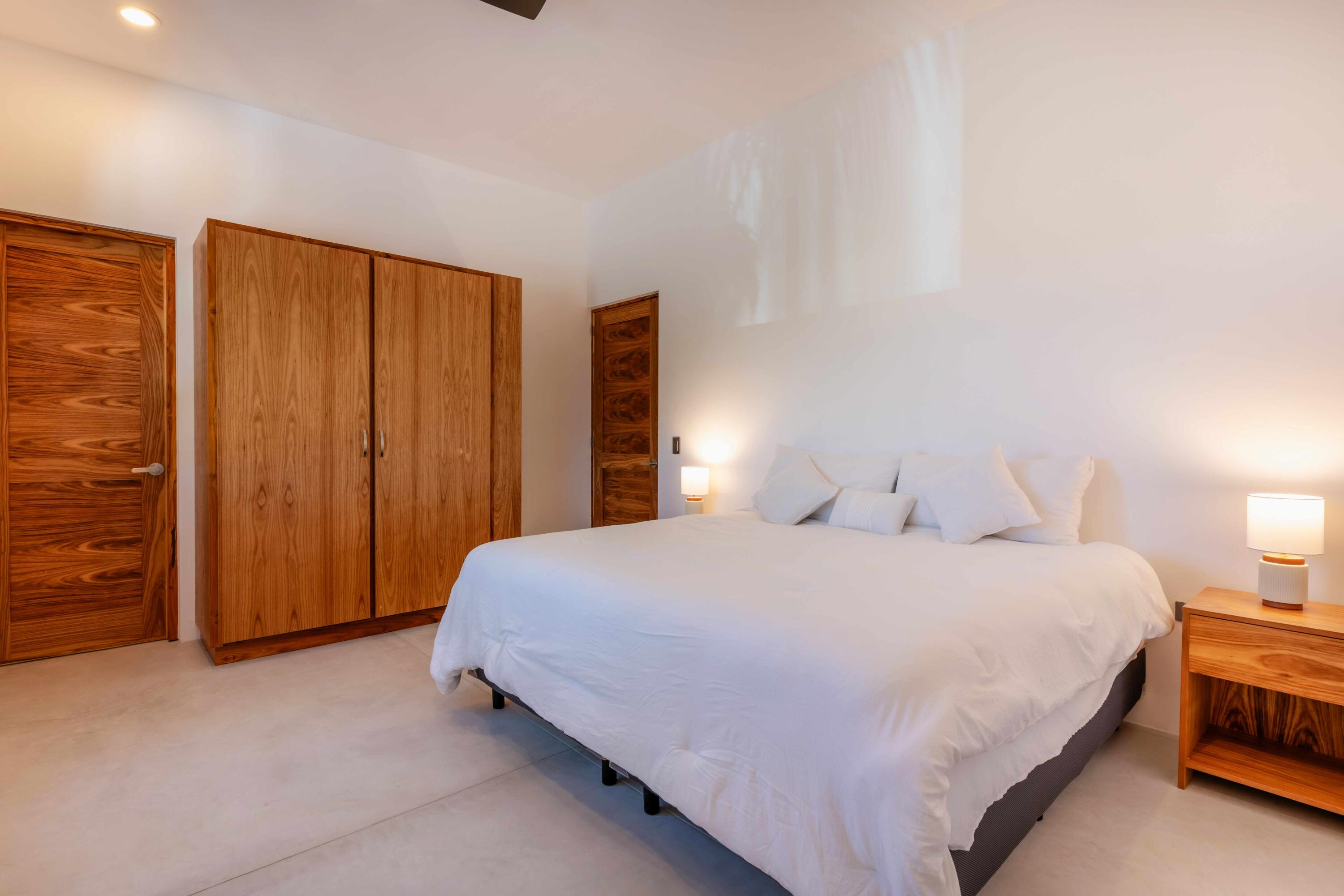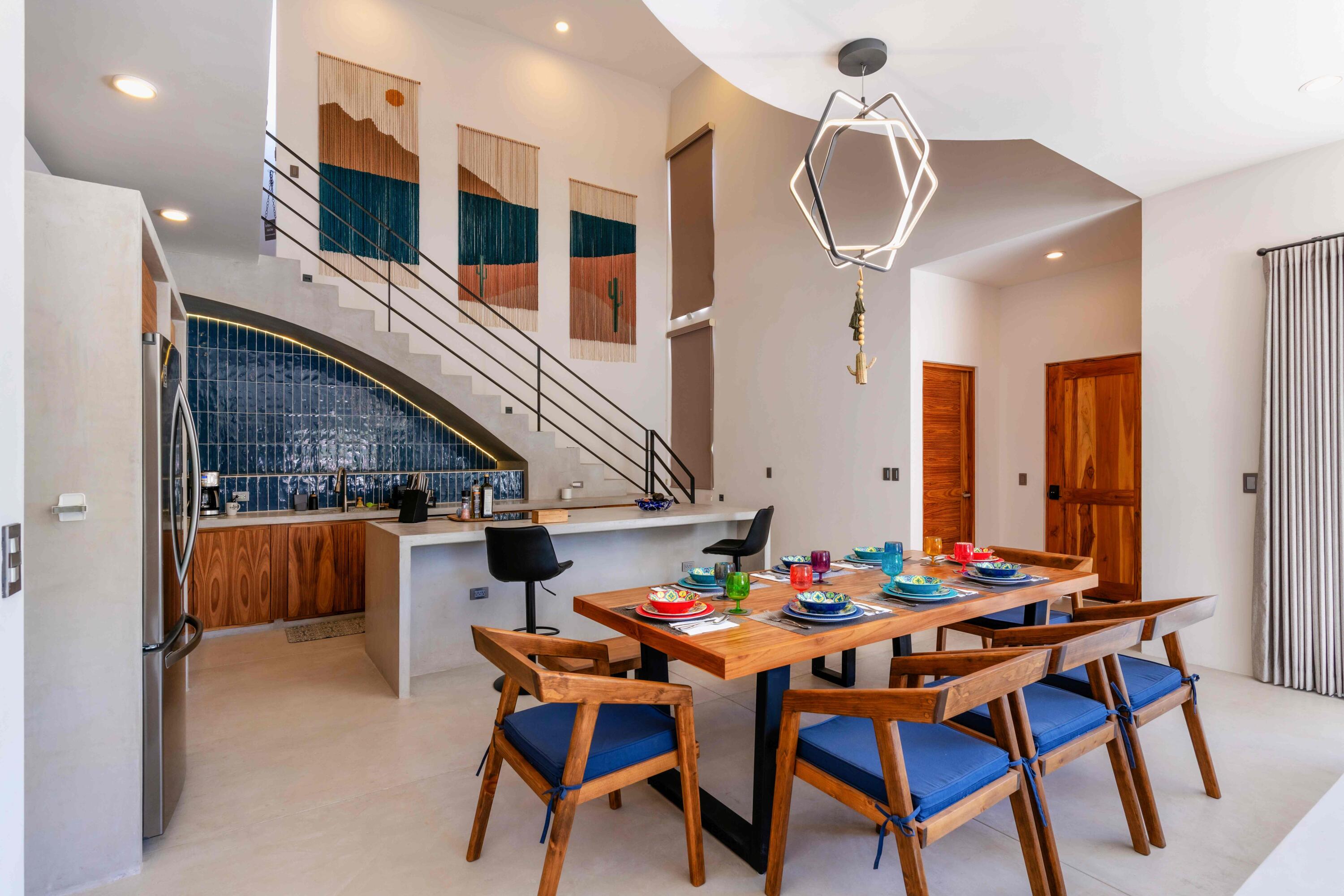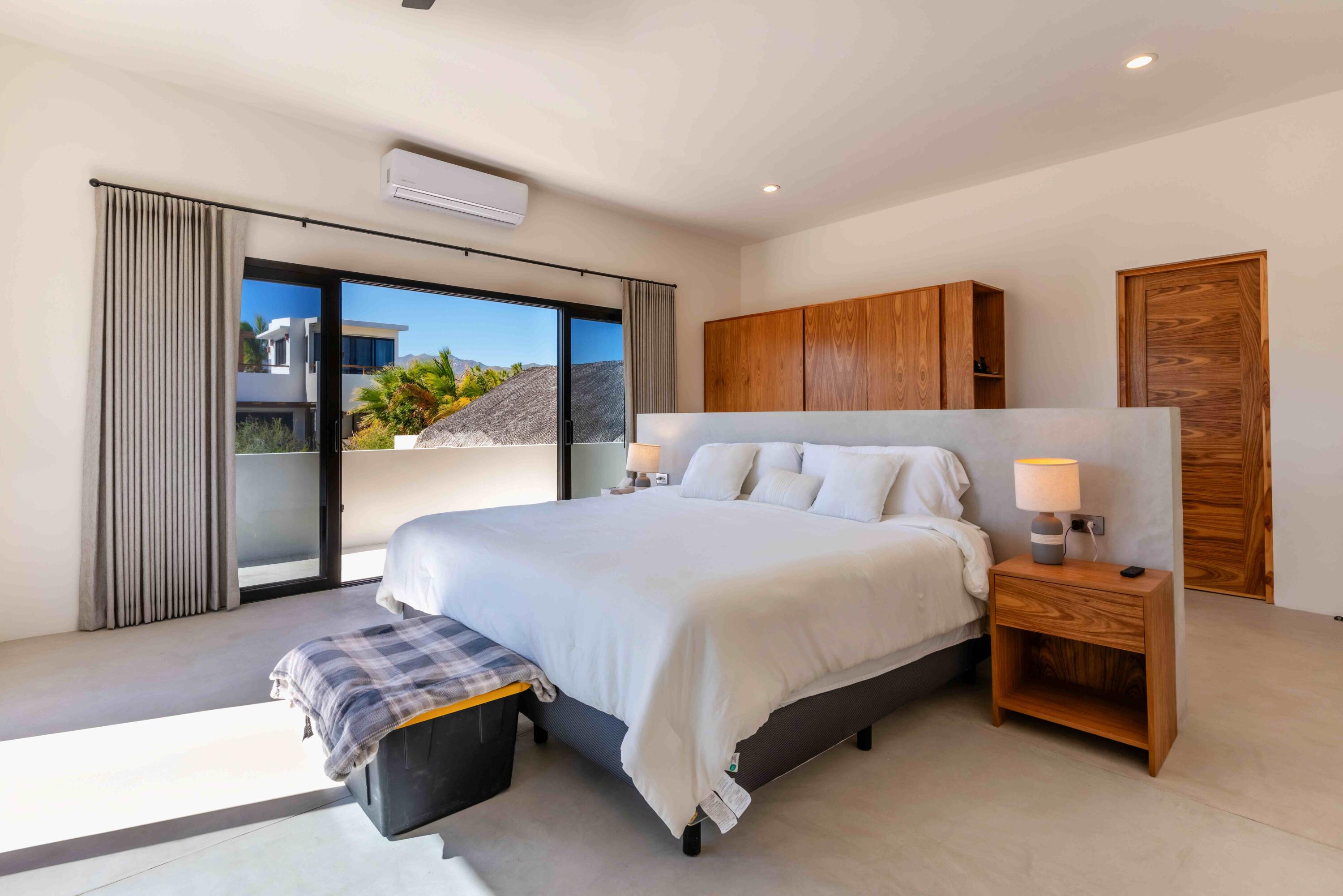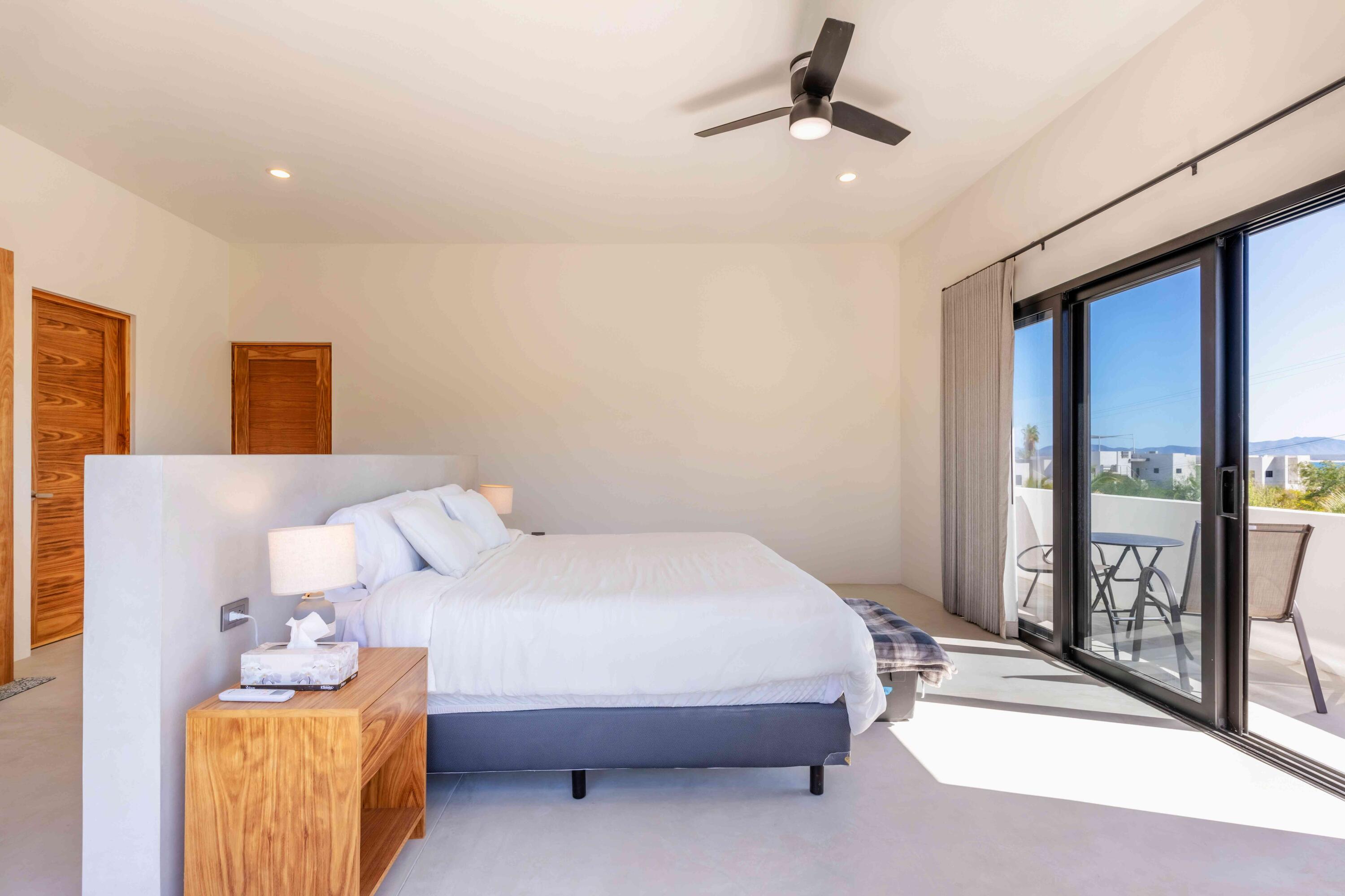 Casa Pitaya is a brand new modern home set on an expansive 1,000 m lot in El Teso, one of the most desirable and walkable neighborhoods between La Ventana and El Sargento. Just steps from a beach access point, the location is ideal for carrying kite and wind sports gear on foot, with restaurants, cafes, and local shops all within minutes. This property offers a true turnkey opportunity–perfect for personal enjoyment or as a high performing vacation rental in one of Baja’s most sought after coastal destinations. INTERIOR FEATURES: 3 king bedrooms, each with a full en suite bathroom and custom wood closets, One bedroom conveniently located on the ground floor. A spacious primary suite with a private terrace and ocean views.