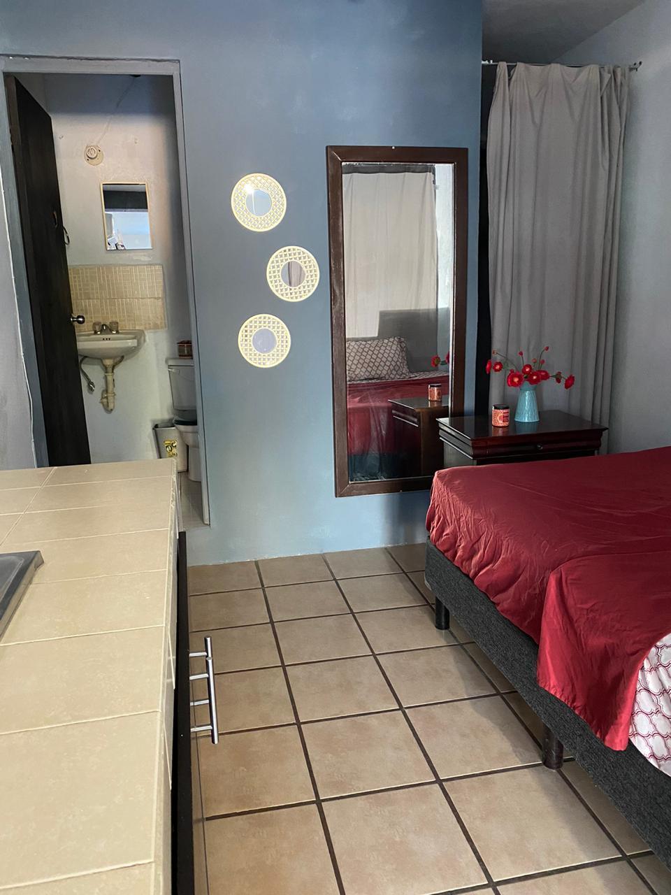 Centrica casa sin muebles de 3 recamaras con amplio patio trasero con mucho potencial y un departamento amueblado al frente del predio, especial y listo para renta vacacional o a largo plazo, ya que cuenta con puerta en banqueta, cocineta, cama y bano en un espacio tipo estudio, muy centrico, a solo unas cuadras del Museo de Historia de BCS.precio en pesos: $,2180,000. pesos mxn.