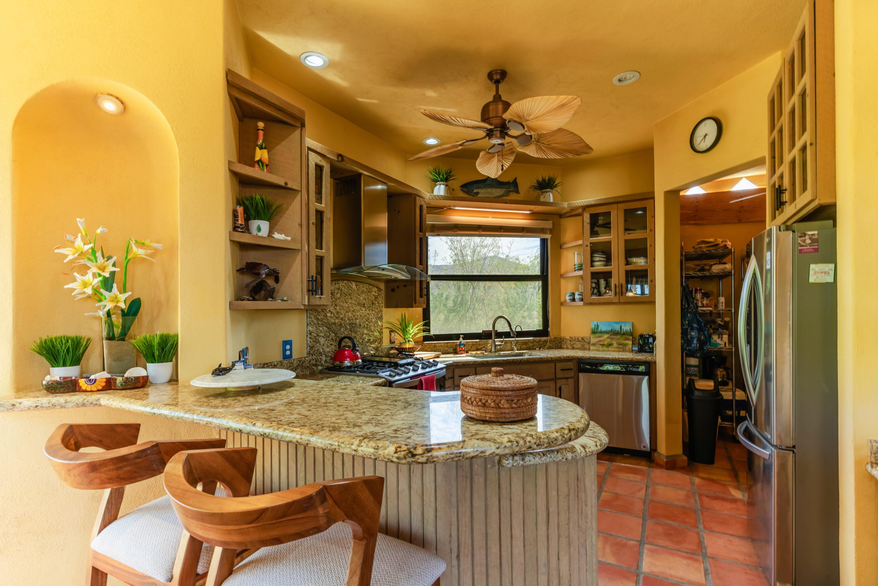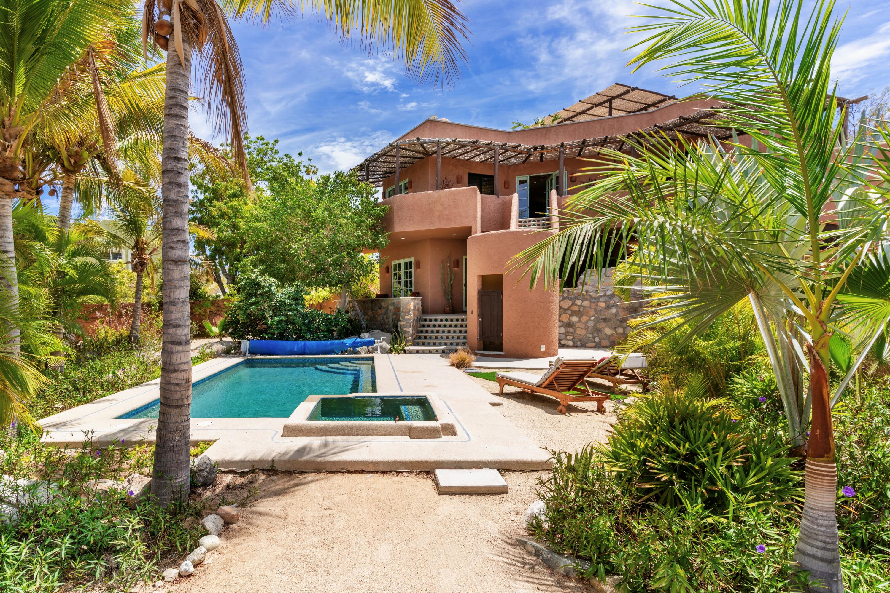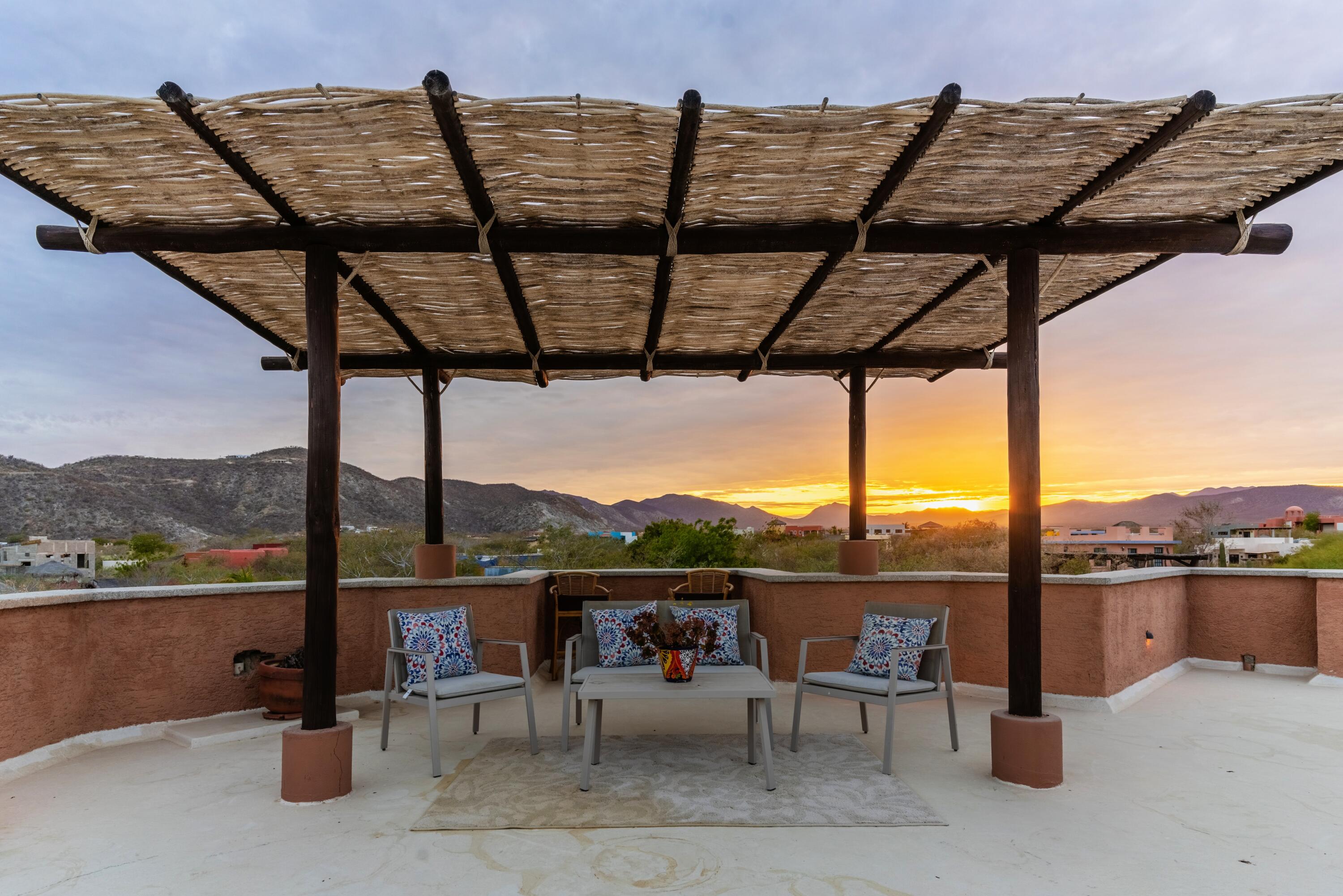 Casa Silverado is located in the popular Palo Blanco neighborhood, just five minutes from Los Barriles, restaurants, and beautiful white sand beaches. The main floor offers comfortable single level living with a kitchen featuring mountain views, gas range, and large pantry. The primary suite has an ensuite bath and patio access. Enjoy ocean and mountain views from the rooftop terrace with new pergola. Downstairs are two bedrooms with shared bath, private entrances, and outdoor seating areas. The landscaped property includes a heated pool, hot tub, water feature, garage, laundry, and outdoor shower. This house is turn-key move in ready. Make this your Baja dream home.