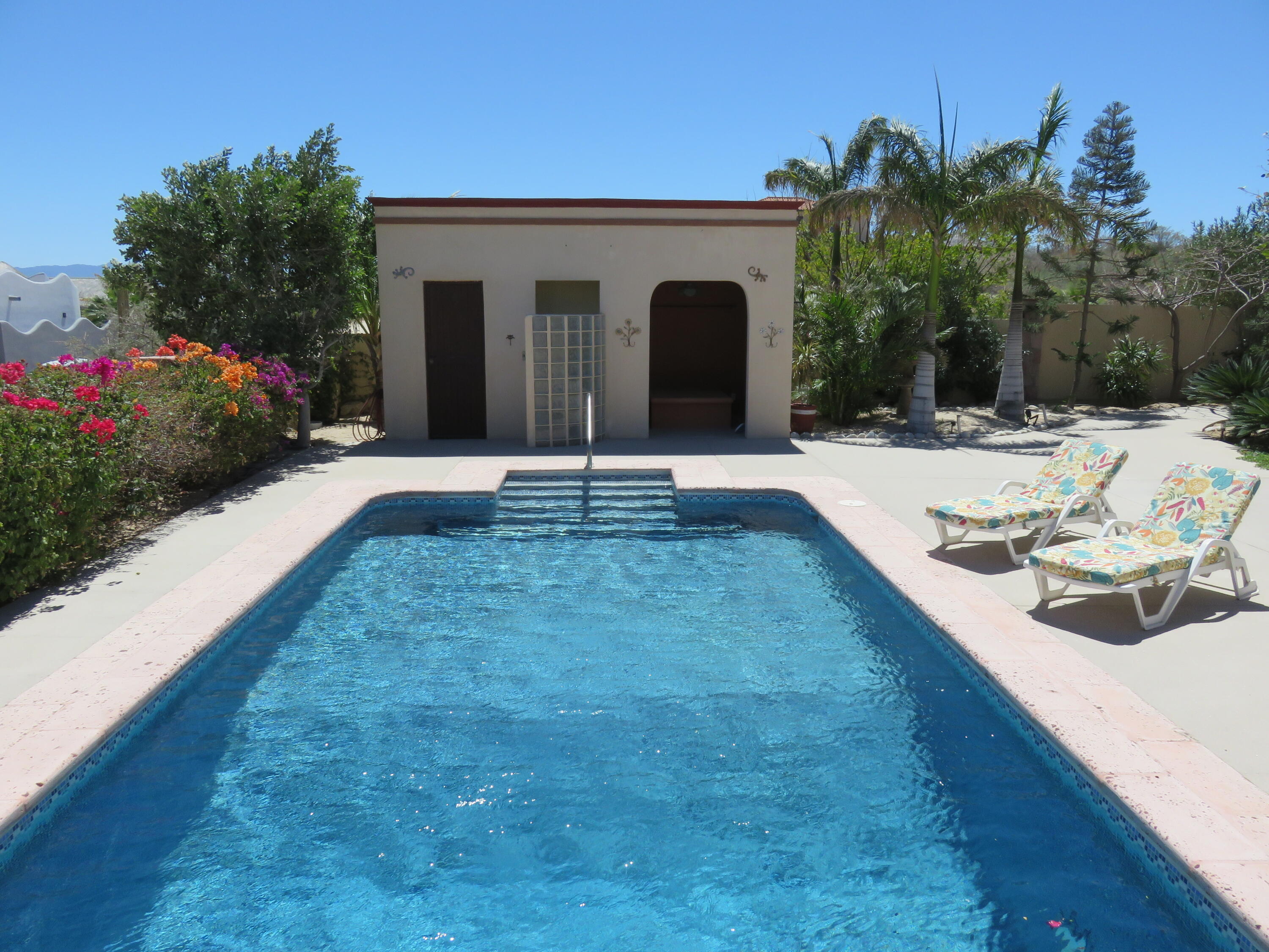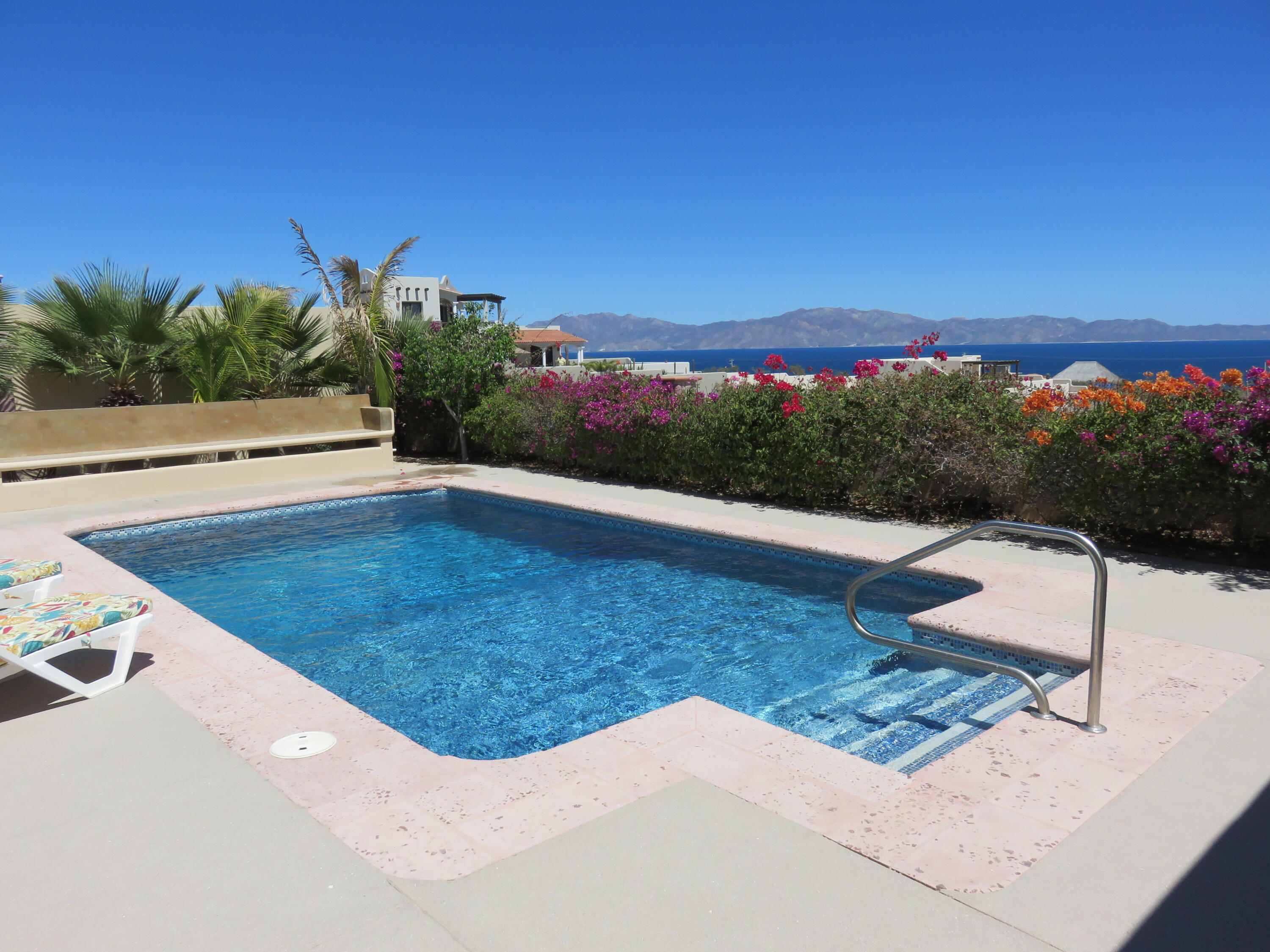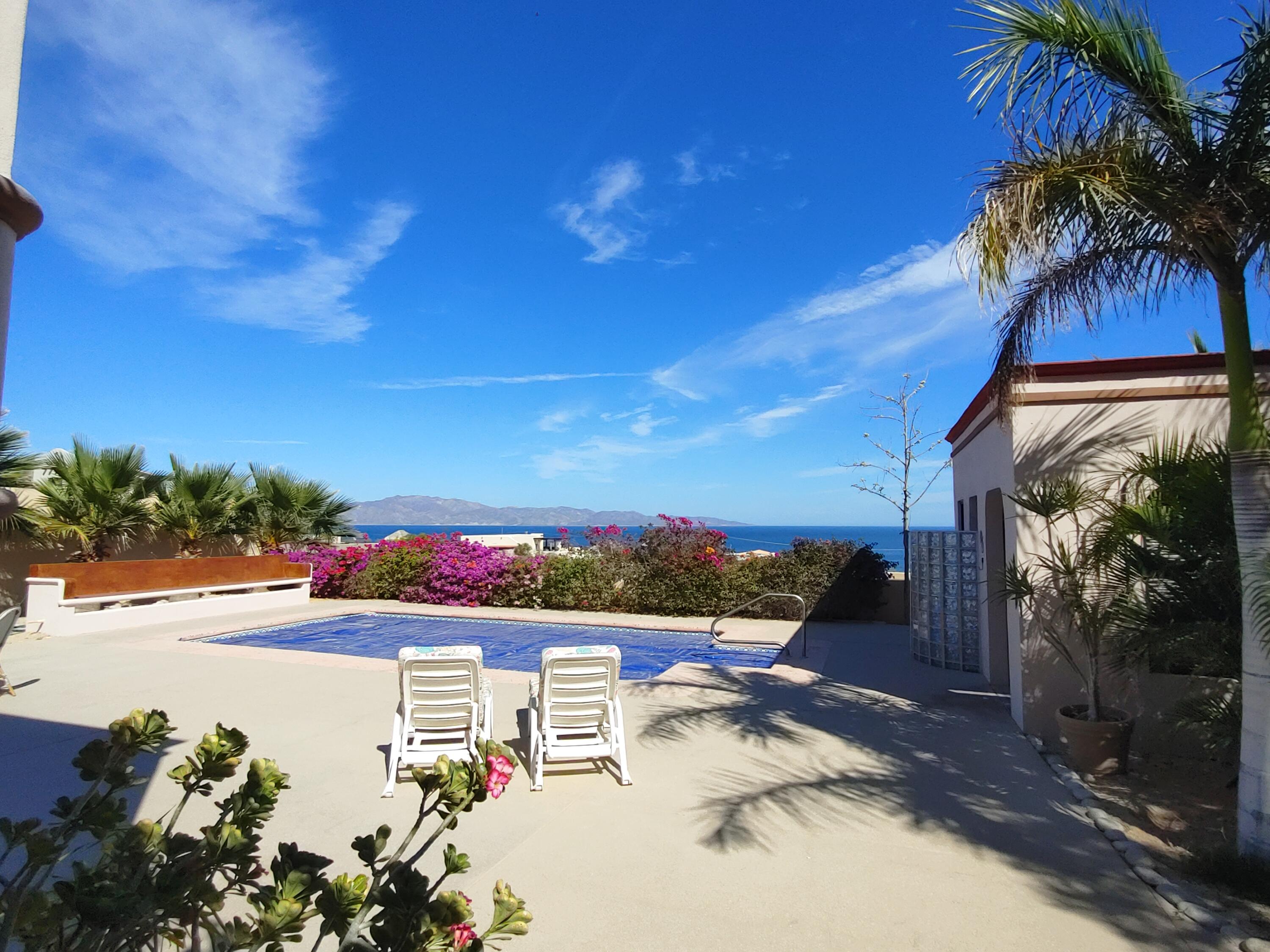 Beautifully designed and appointed home ideal for year round living. Very private deck with landscaped gardens and solar heated swimming pool, enclosed hot tub, daybed and outdoor shower with bathroom. Outdoor kitchen with fridge and BBQ. Spectacular rooftop with 360 degree view. Top class equipped kitchen with open concept living and dining areas. Three lovely bedrooms: master suite with built in king bed and large private bath and walk in closet. Tasteful furnishings included. 2 car garage has electric door opener. Home has AC, Phone, Internet, TV’s with HD satellites, Hurricane Shutters, Built in Vacuum, Alarm System. Located in the exclusive Calle Tiburon Development above Rasta Beach, great neighbors, many beautiful architectural homes. Casa Tiburon is a complete home in the Baja!