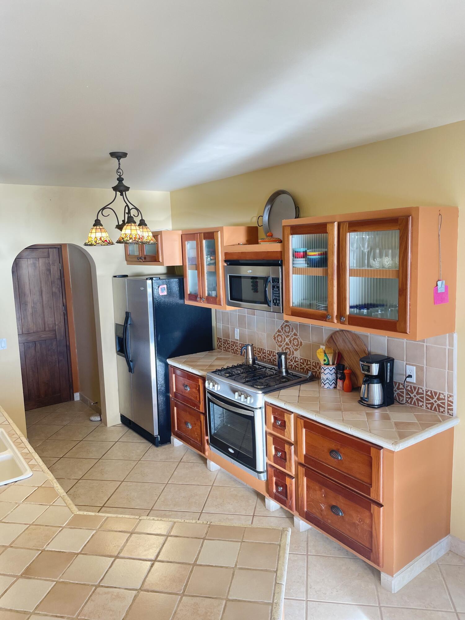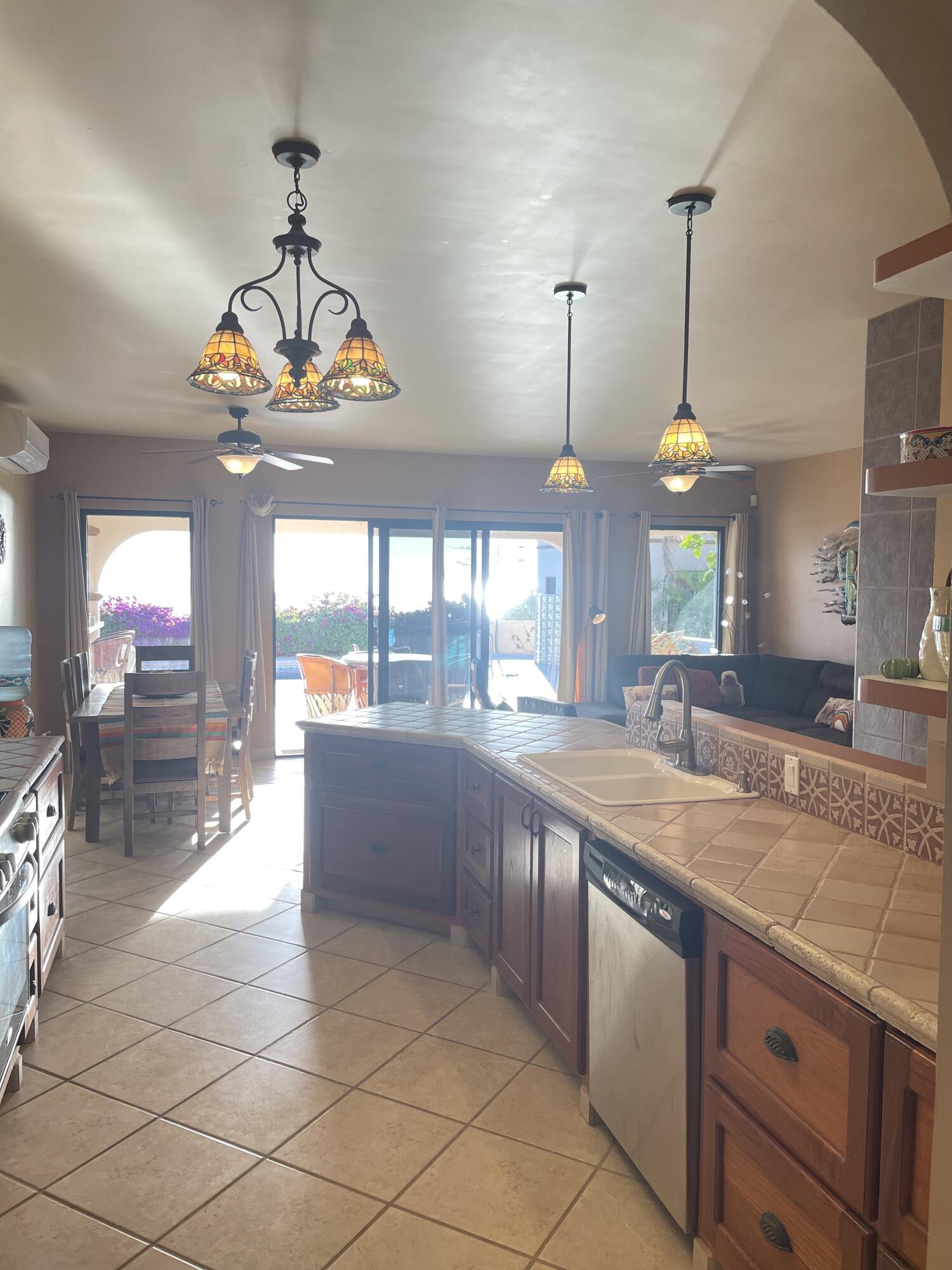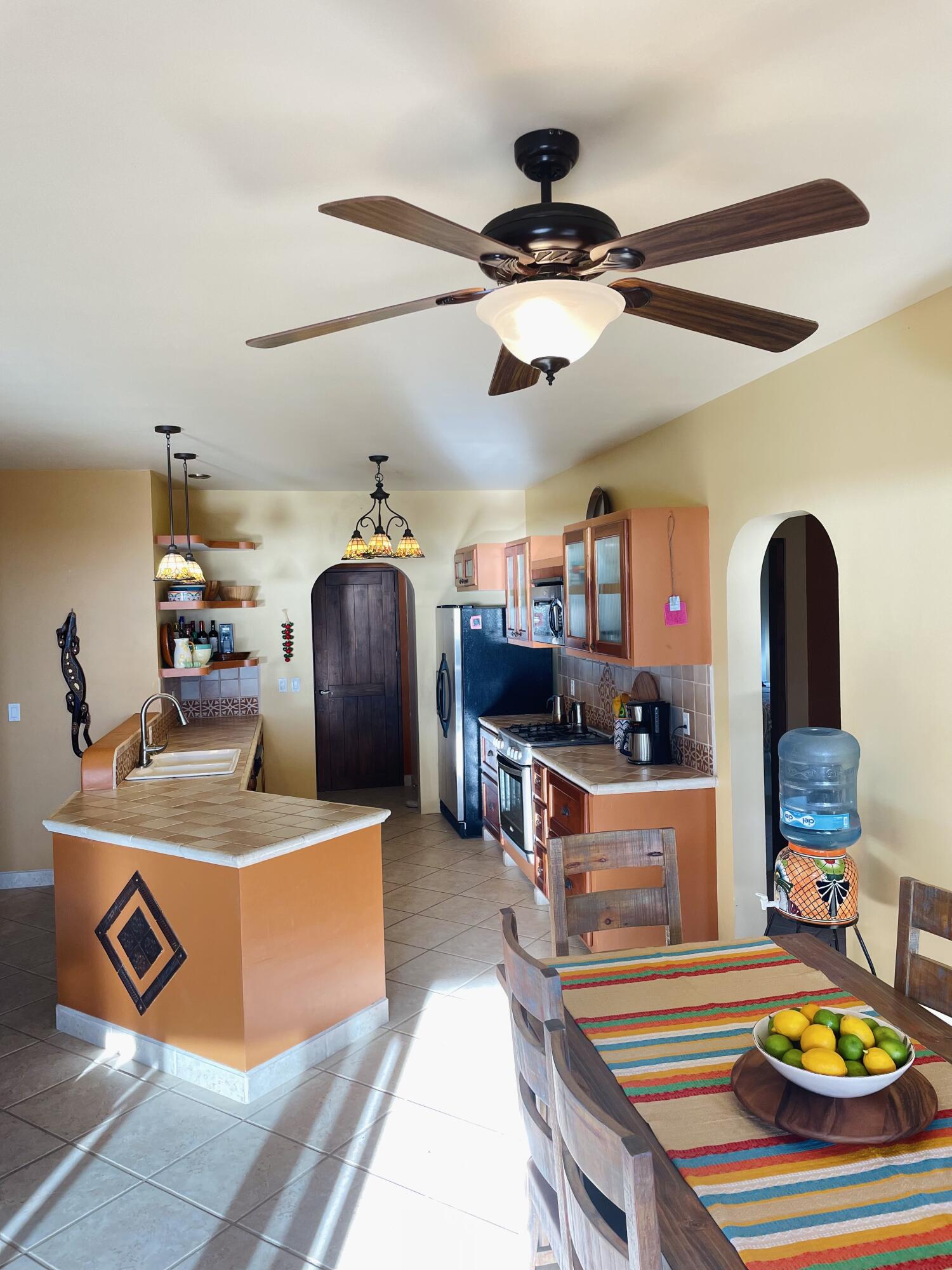 Beautifully designed and appointed home ideal for year round living. Very private deck with landscaped gardens and solar heated swimming pool, enclosed hot tub, daybed and outdoor shower with bathroom. Outdoor kitchen with fridge and BBQ. Spectacular rooftop with 360 degree view. Top class equipped kitchen with open concept living and dining areas. Three lovely bedrooms: master suite with built in king bed and large private bath and walk in closet. Tasteful furnishings included. 2 car garage has electric door opener. Home has AC, Phone, Internet, TV’s with HD satellites, Hurricane Shutters, Built in Vacuum, Alarm System. Located in the exclusive Calle Tiburon Development above Rasta Beach, great neighbors, many beautiful architectural homes. Casa Tiburon is a complete home in the Baja!