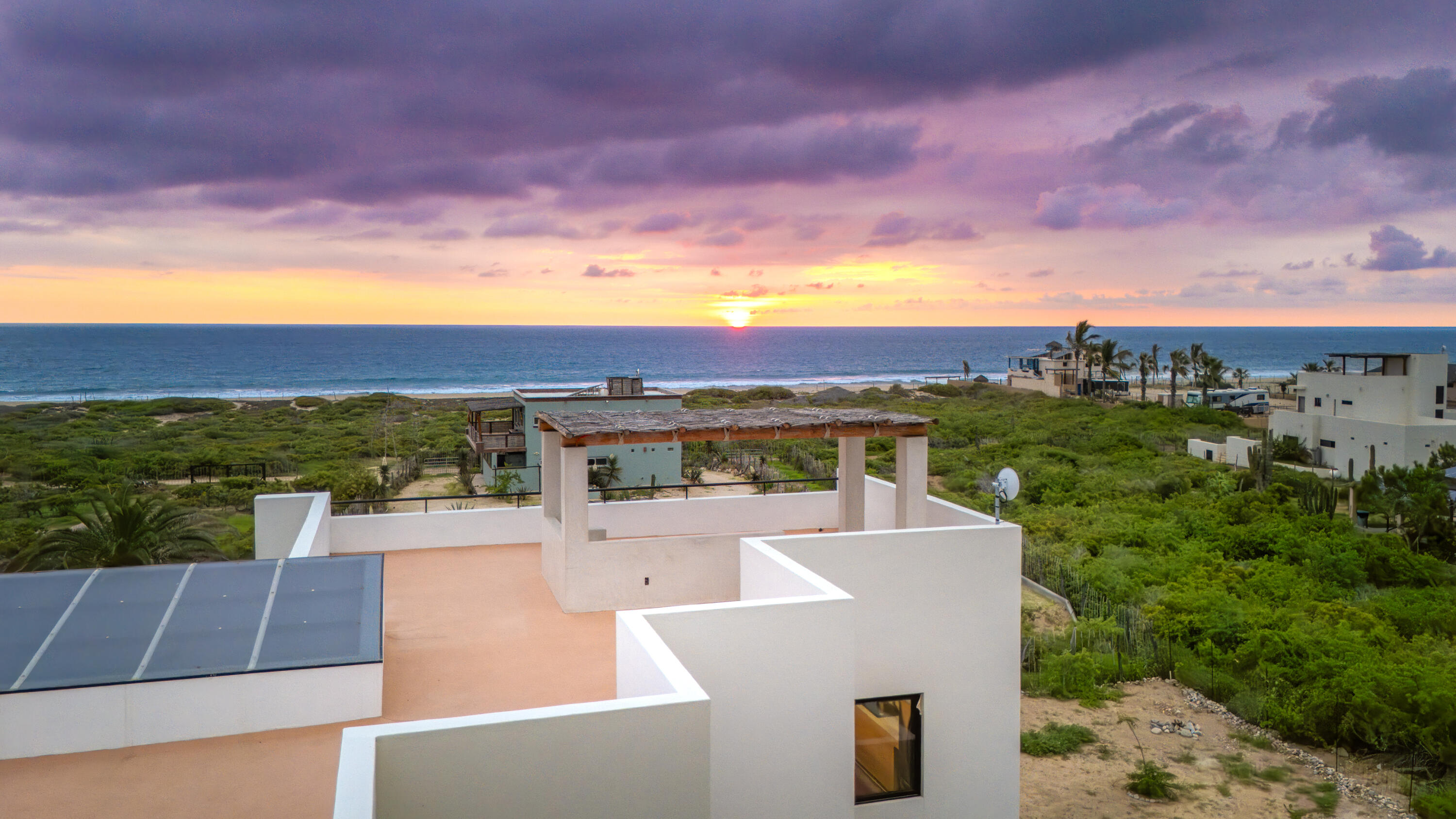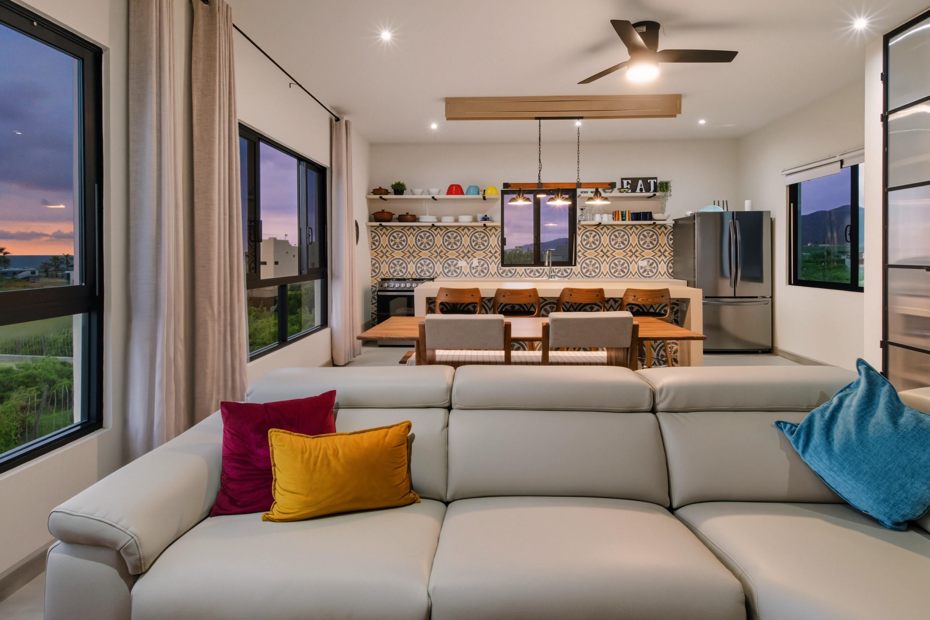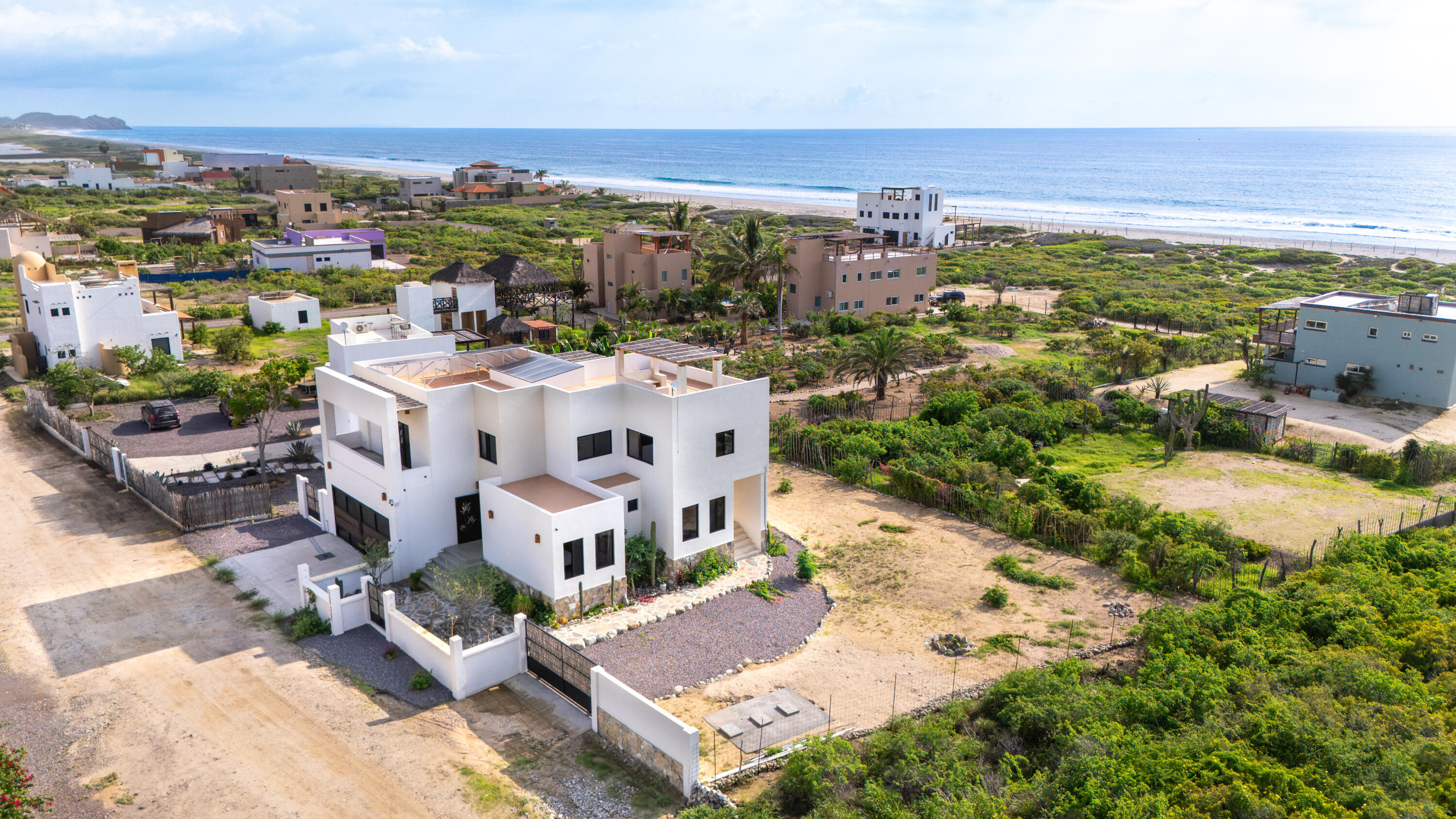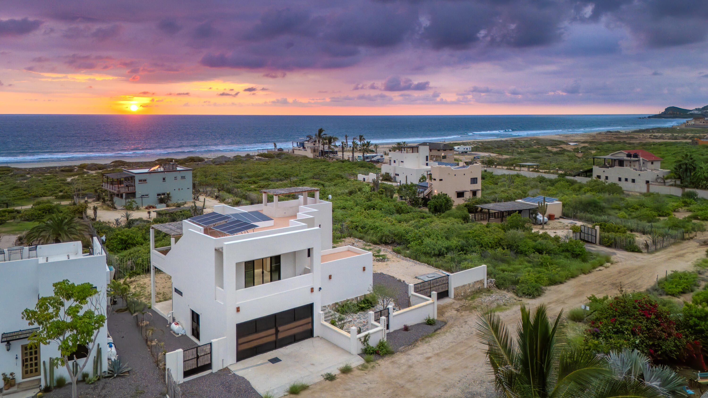 There’s a certain calm that settles over you the moment you arrive at Casa Vino. The kind of peace only the perfect blend of ocean, desert, and mountains can create. From every window, the Pacific glimmers in the distance, and is framed by cactus gardens or the soft rise of the Sierra de la Laguna to the east. The sound of waves drifts through the open living spaces, carried by a constant ocean breeze. Casa Vino is a custom-designed home that blends modern lines with splashes of Mexican artistry, polished concrete floors, handcrafted mosaic tiles, and natural wood accents that come together in harmony. If full-time living isn’t your goal, Casa Vino works beautifully as a second home or a hybrid vacation property/Airbnb, with peak-season nightly rates often reaching $500 USD and beyond.