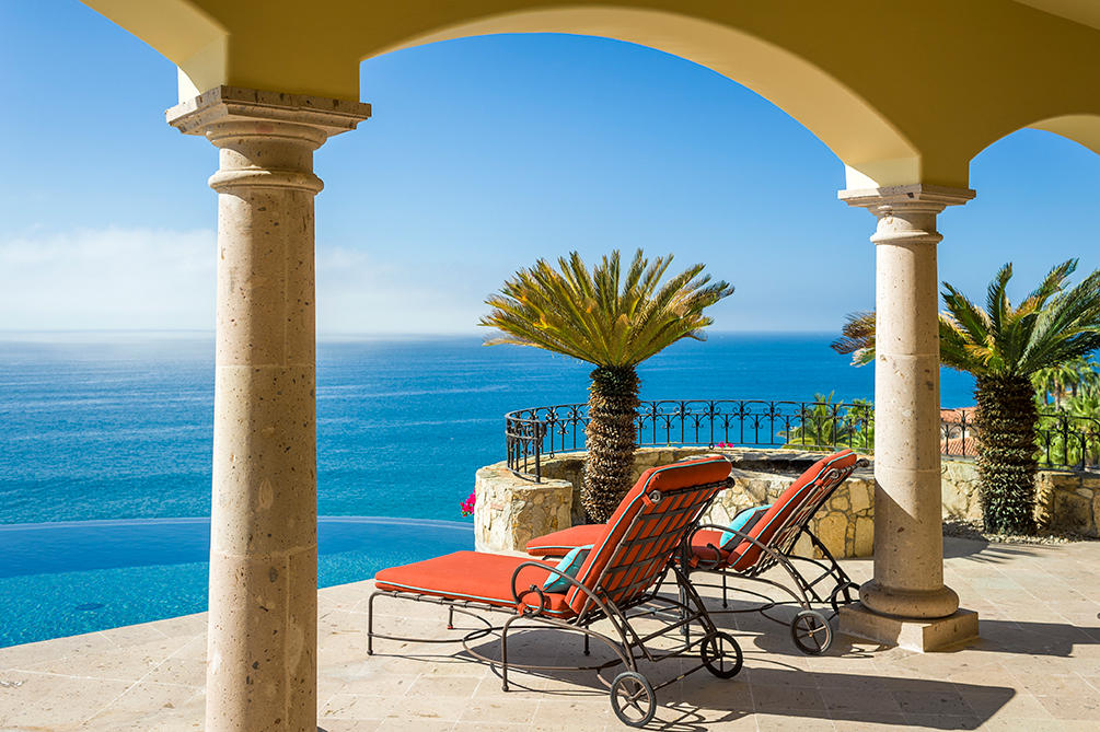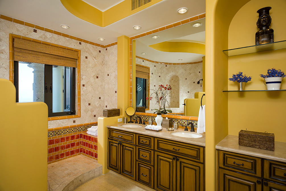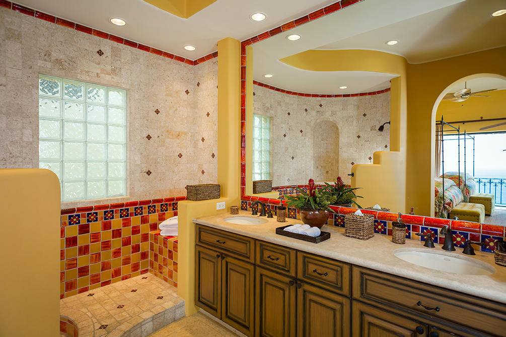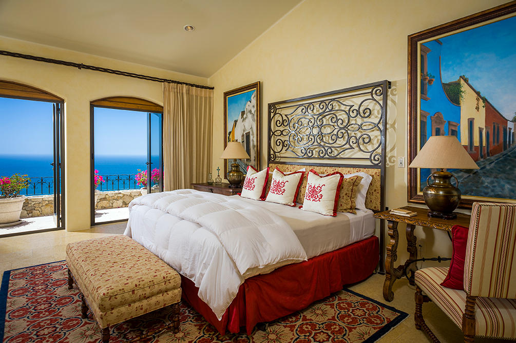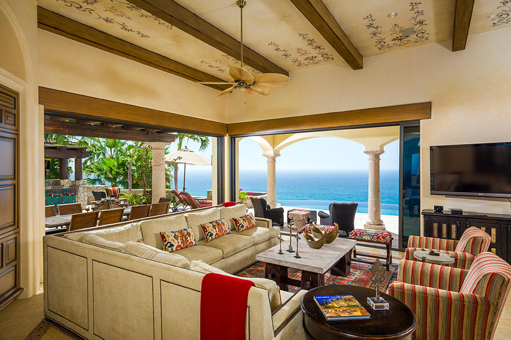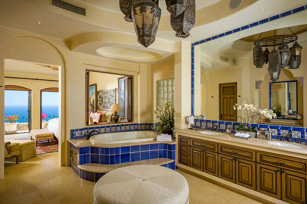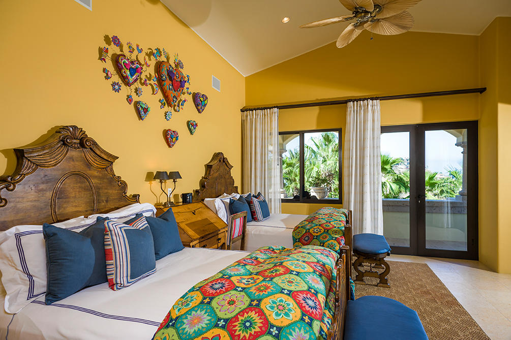 Casita 383 is a vibrant, five bedroom mountainside retreat located at one of the highest elevations in the private community of Villas Del Mar, also home to The One&Only Palmilla Resort. Beyond the private entry gate you will find some of the most striking ocean views in all of San Jose del Cabo. The open floor plan of Casita 383 lends itself to seamless indoor/outdoor living with floor-to-ceiling pocket doors that extend out to the oversized cantera pool deck with jacuzzi, BBQ area and poolside bar. Dual terraces offer privacy and generous space for entertaining. Inside, experience an air of spaciousness that can be found throughout each of the meticulously designed and decorated spaces. Each room within Casita 383 offers phenomenal ocean views and all the bedrooms feature ensuite baths.