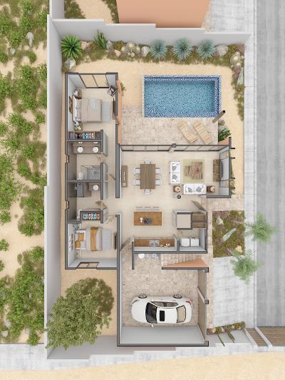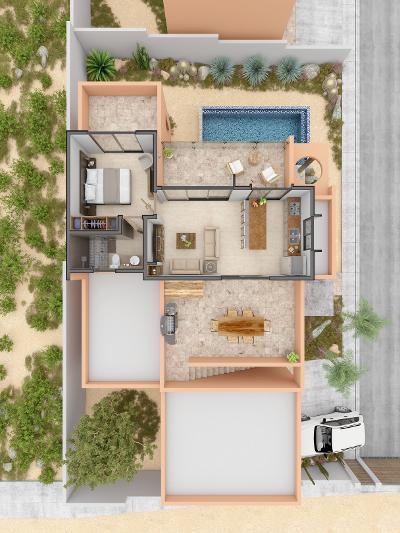 One of four homes offered at pre-construction pricing. Gated and walled 4 home development. Amazing open floor plans featuring 3 bds 3 1/2 bath. First floor 2 full master suites with upstairs granny unit, bd, bth, living and dining area. 490 m2 private lots with pool and garage. Beautiful views of the Pacific and the mountains. Plenty of time to pick your custom finishings. Just minutes to the famous cerritos beach and the tranquil San Pedrito beach.