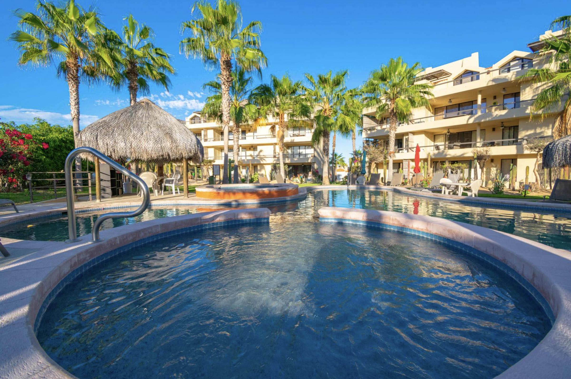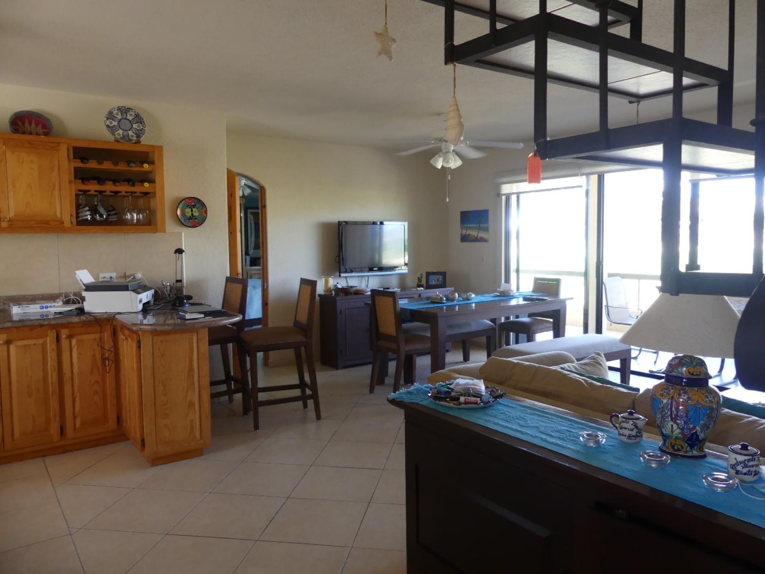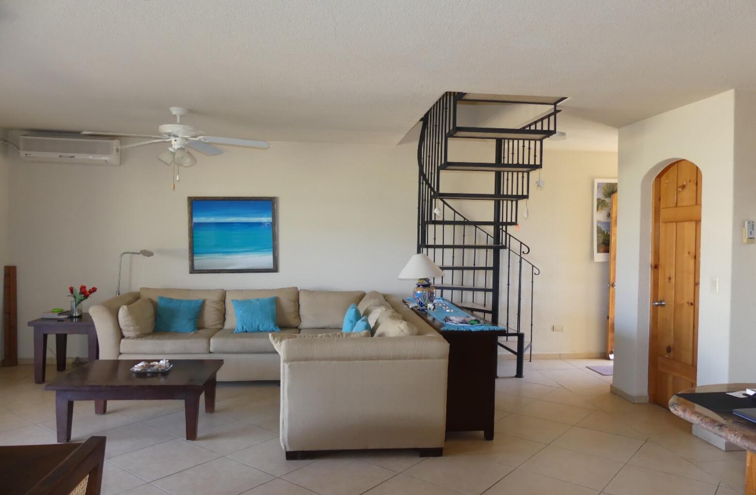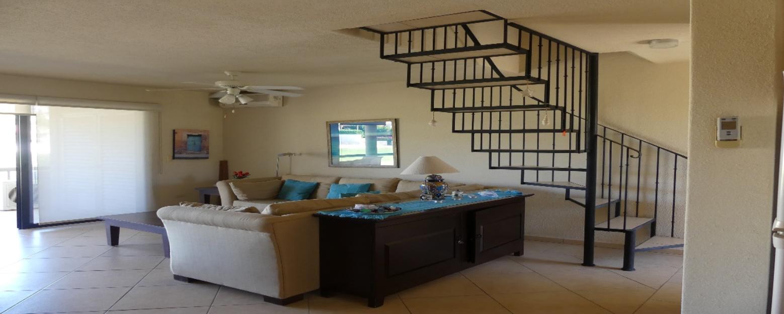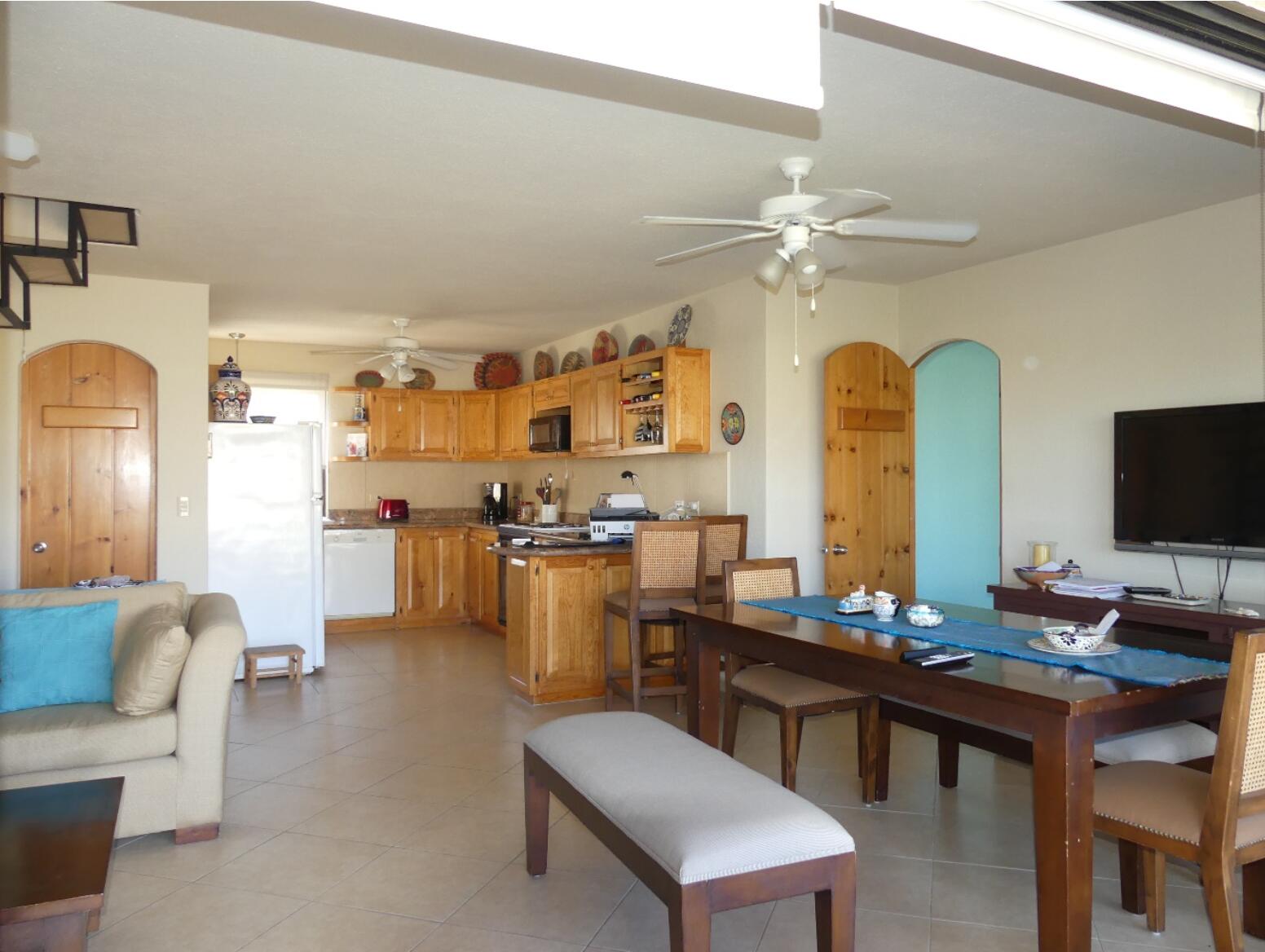One of the largest condos in Club la Costa!!! Nicely furnished 3 Bedroom, 3 1/2 Bath, 2 Story Penthouse located in the last and quiet building of phase 2 overlooking the Mayan Palace golf course and the main pool without being to close to it. Being in the heart of the hotel zone in San Jose del Cabo, a five-minute walk will lead you to wide sandy beaches, shopping, restaurants and much more. You will find this is a perfect opportunity for a winter retreat or an excellent rental investment in this strong rental market.