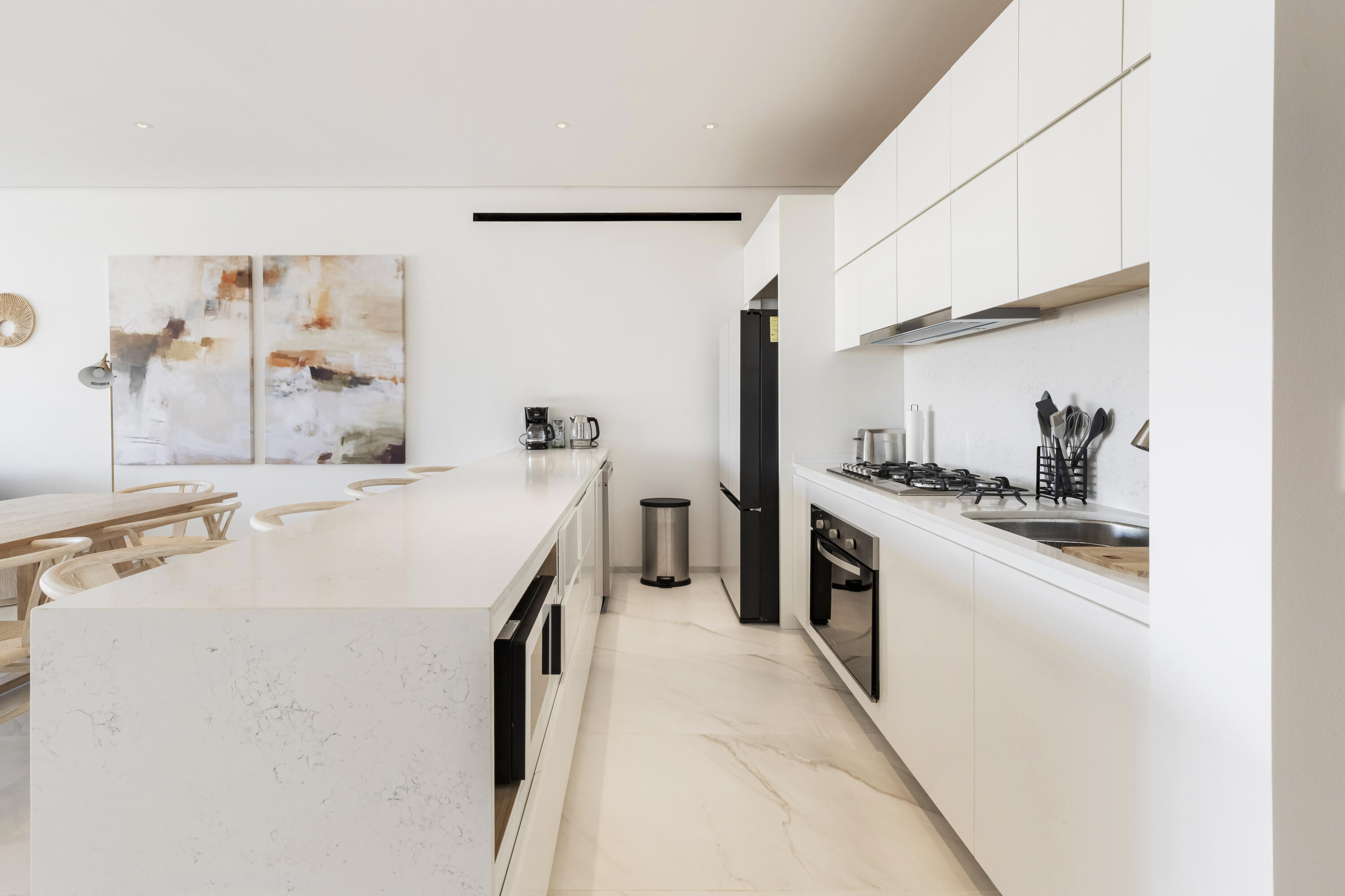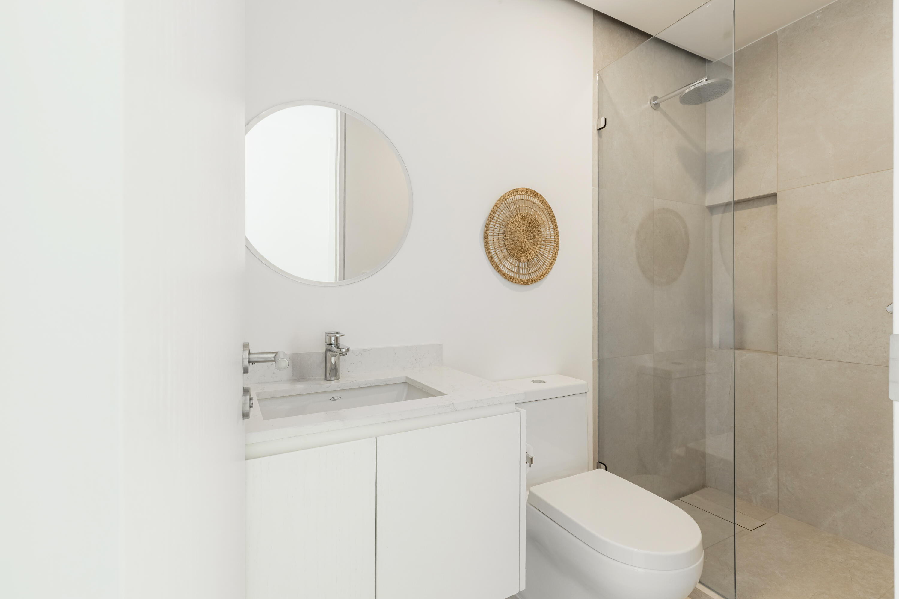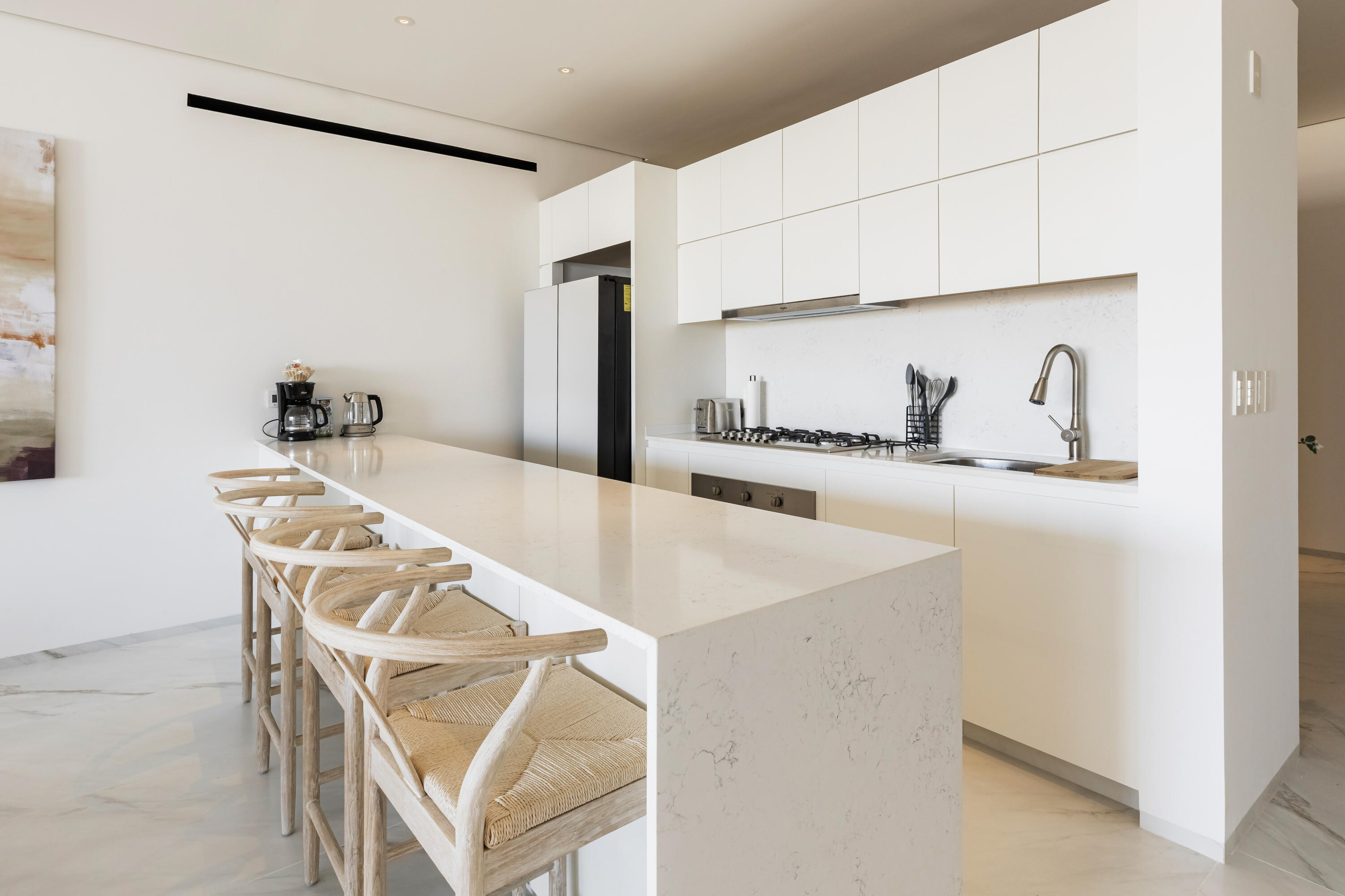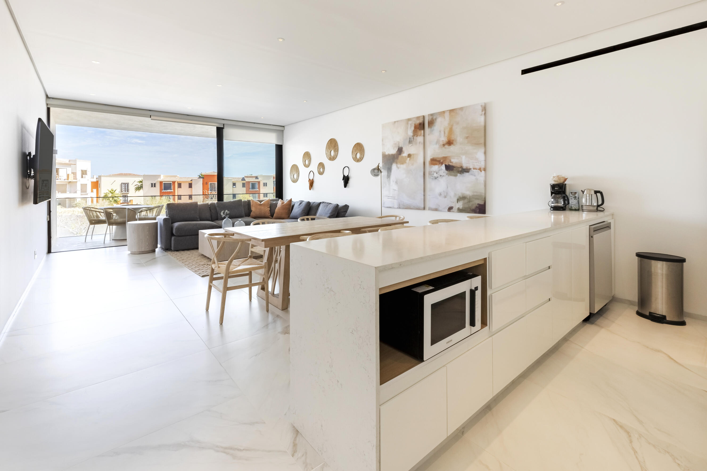 Thoughtfully furnished and impeccably designed, this exclusive home offers a seamless mix of privacy, comfort, and style.Step into an open-concept living space where elegance meets functionality. The expansive living and dining areas flow effortlessly into a modern, fully equipped kitchen, while floor-to-ceiling windows flood the space with natural light and frame stunning outdoor scenery.This sophisticated retreat boasts three spacious bedrooms, including a lavish master suite with a walk-in closet and a spa-inspired en-suite bathroom. A convenient half-bathroom enhances guest comfort. Outside, a private terrace provides the perfect space to relax or entertain in serenity.