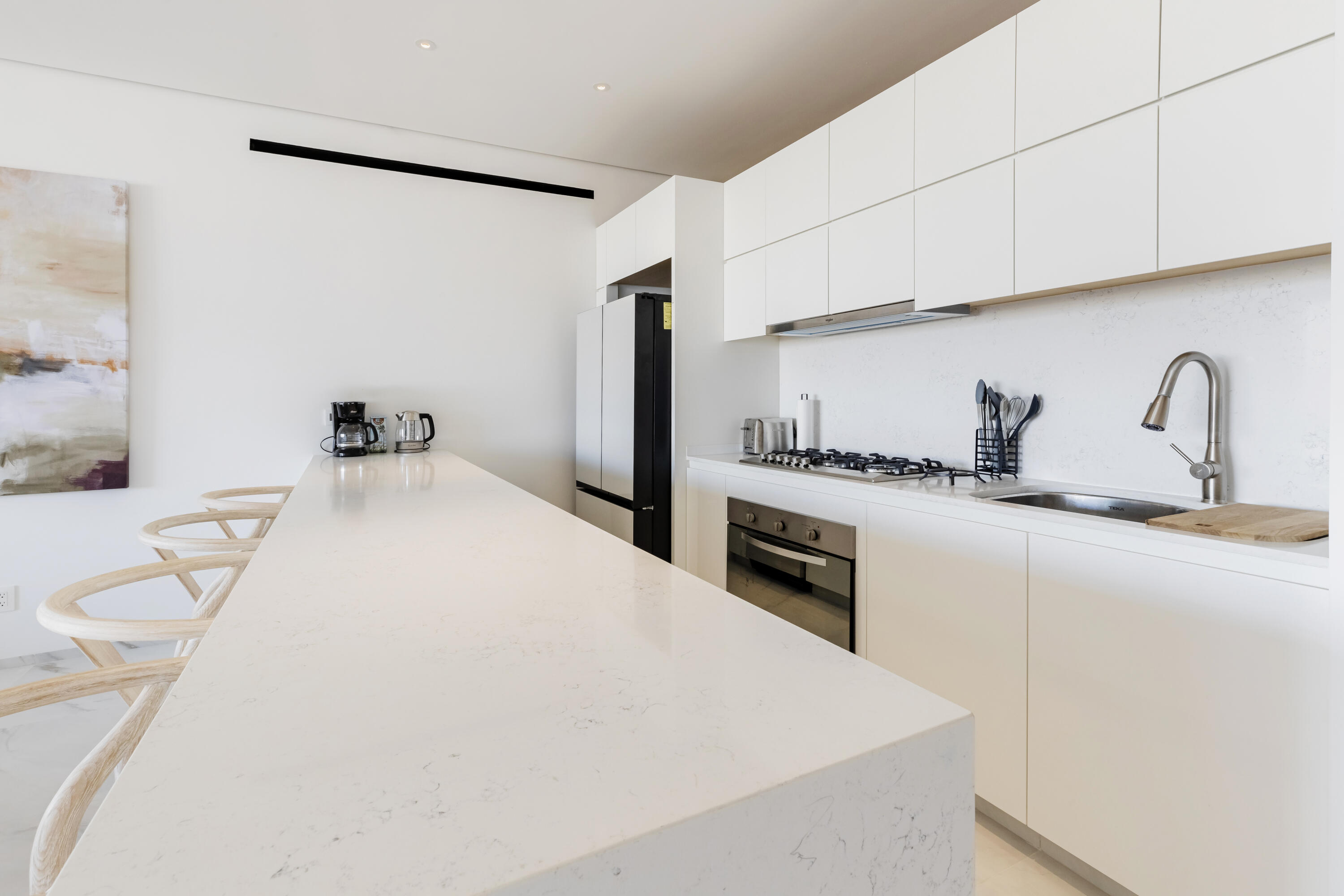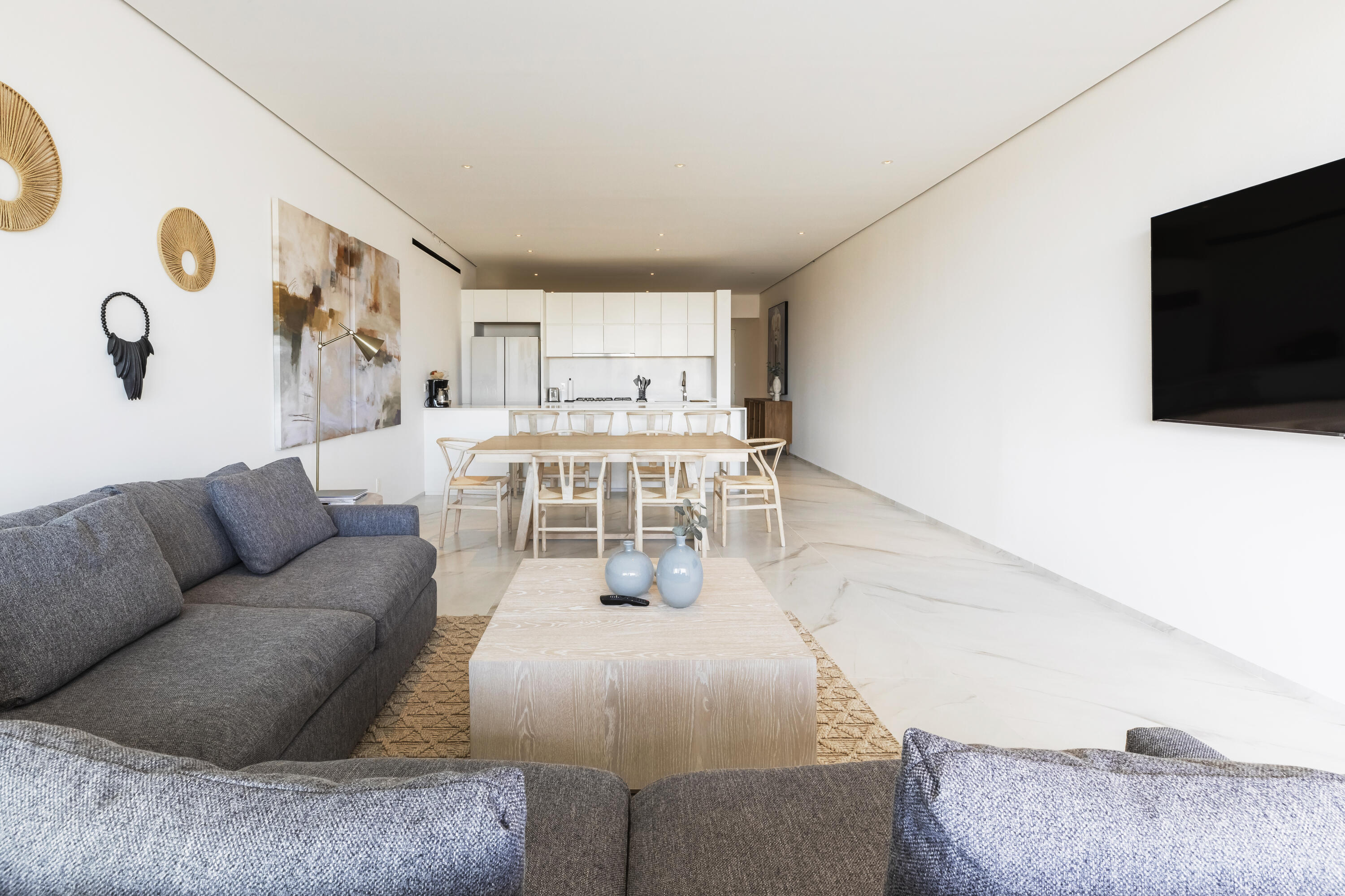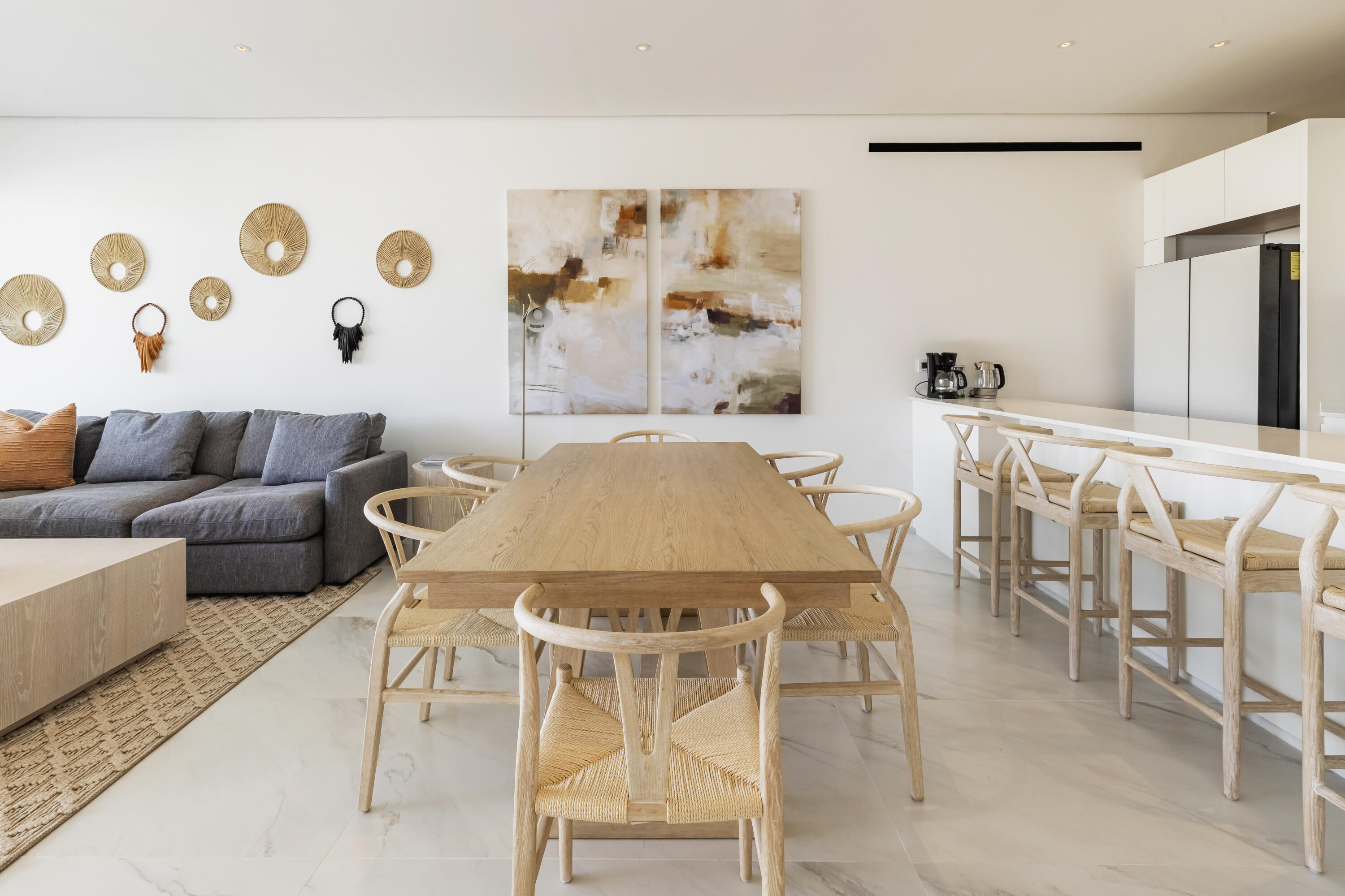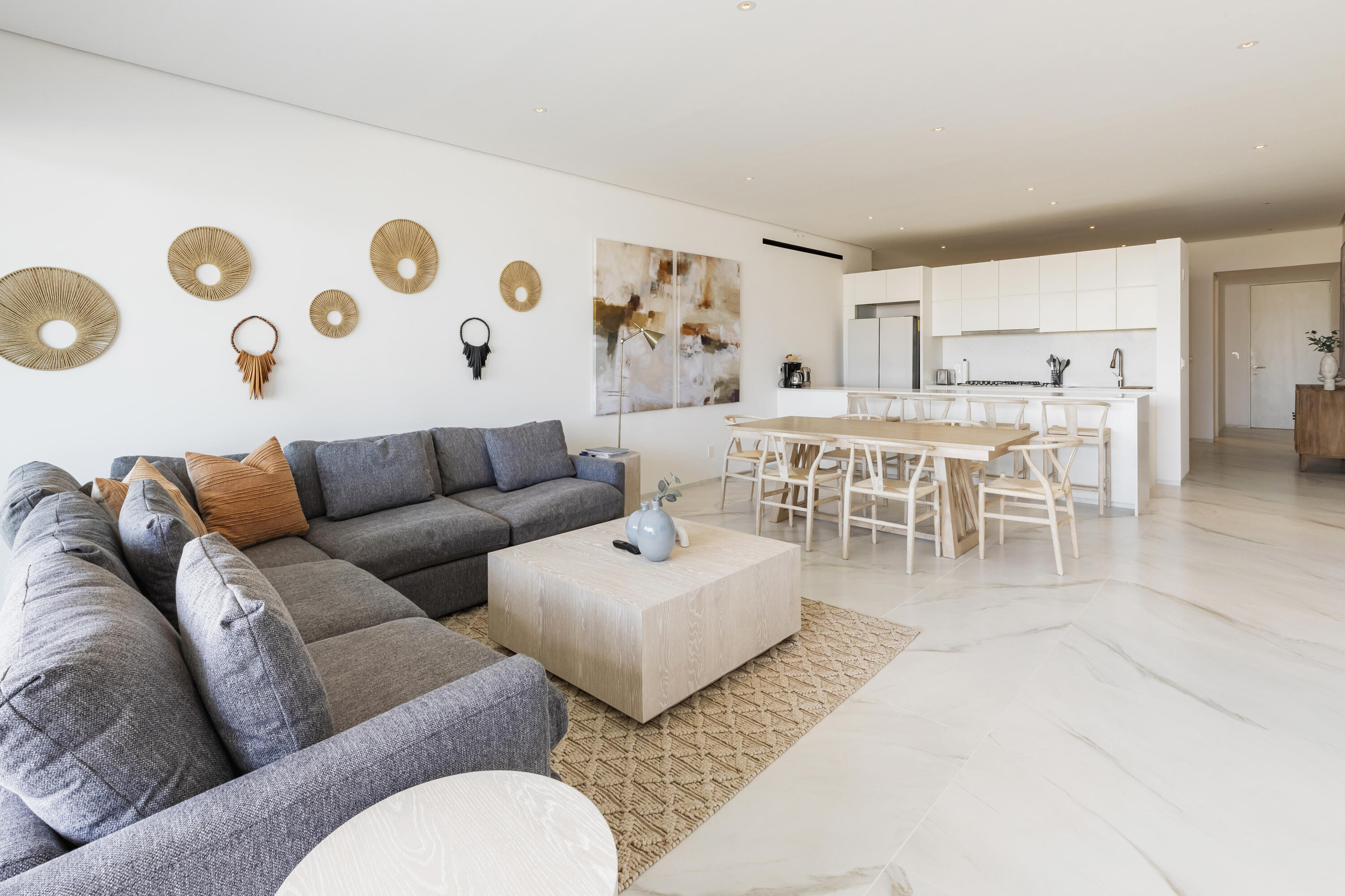 Thoughtfully furnished and impeccably designed, this exclusive home offers a seamless mix of privacy, comfort, and style.Step into an open-concept living space where elegance meets functionality. The expansive living and dining areas flow effortlessly into a modern, fully equipped kitchen, while floor-to-ceiling windows flood the space with natural light and frame stunning outdoor scenery.This sophisticated retreat boasts three spacious bedrooms, including a lavish master suite with a walk-in closet and a spa-inspired en-suite bathroom. A convenient half-bathroom enhances guest comfort. Outside, a private terrace provides the perfect space to relax or entertain in serenity.