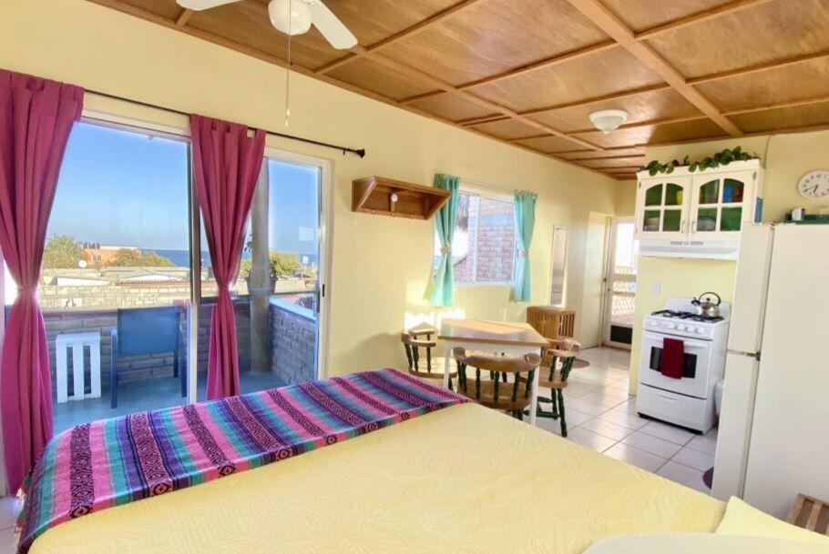 This property is turn-key, clean with great charm. It is a great location just half a block from the ocean and half a block from the main road that runs through town, An amazing view of the bay from the 2nd story. downstairs has a main house with 2 bedrooms one bath, kitchen, living room, upstairs has 1 bedroom with full bath, kitchen, dining, and living room. storage and 3 casitas outside with separate men’s and women’s bathrooms and shower.