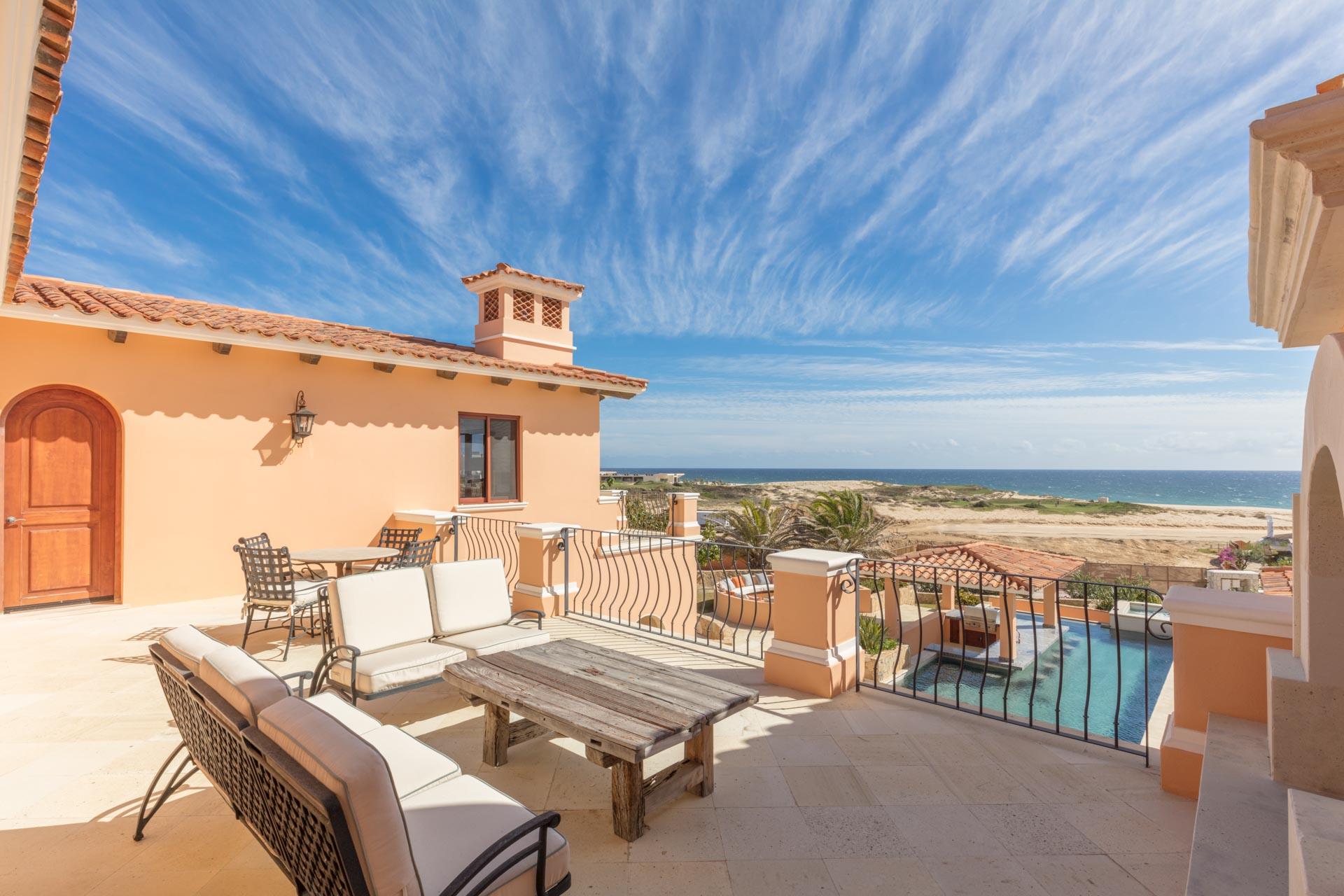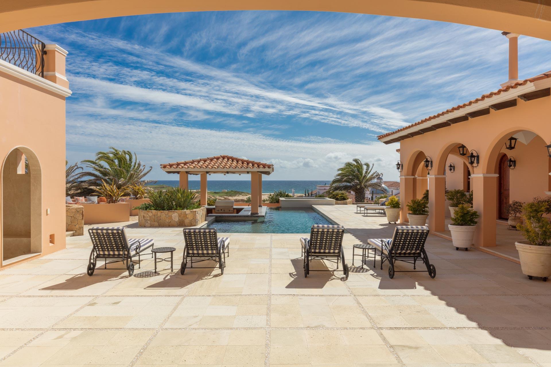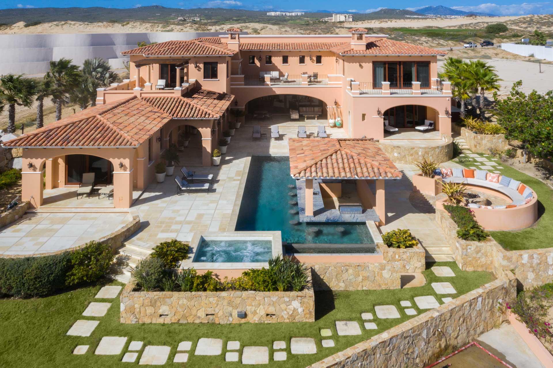 Enjoy expansive panoramic Pacific Ocean and golf course views from practically every room in this spacious, custom built home located within the very unique Diamante golf resort community. This home’s stunning entrance is a few 100 meters from a peaceful walk along an endless Pacific Ocean beach. Return to an inviting open floor plan, relax by the swim-up pool bar & spa, the master jacuzzi, media & billiard room & gourmet kitchen. Natural light through this unique interior forge the serene features of this master retreat home, overlooking the grace and splendor of this special property. At the heart of this resort community is the Dunes Course, ranked in the Top 100 Courses by Golf Digest. A 2nd 18 hole course designed by Tiger Woods enhances these superior golf experiences.