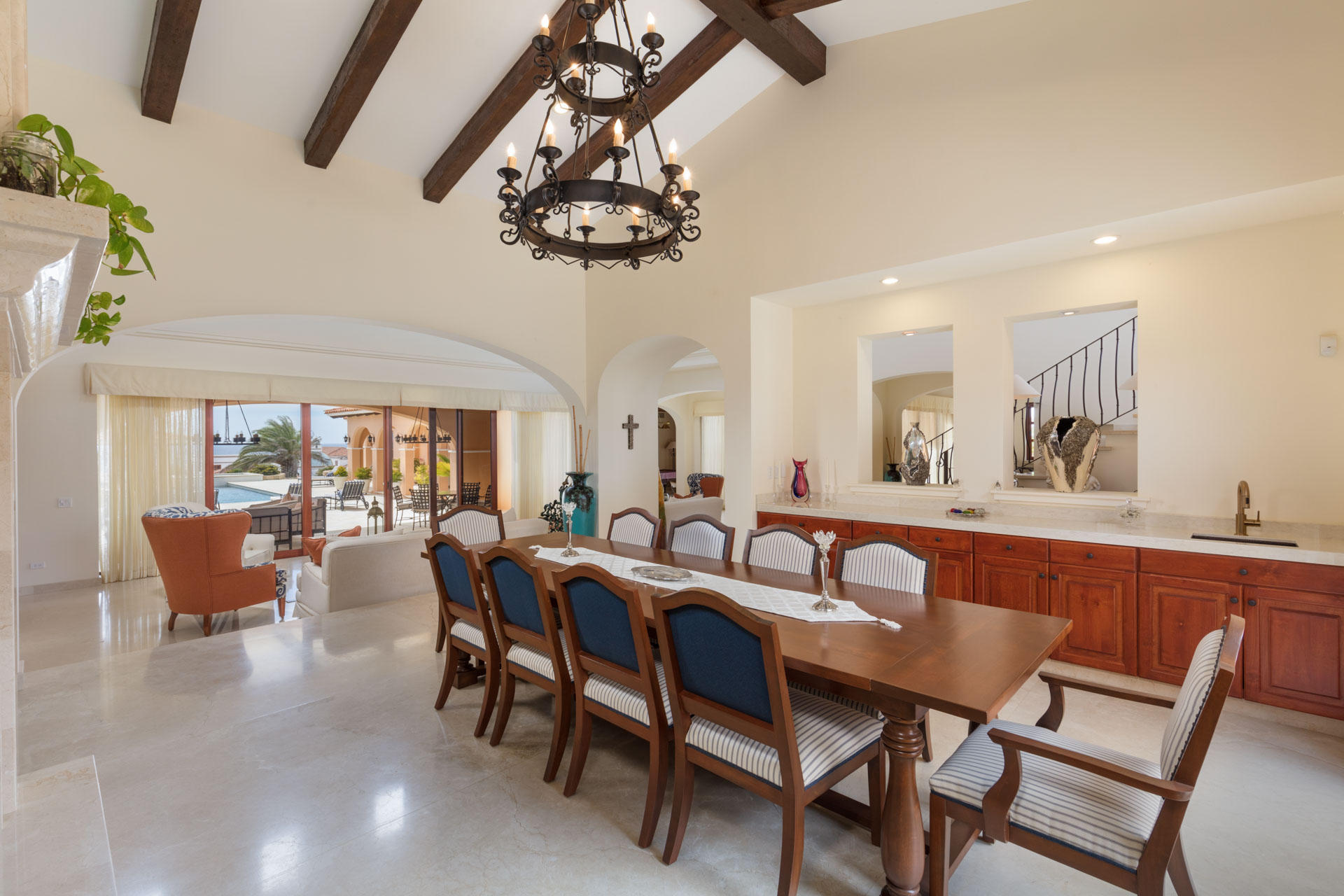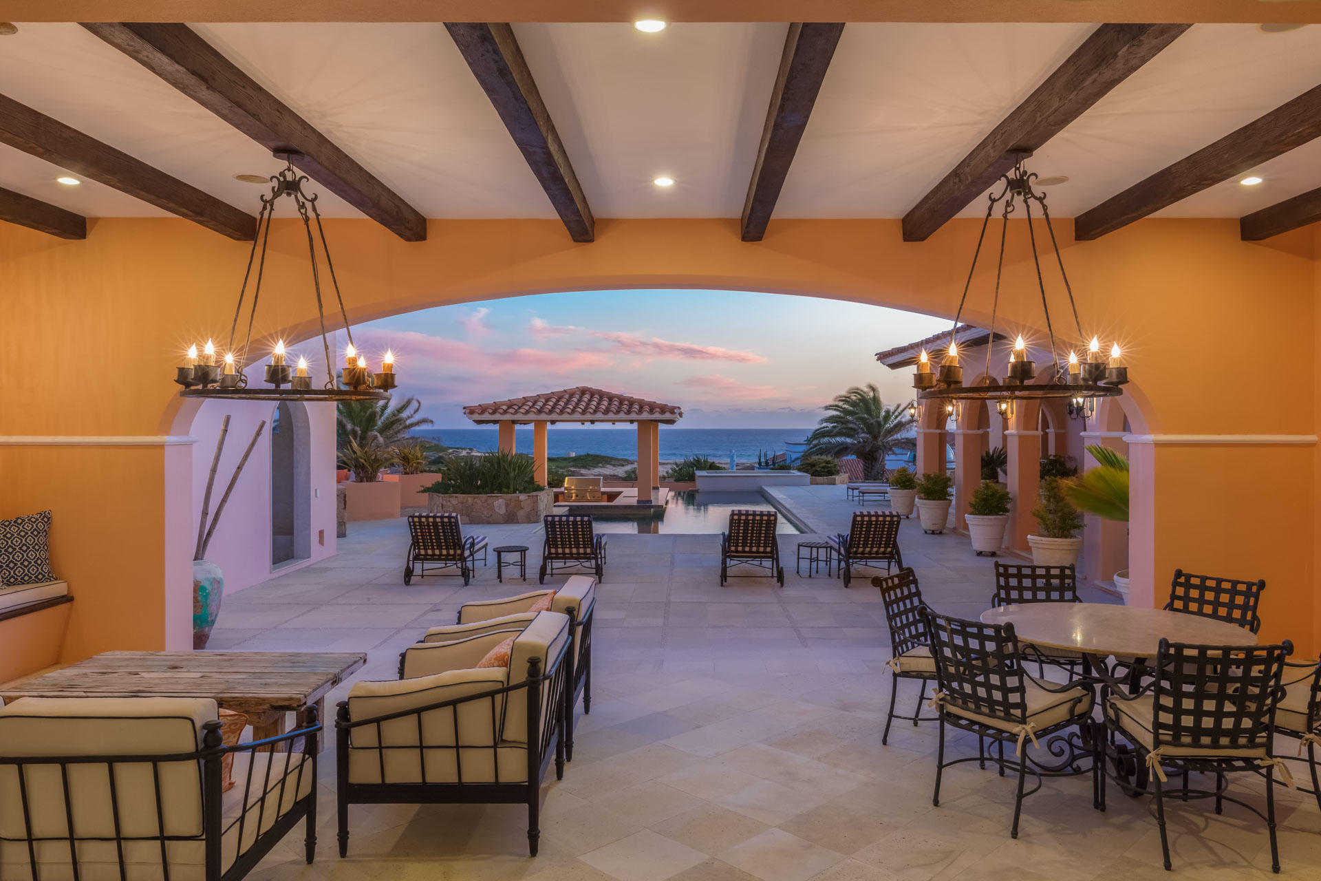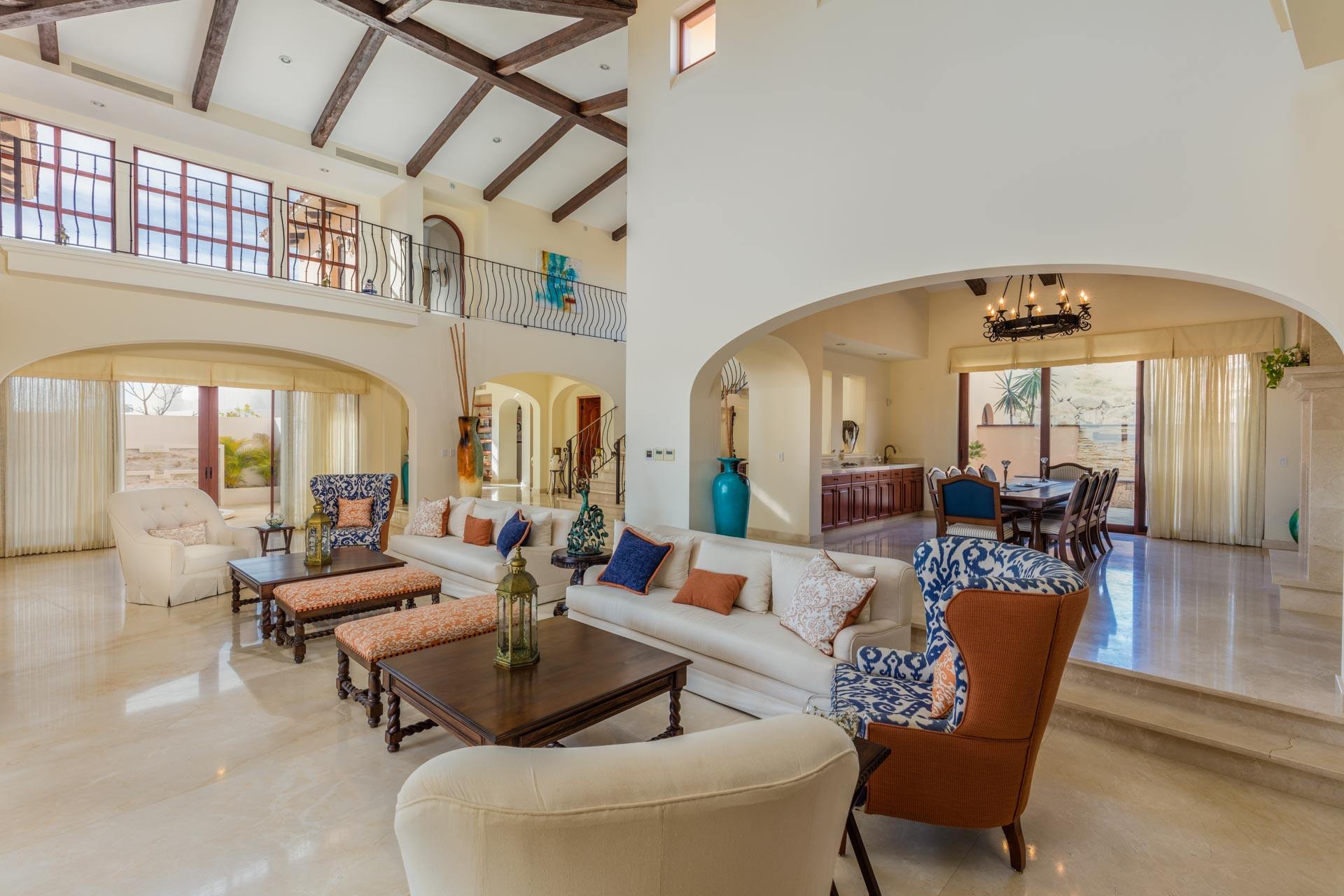 Enjoy expansive panoramic Pacific Ocean and golf course views from practically every room in this spacious, custom built home located within the very unique Diamante golf resort community. This home’s stunning entrance is a few 100 meters from a peaceful walk along an endless Pacific Ocean beach. Return to an inviting open floor plan, relax by the swim-up pool bar & spa, the master jacuzzi, media & billiard room & gourmet kitchen. Natural light through this unique interior forge the serene features of this master retreat home, overlooking the grace and splendor of this special property. At the heart of this resort community is the Dunes Course, ranked in the Top 100 Courses by Golf Digest. A 2nd 18 hole course designed by Tiger Woods enhances these superior golf experiences.