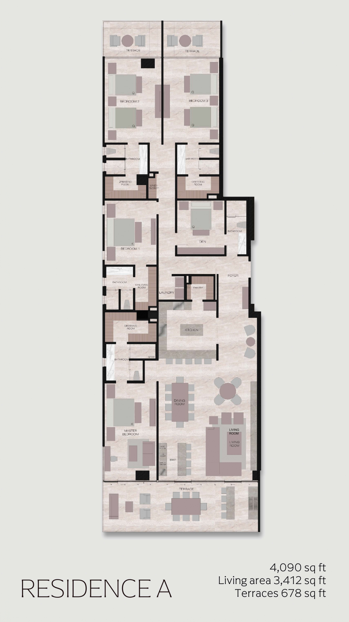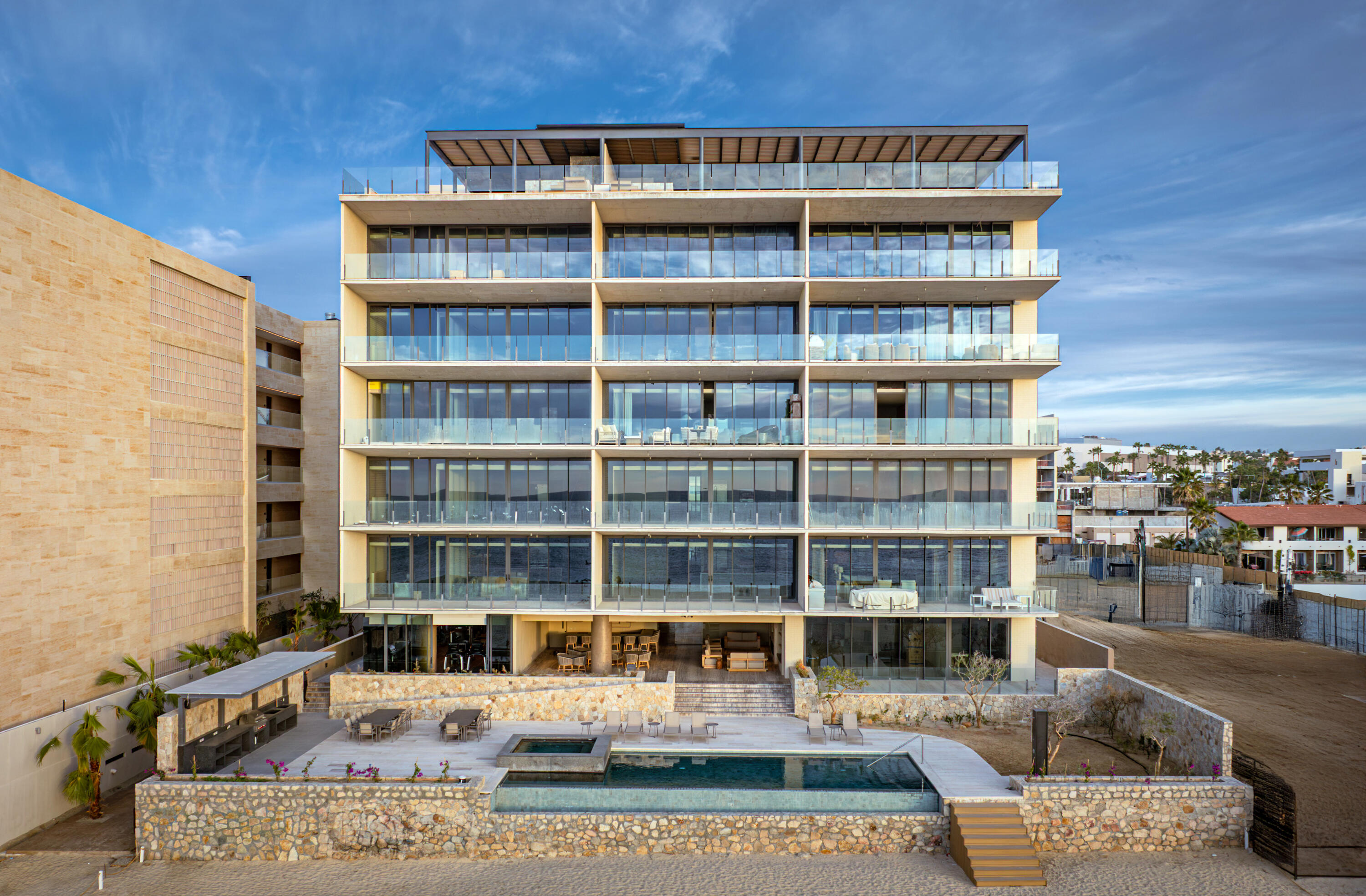 The sleek modernist property houses only 16 exclusive residences. The 4 bedroom features an elegant and very expansive layout. Floor plan includes terraces and family room / office, with shared amenities such as a swimming pool, game room, fitness facilities, and onsite deli. In addition to its gorgeous setting on the city’s signature beach, EMMA is also conveniently close to downtown attractions, including the city’s famed Art District, and is only 20-minutes by car from Los Cabos International Airport.