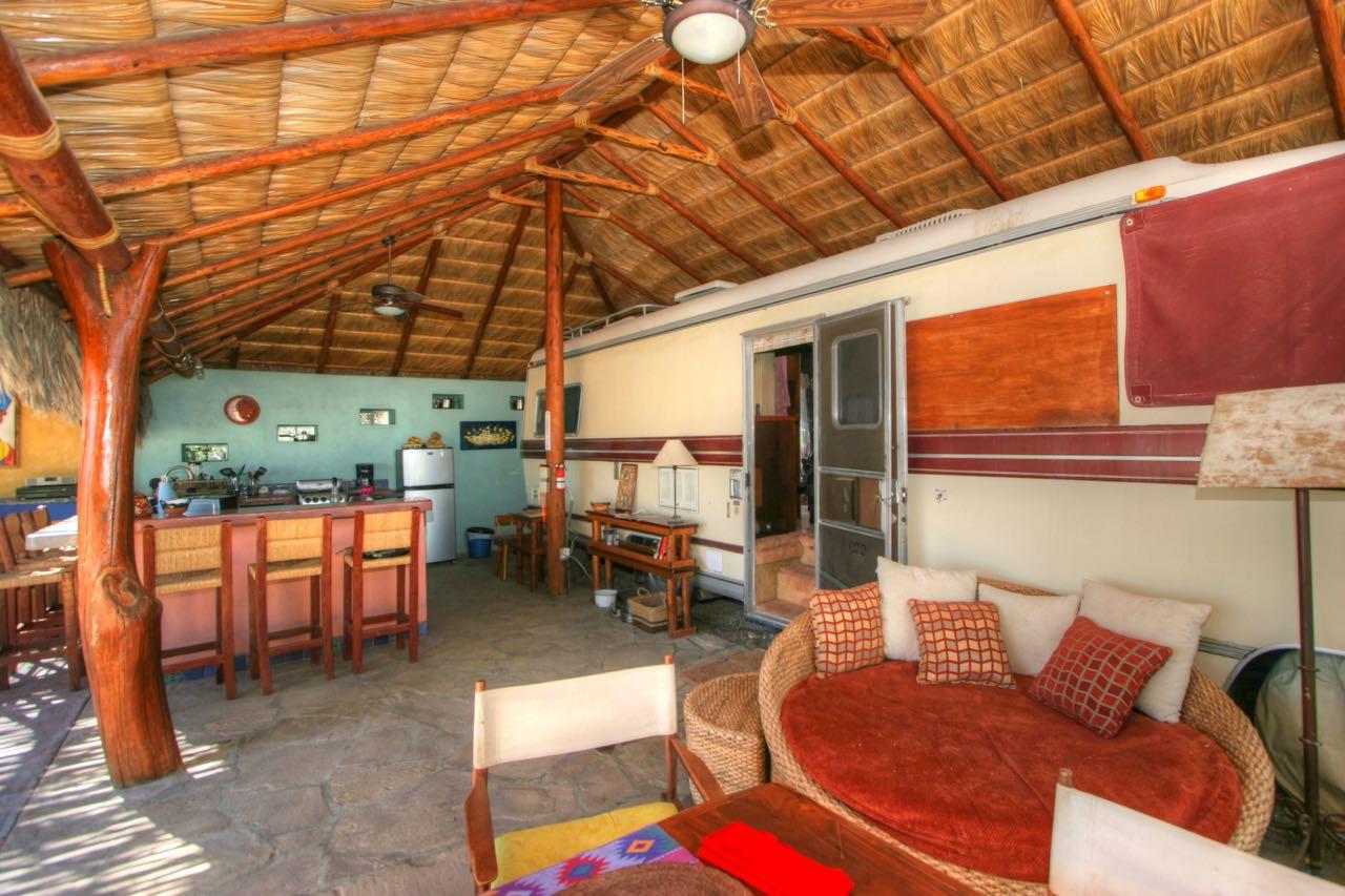 Comfortable, simple beach living at its best. Ensenada de Palma #9 is like being on the beach but without the beachfront price! The property consists of a large palapa with an open living room kitchen out of the wind with an incredible view of the Sea of Cortez and the Sierra de la Laguna mountains. Also under the Palapa is a 1983 Chevy sports coach motor home with a bedroom bathroom. There is also an additional bedroom bathroom and laundry room. If you are looking for comfortable, simple, but also rare and special, then take a look at this home.