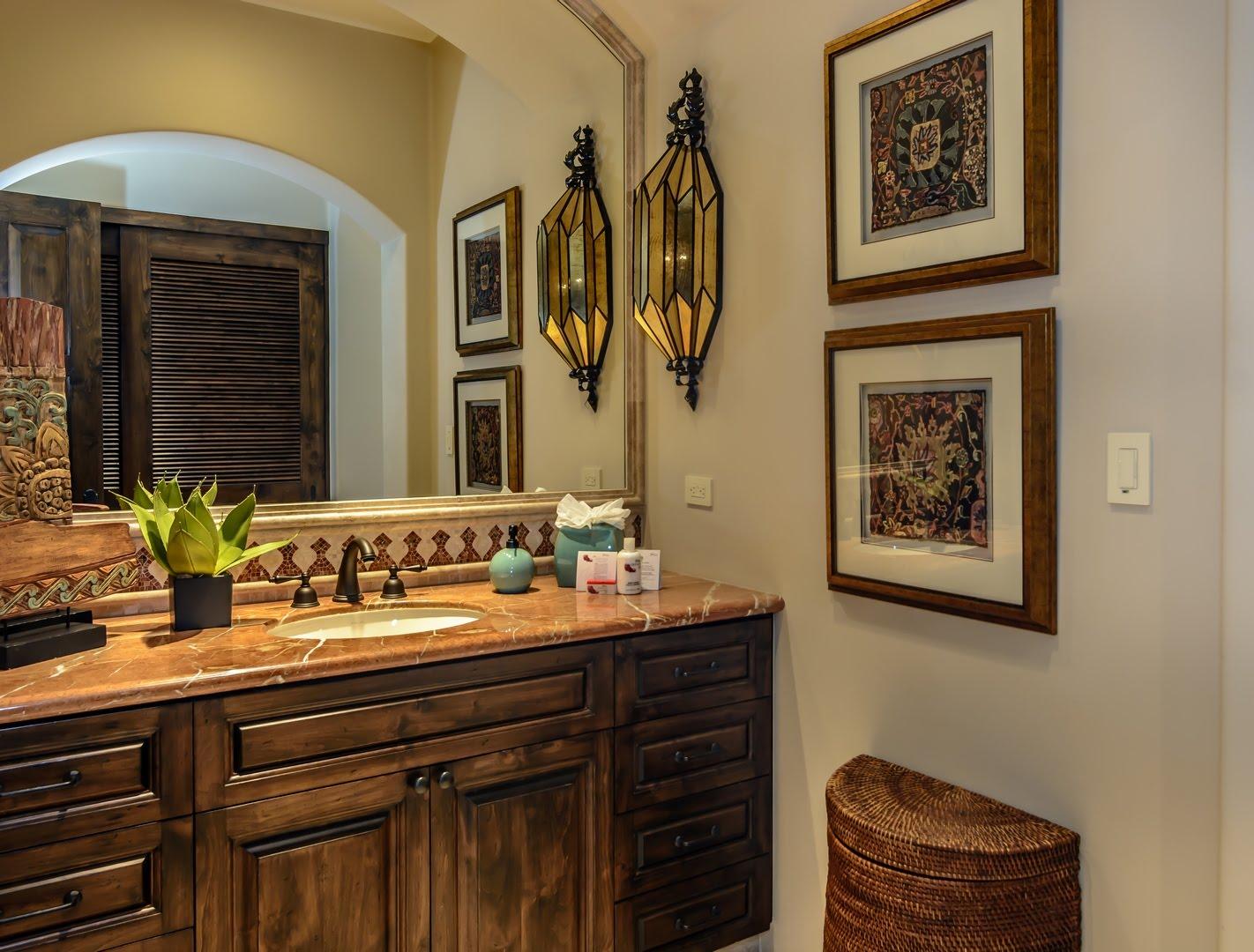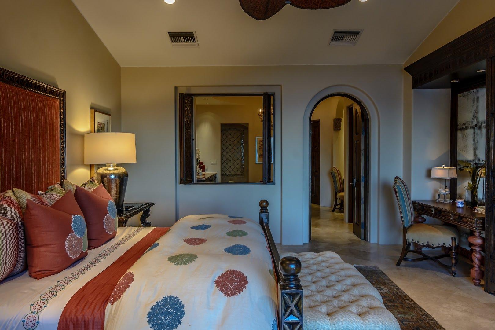 This mountainside home exemplifies the beauty that emerges when you let the outside in. The sky’s tones, accompanied by the turquoise pool waters, pour through the multiple pocket sliders. Once inside, a delicate balance of feminine and masculine work its magic with cheery hues. The decor embraces bold colors with flashes of glamour, while keeping things classic and comfortable. It was all designed to be both intimate, yet work well for gatherings with friends and family. After dark, poolside becomes enchanted as the twinkling stars illuminate the sky. Casita 61 is bold, warm, elegant, a little sexy and has a whole lot of Wow!