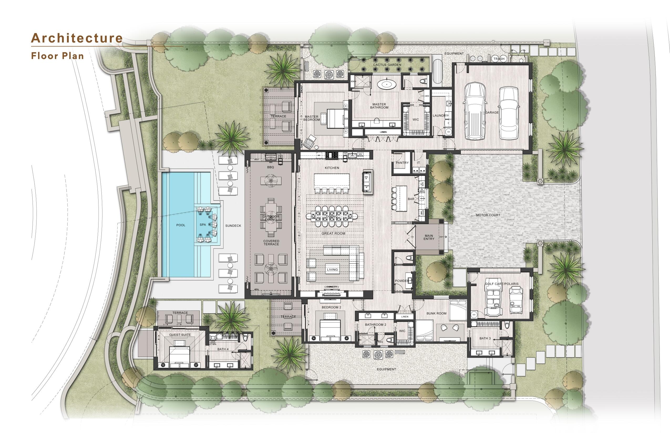 This single-story estate home in the heart of the Espiritu community offers sweepingocean and mountain vistas, a plush and expansive outdoor living area.A spacious entry motor court welcomes you for absolute privacy. This property featuresa common area: bar, living room, dining and kitchen. With four bedroom suites,including a separate poolside guest cottage is the perfect home for entertaining guests.The outdoor space is just exquisite, with an outdoor covered terrace where you candine, grill at the bbq or just relax by the pool in the sundeck.