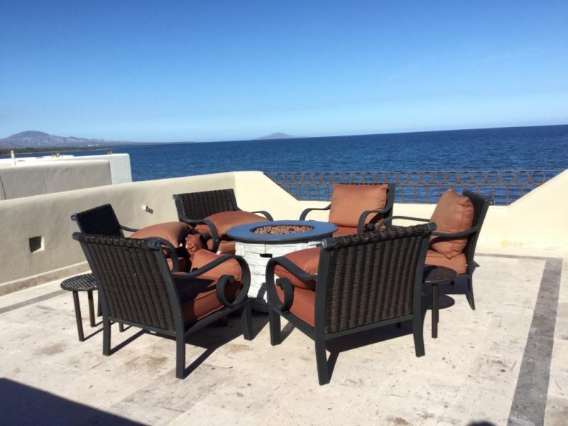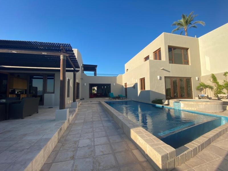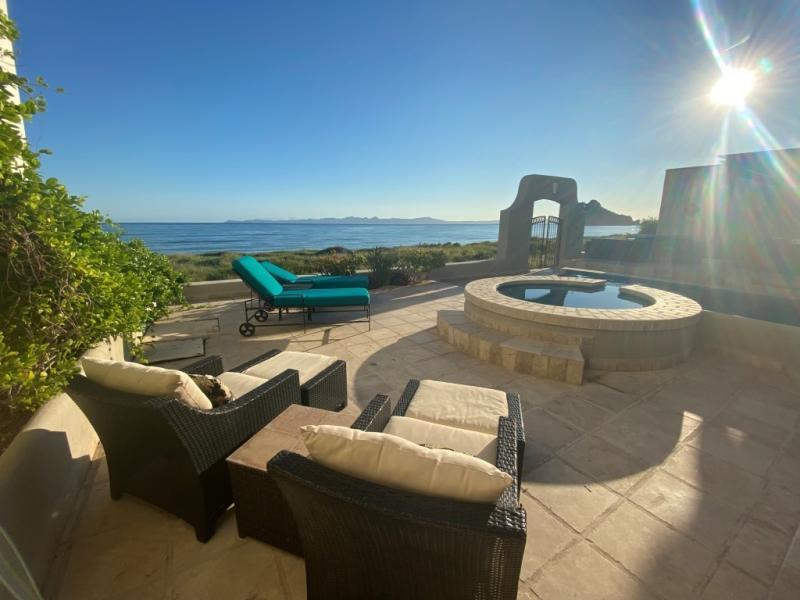 Luxurious Beachfront home on the Sea of Cortez with sweeping views of Coronado and Carmen Isles. There is nothing more tranquil that watching sunrises with the dolphins and fish jumping right in front of your home. Third floor View Tower takes advantage of sunsets on the Sierra Mt. Range and golf course. Large Chef’s Dream Kitchen with Viking appliances, including 2 BBQ grills, that make entertaining so much more enjoyable! Large dining areas both indoor and outside, as well as quiet terraces for your guest getaways. Beautiful mature landscaping, large golf cart storage and 100 gal hot water tank. Laundry room well stocked for 4 Master Suites; 3 with ocean views. Lap Pool with sauna on the beach is great family home. Large living room with sliding doors open to enjoy cool Sea breezes.