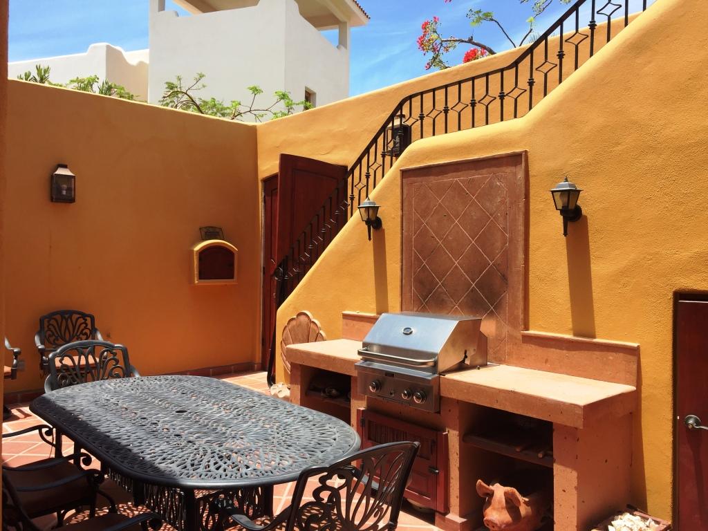 Unique 3 bedroom, 3 bath Poema Floor Plan. This high end Village Home plan has 1 large bedroom with 2 queen beds and adjoining bath with closet off the main living area; 1 Master bedroom/bath off the main level courtyard; and 1 large Master Bedroom upstairs, with ensuite bath and large closet … very bright with mountain views. Large main level courtyard perfect for BBQ entertaining. This bright private home is close to parking; Wine Cellar and 1 min walk to beach. Located on large community courtyard gardens with plenty of privacy on all sides. Terrace has Canterra tile floors for years of worry free waterproofing, as well as perfect for sun bathing and happy hours. Add a View tower for outstanding water and mountain views.