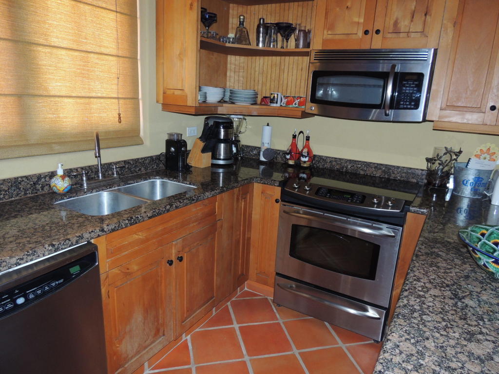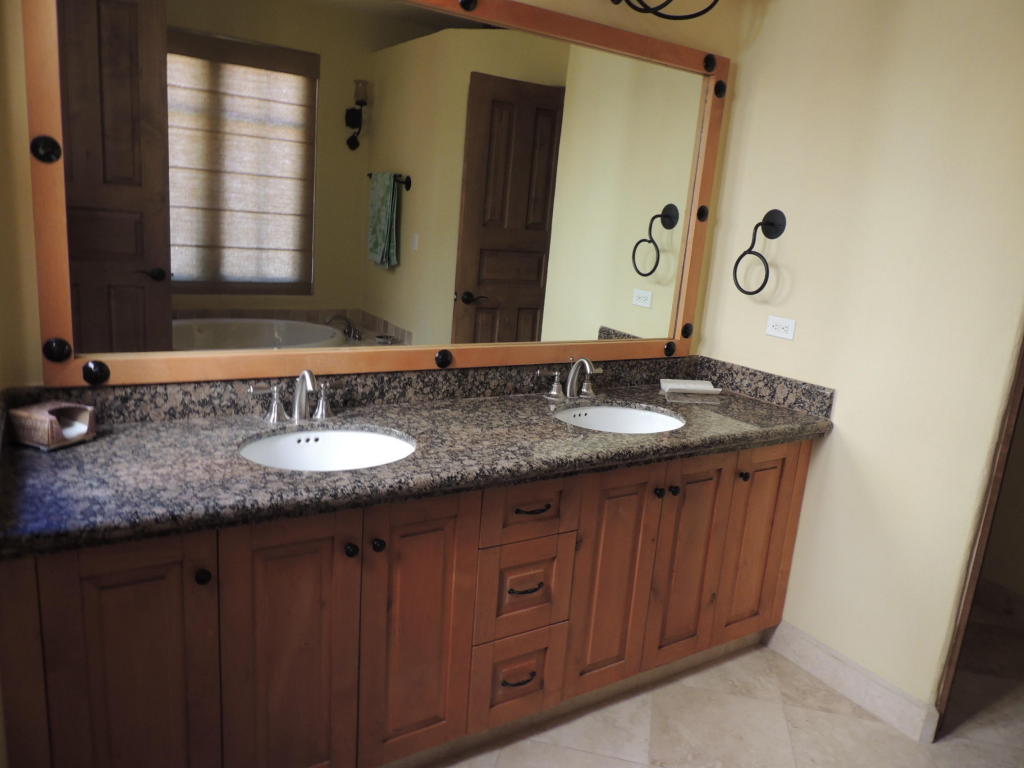 In the heart of Founders, an easy walk to the Wine Cellar, Corazon Cafe, restaurants, beach and community pools, this large and unique Casa Chica is open on three sides, has a large side garden with a golf cart entrance, upgraded floors and granite counter tops in the kitchen and both bathrooms. Enjoy great mountain and golf course views from the viewing tower. Located in a quiet tranquil area. This home is bright and sunny, a great rental, fully furnished and move in ready!