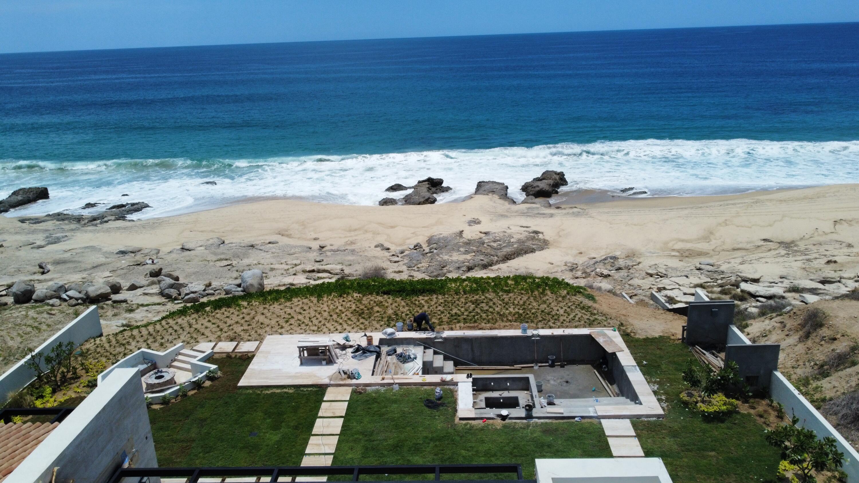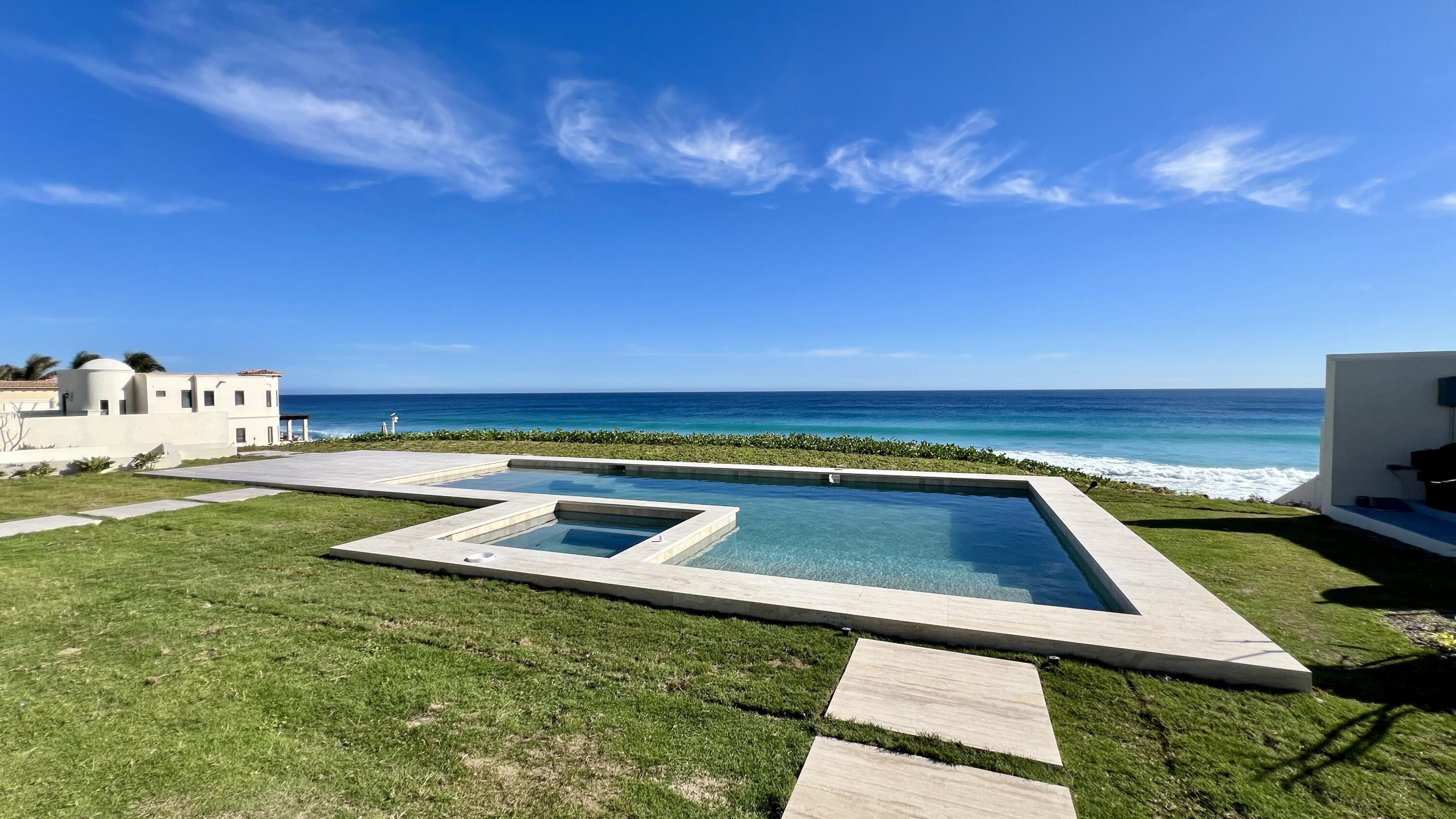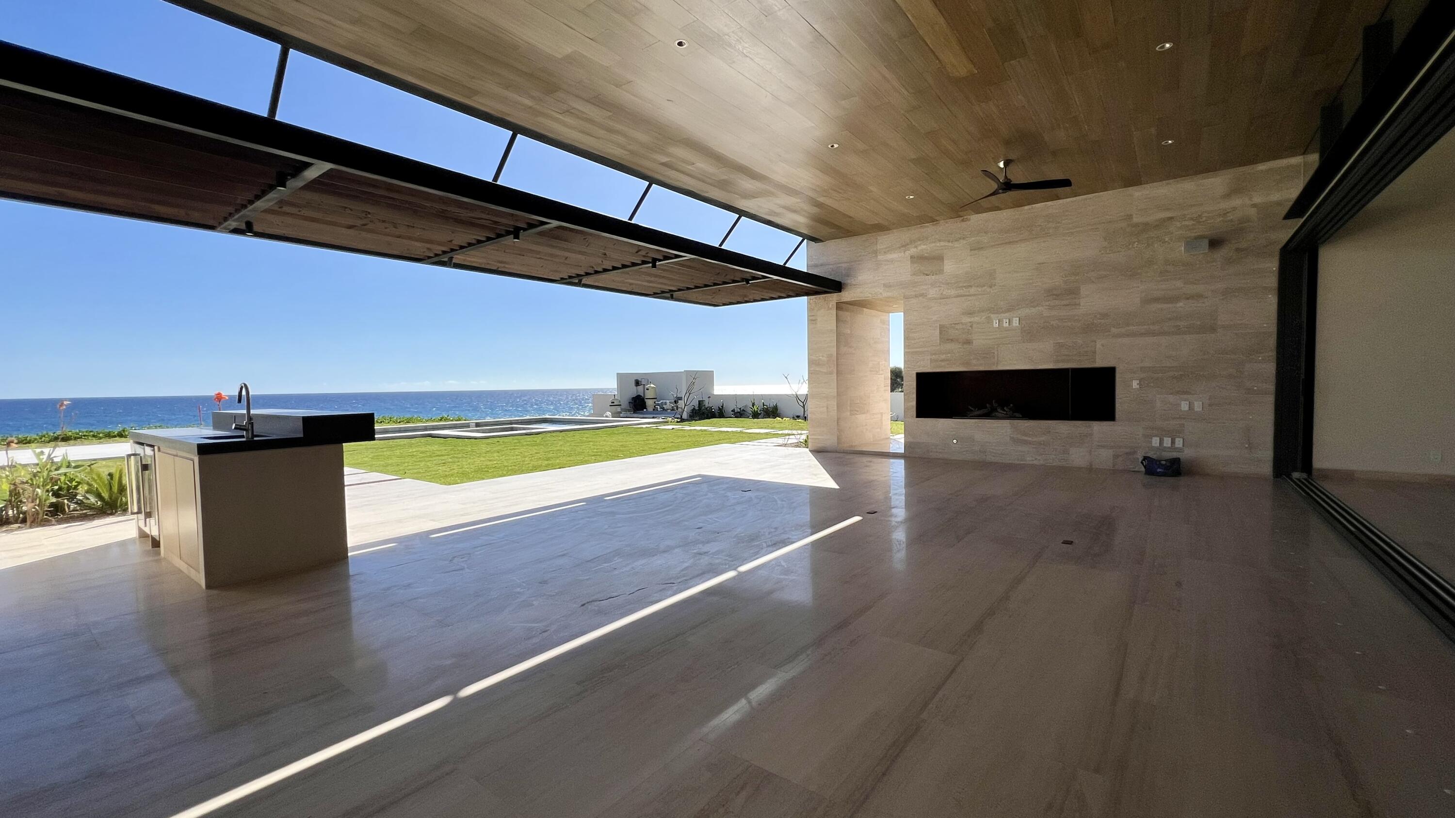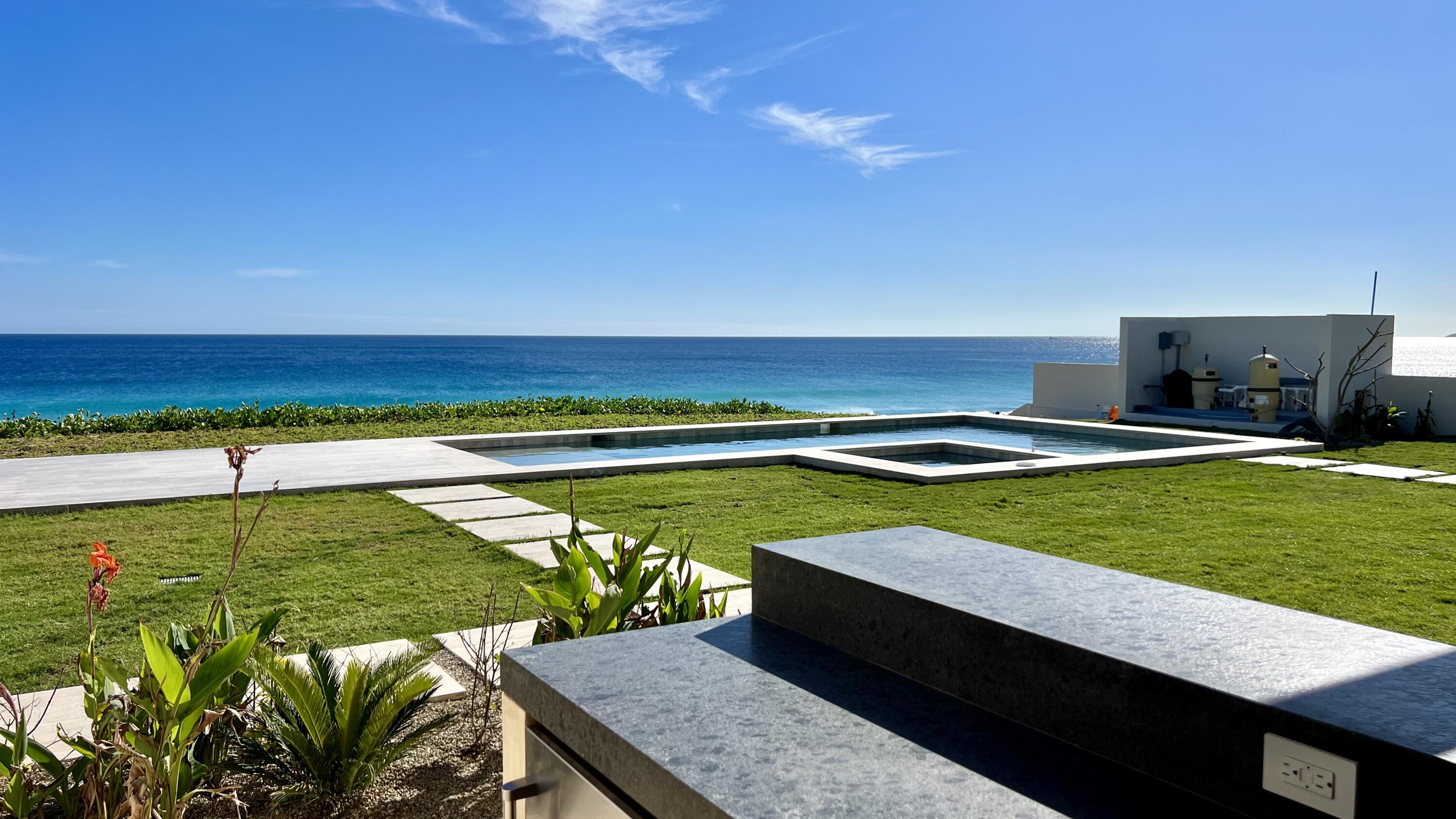 This Beachfront villa boasts over 10,700 sqft of living space. It features 6 spacious bedrooms plus den. Each thoughtfully designed for comfort and privacy. The villa includes two primary suites located on either side of the main indoor and outdoor living area. These suites offer a luxurious touch with large ensuite baths, providing guests with the ultimate comfort and convenience. The outdoor living space of the villa is a true oasis, offering a range of amenities that are perfect for relaxation and entertainment. There is a cozy fire pit with seating, where you can enjoy warm nights surrounded by the beautiful desert landscape. The heated swimming pool and jetted spa are perfect for a refreshing swim or a relaxing soak. Ready to be Delivered February 2024