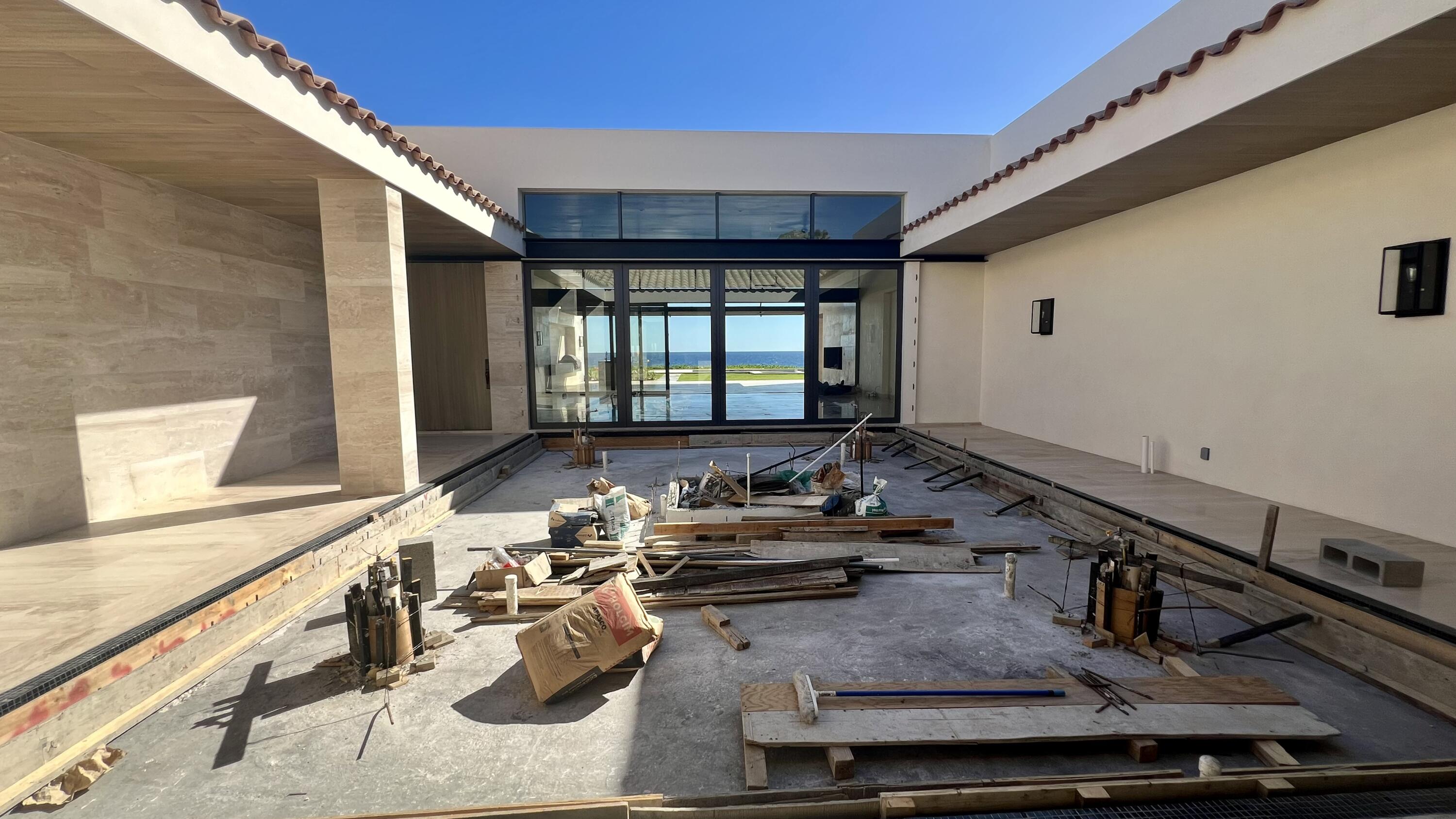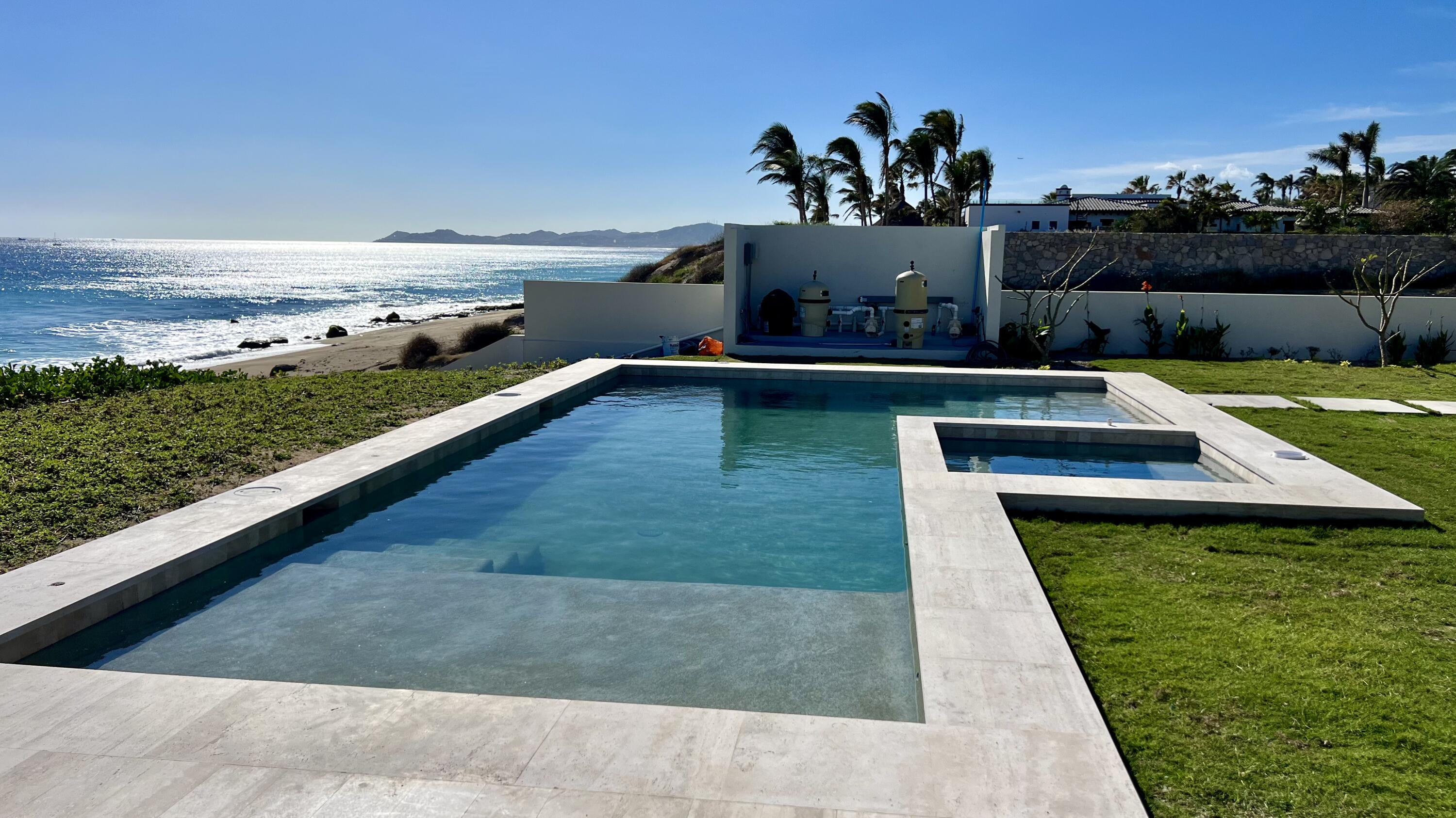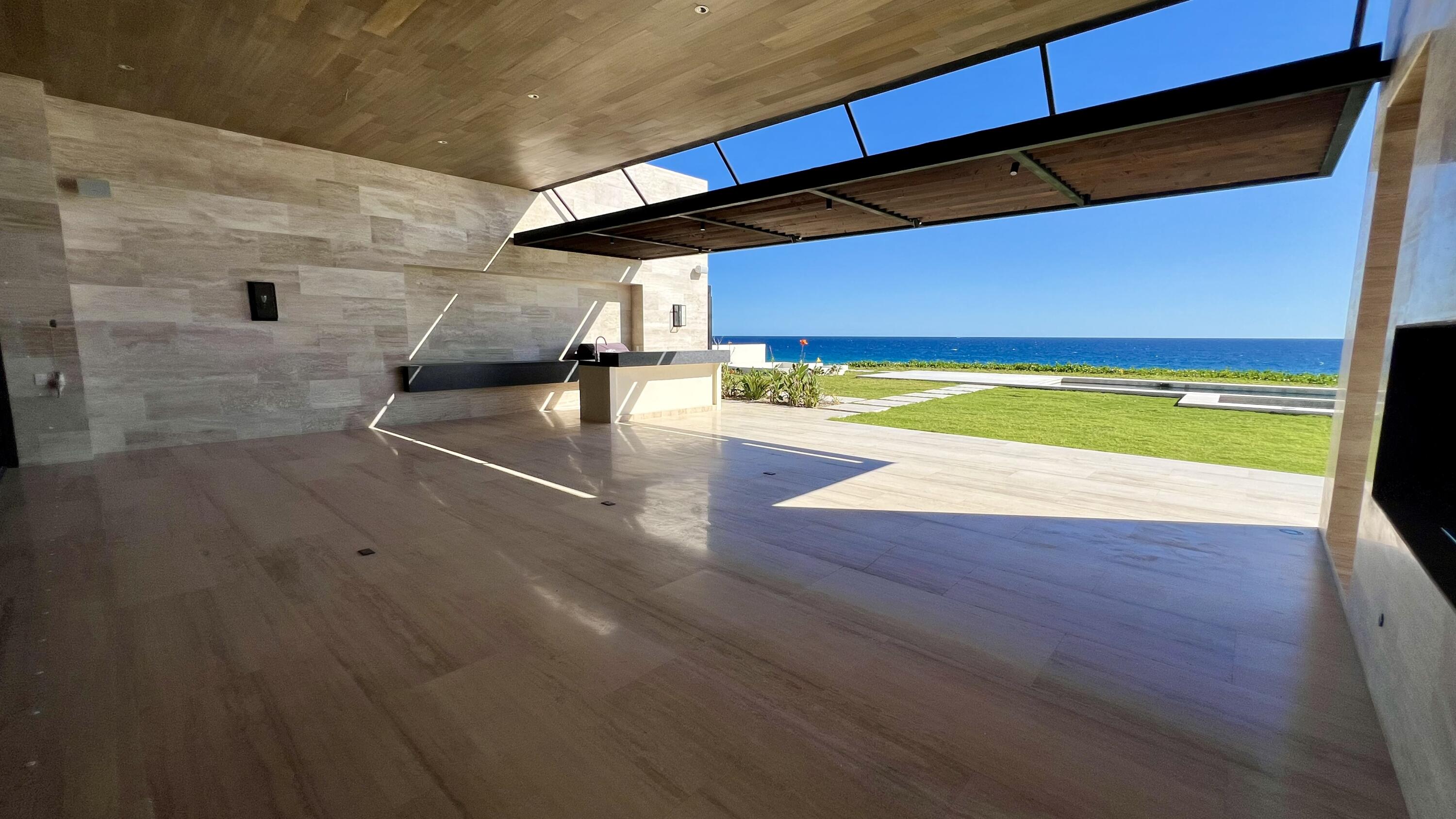 This Beachfront villa boasts over 10,700 sqft of living space. It features 6 spacious bedrooms plus den. Each thoughtfully designed for comfort and privacy. The villa includes two primary suites located on either side of the main indoor and outdoor living area. These suites offer a luxurious touch with large ensuite baths, providing guests with the ultimate comfort and convenience. The outdoor living space of the villa is a true oasis, offering a range of amenities that are perfect for relaxation and entertainment. There is a cozy fire pit with seating, where you can enjoy warm nights surrounded by the beautiful desert landscape. The heated swimming pool and jetted spa are perfect for a refreshing swim or a relaxing soak. Ready to be Delivered February 2024