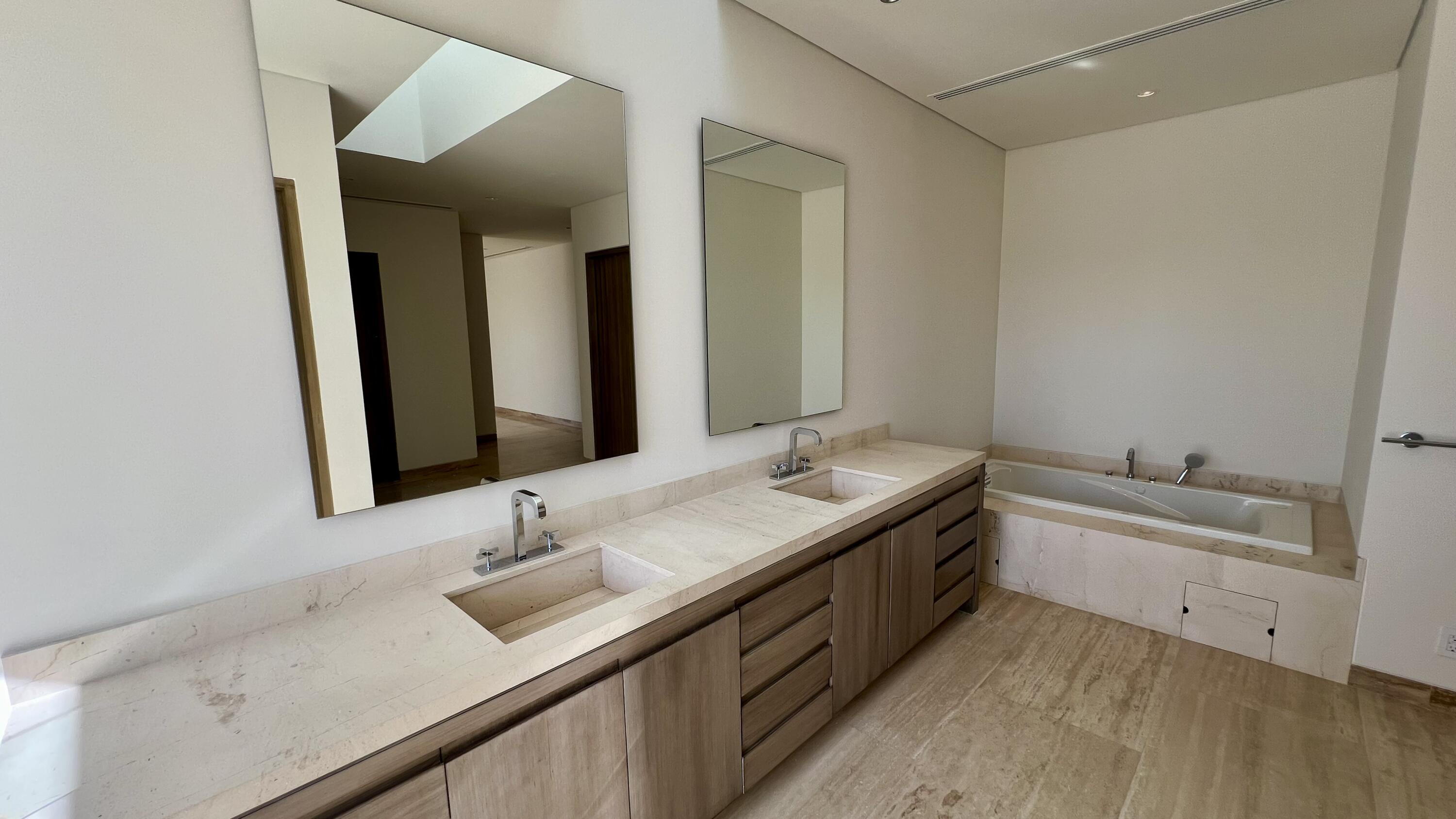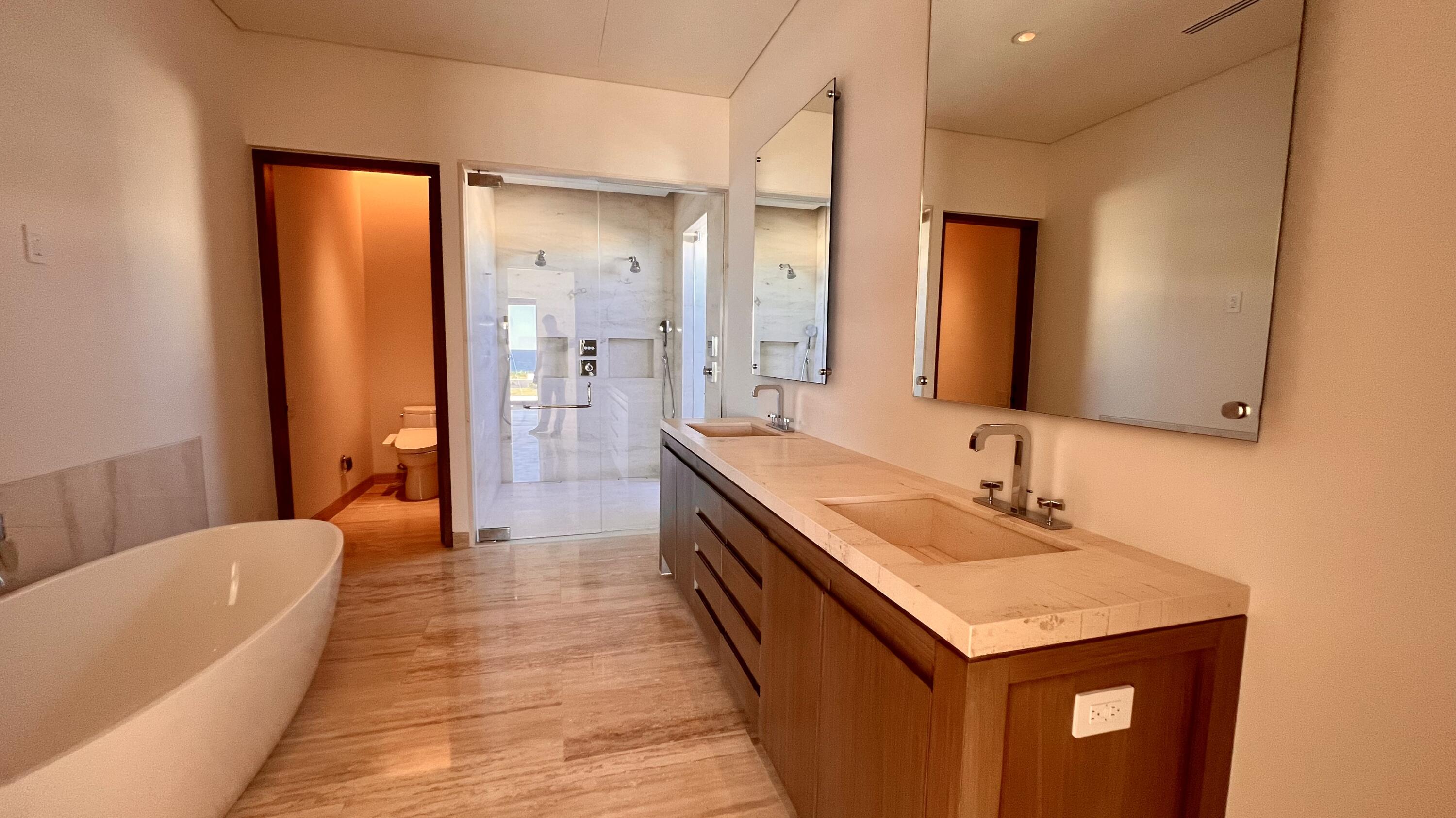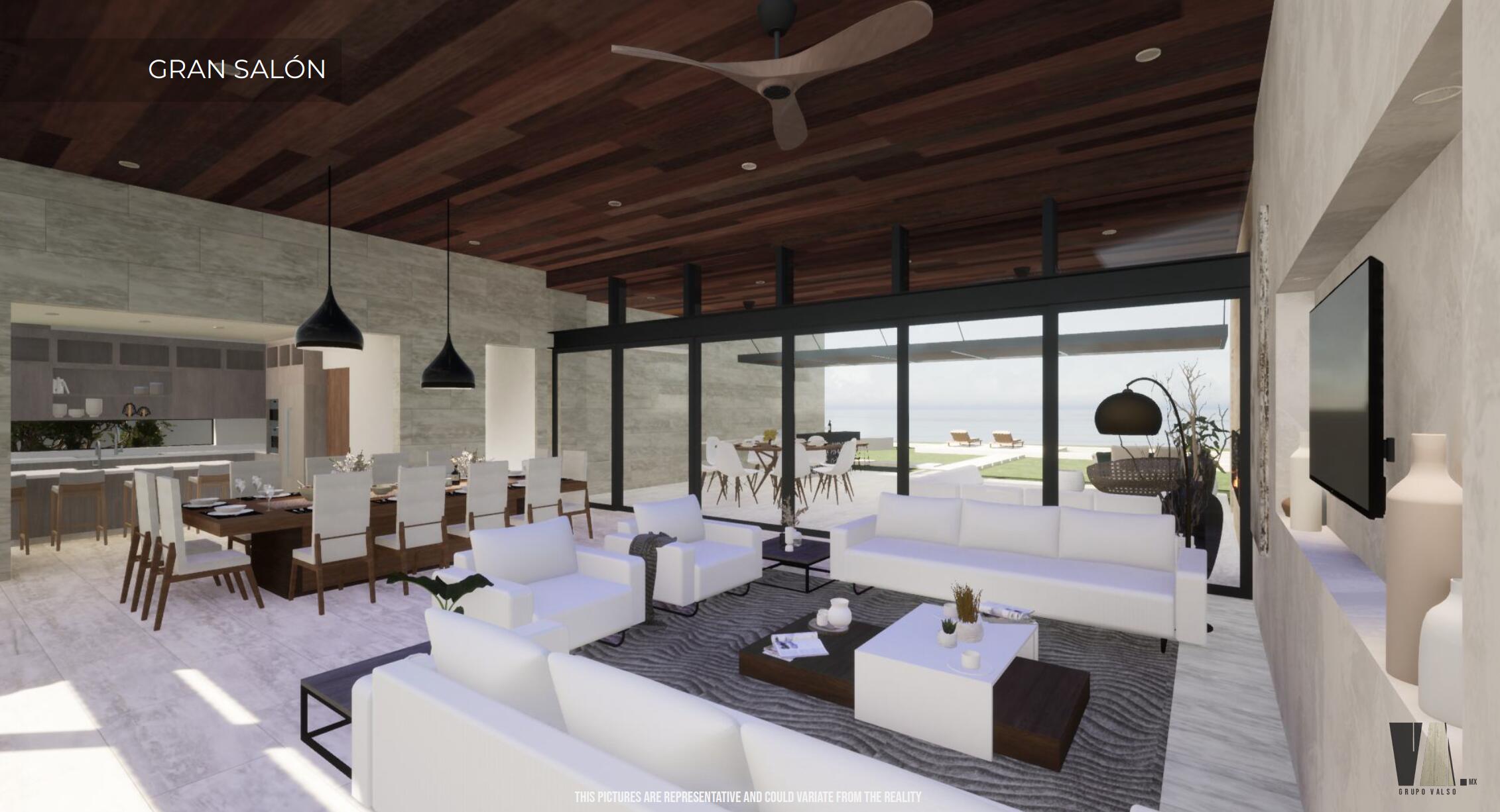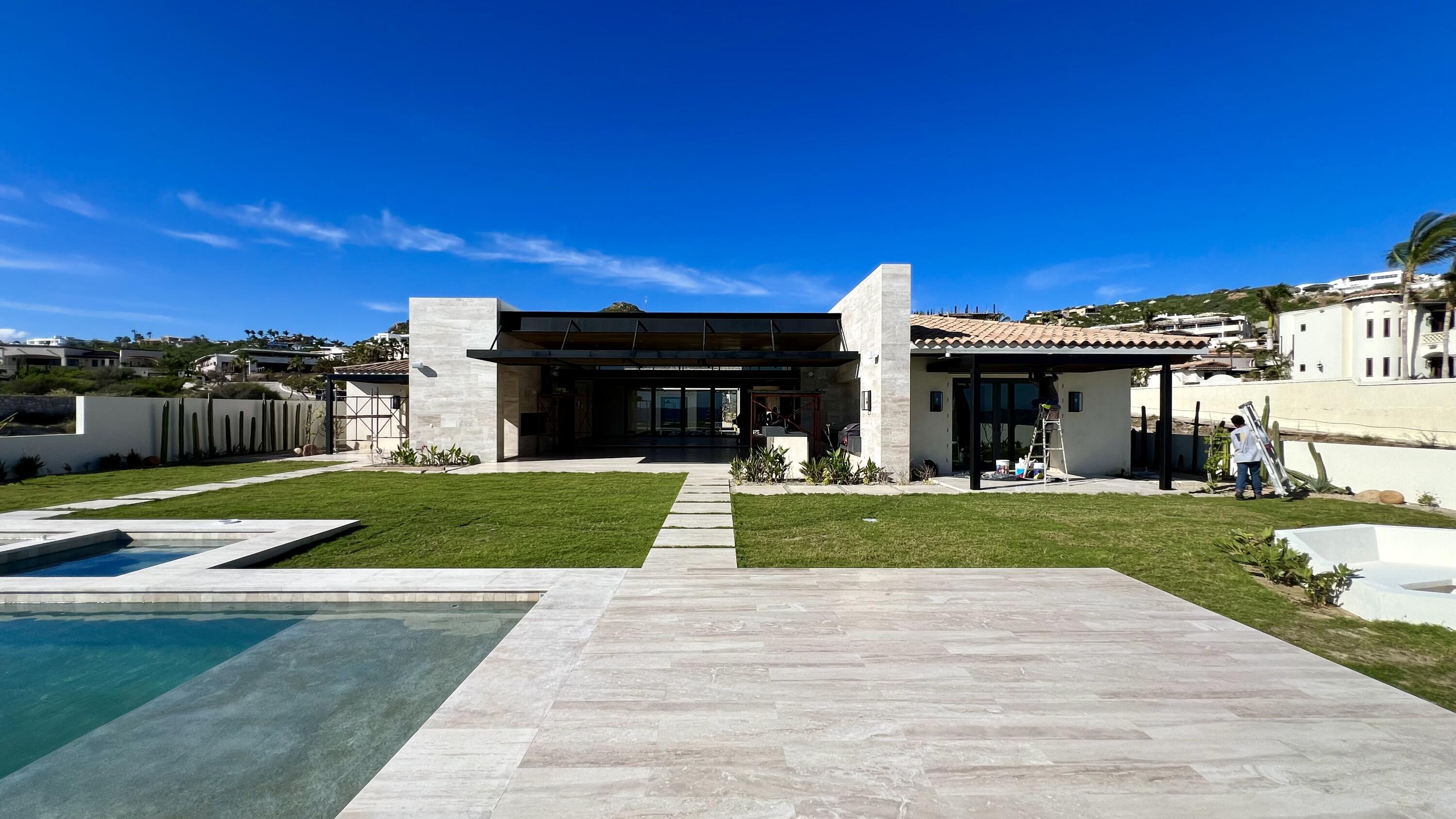 This Beachfront villa boasts over 10,700 sqft of living space. It features 6 spacious bedrooms plus den. Each thoughtfully designed for comfort and privacy. The villa includes two primary suites located on either side of the main indoor and outdoor living area. These suites offer a luxurious touch with large ensuite baths, providing guests with the ultimate comfort and convenience. The outdoor living space of the villa is a true oasis, offering a range of amenities that are perfect for relaxation and entertainment. There is a cozy fire pit with seating, where you can enjoy warm nights surrounded by the beautiful desert landscape. The heated swimming pool and jetted spa are perfect for a refreshing swim or a relaxing soak. Ready to be Delivered February 2024