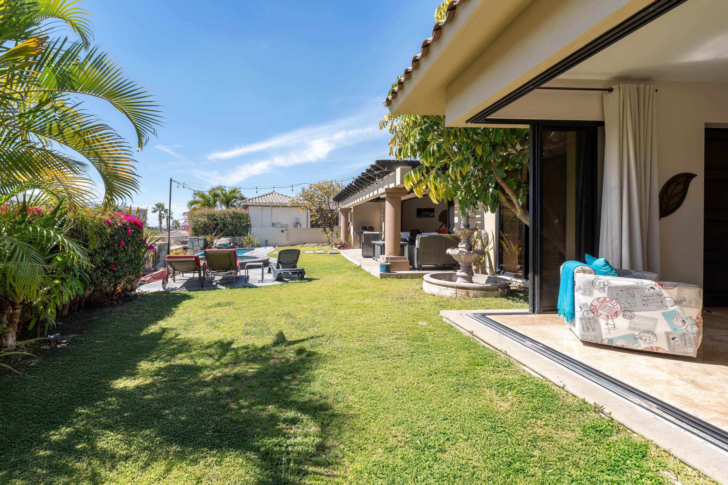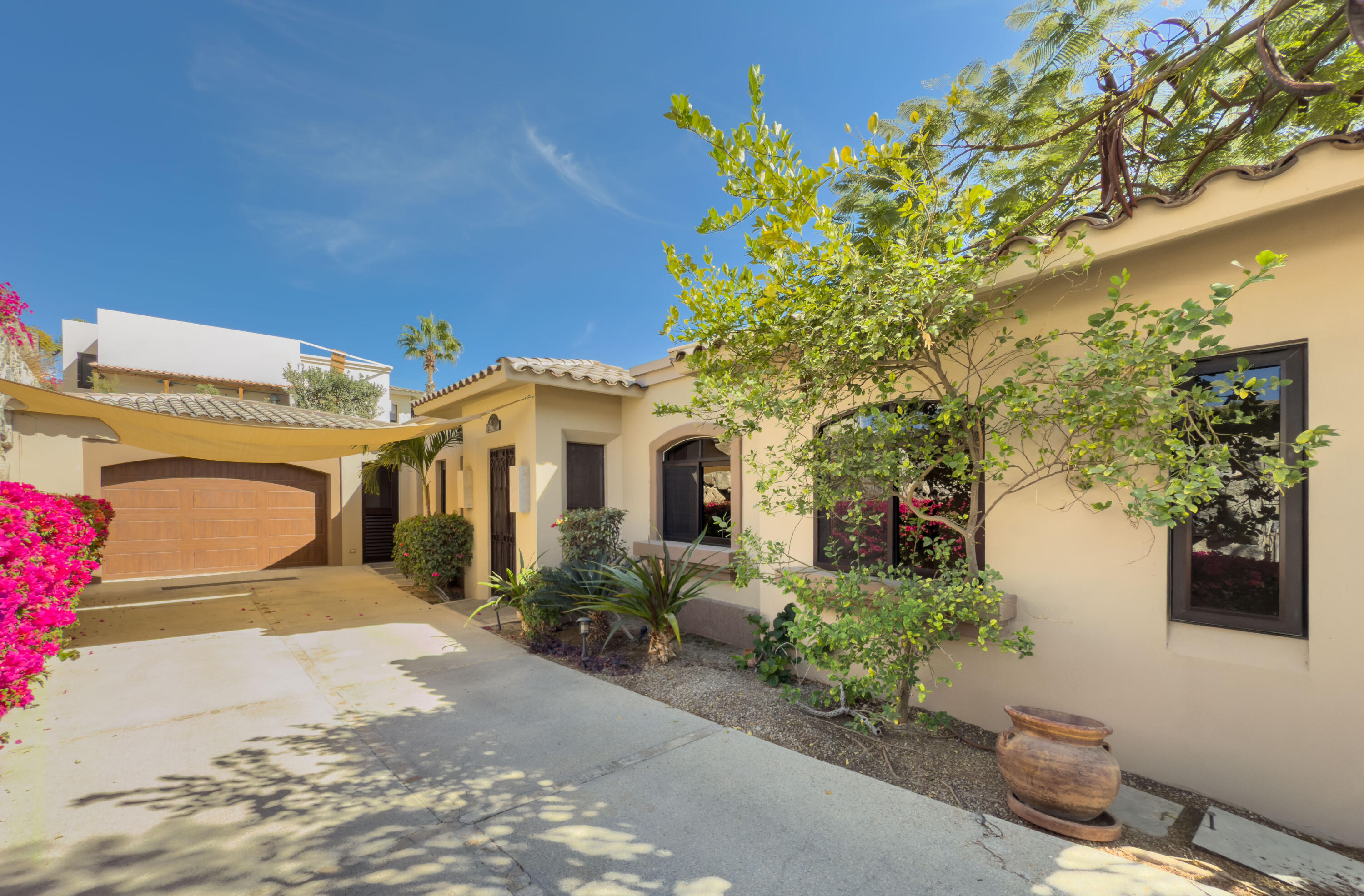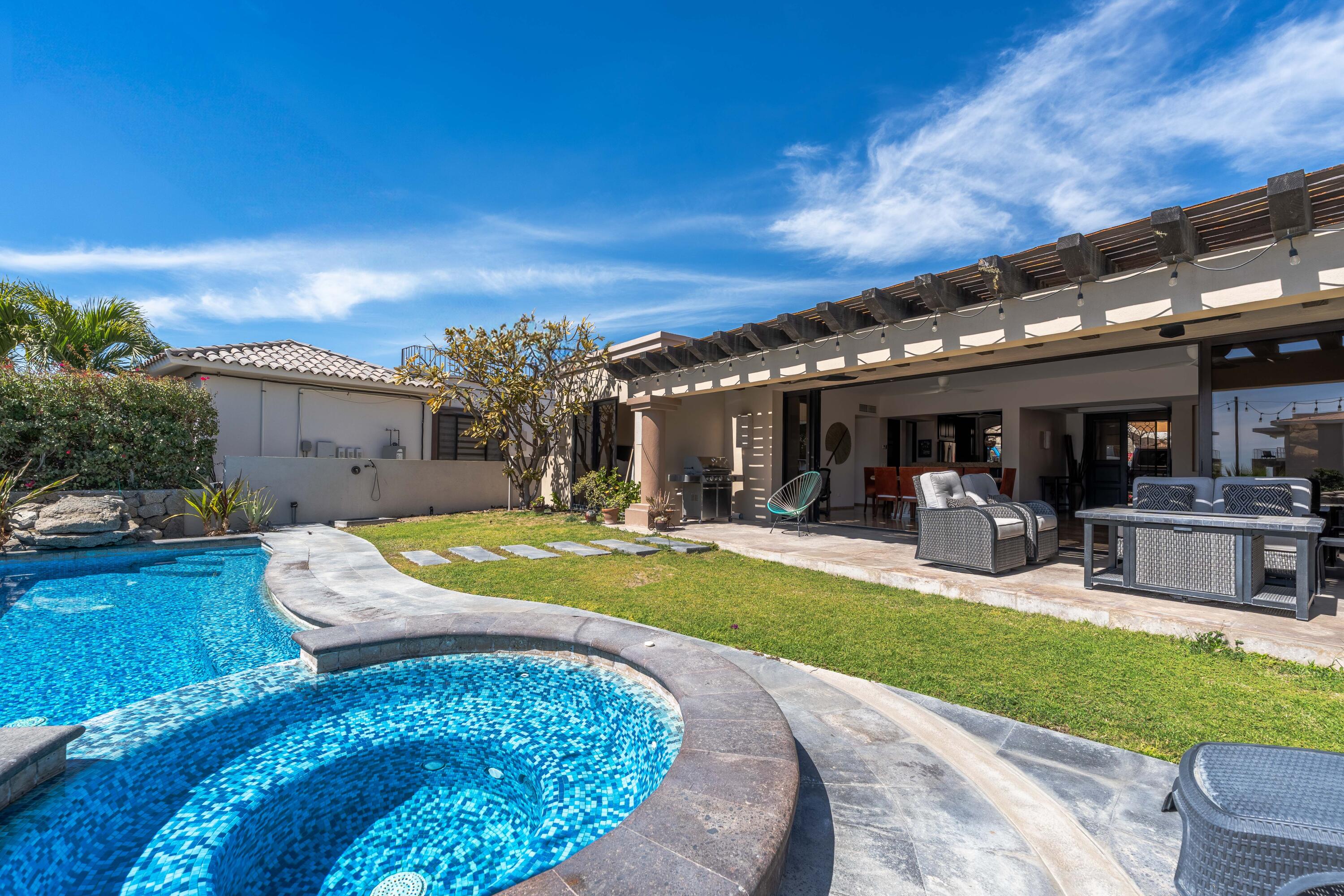 This stunning single story residence in Hermitage blends luxury and comfort, offering four bedrooms and four bathrooms, with one bedroom thoughtfully designed as a media room. The open-concept layout flows seamlessly into a private outdoor oasis, featuring a pool and spa, perfect for relaxation and entertaining. Ideally located just minutes to the beach, shopping plazas, private schools and hospitals, and restaurants, this property is a prime choice for families, investors, or international buyers seeking exceptional quality finishings and value in Cabo San Lucas. There is ample room for parking with a long driveway and an ideal floor plan providing privacy and comfort. A gated community, Hermitage is also across the street from Cabo pickleball courts, and minutes to markets and shopping