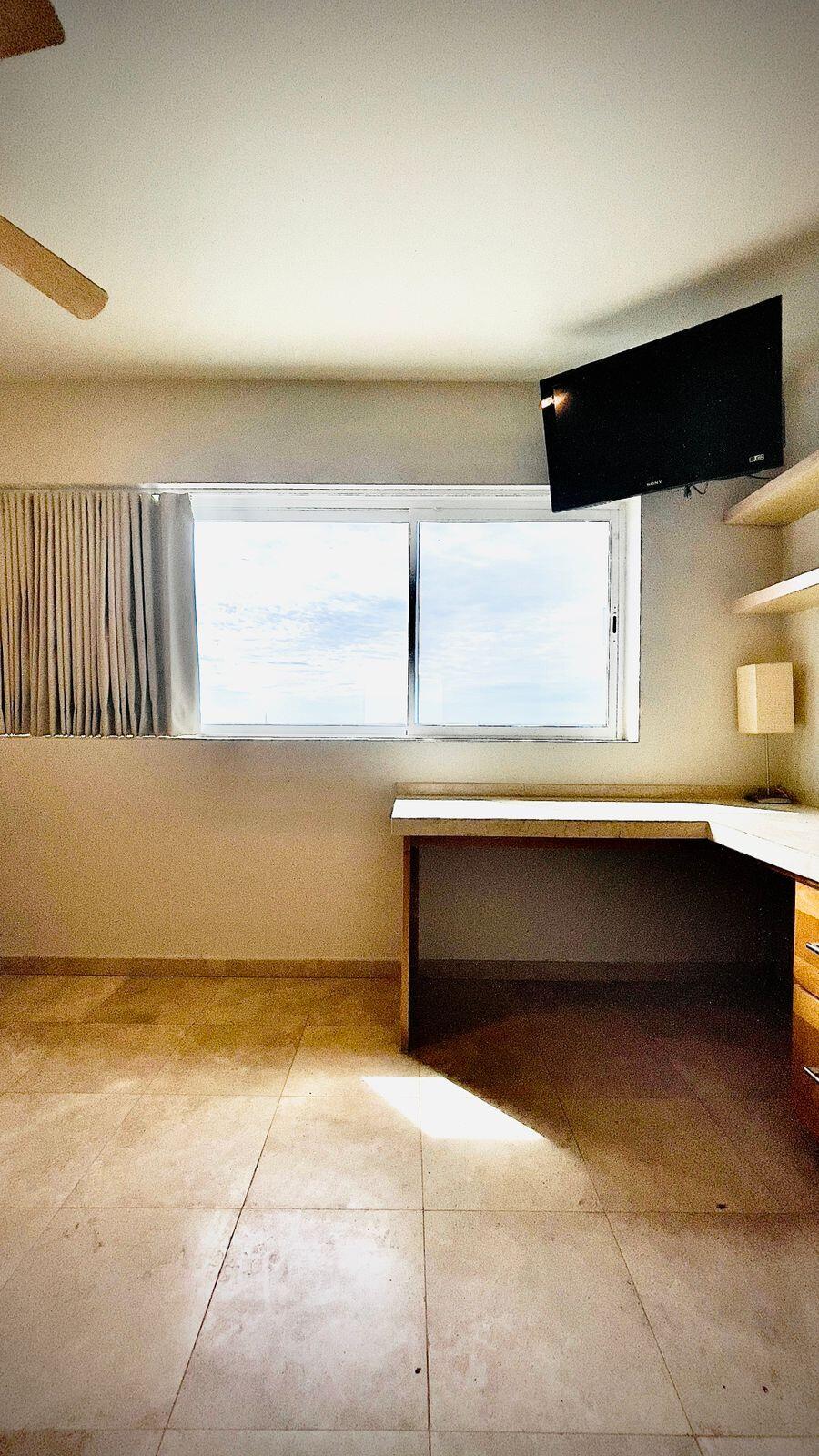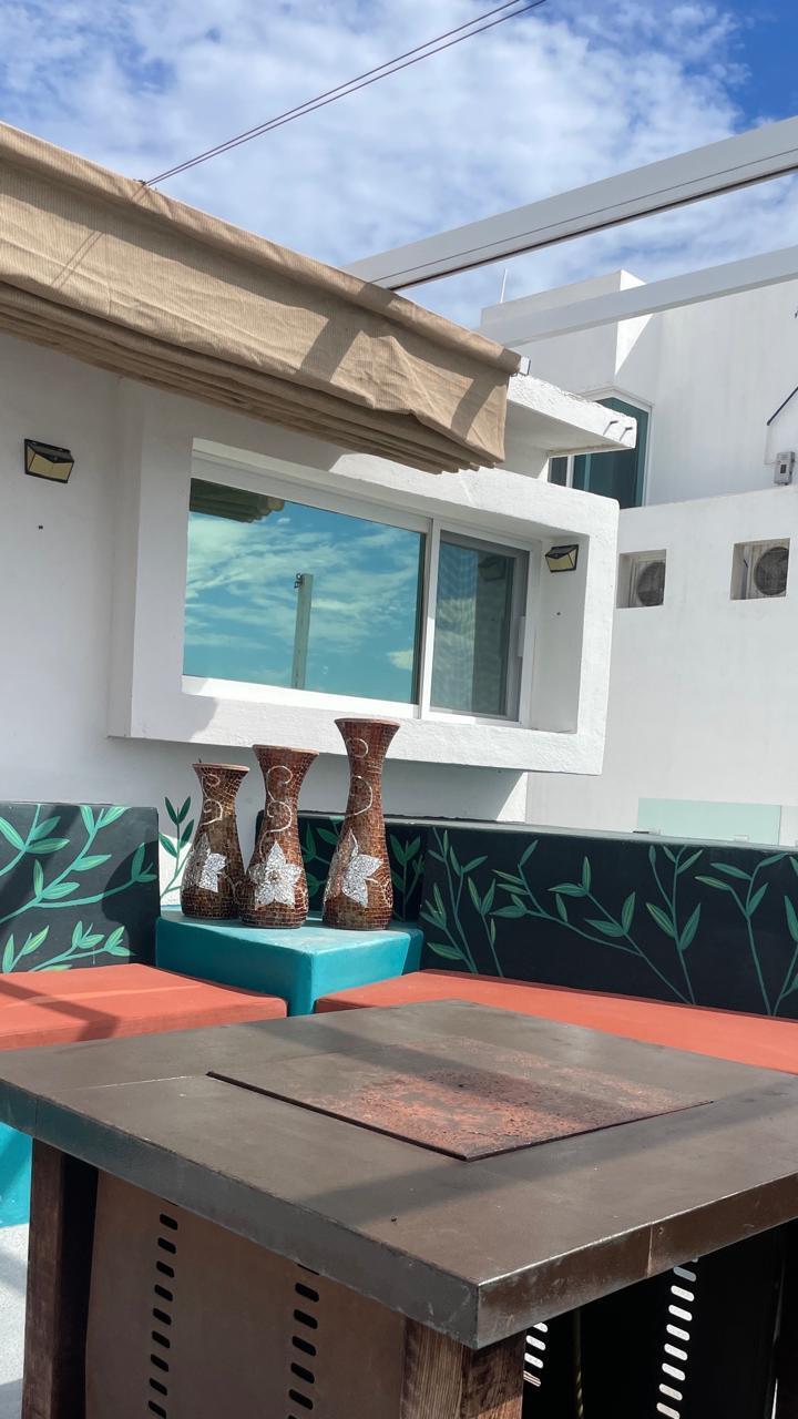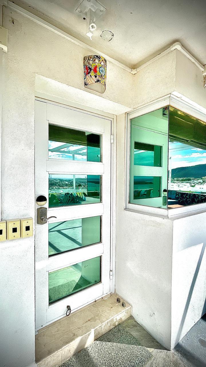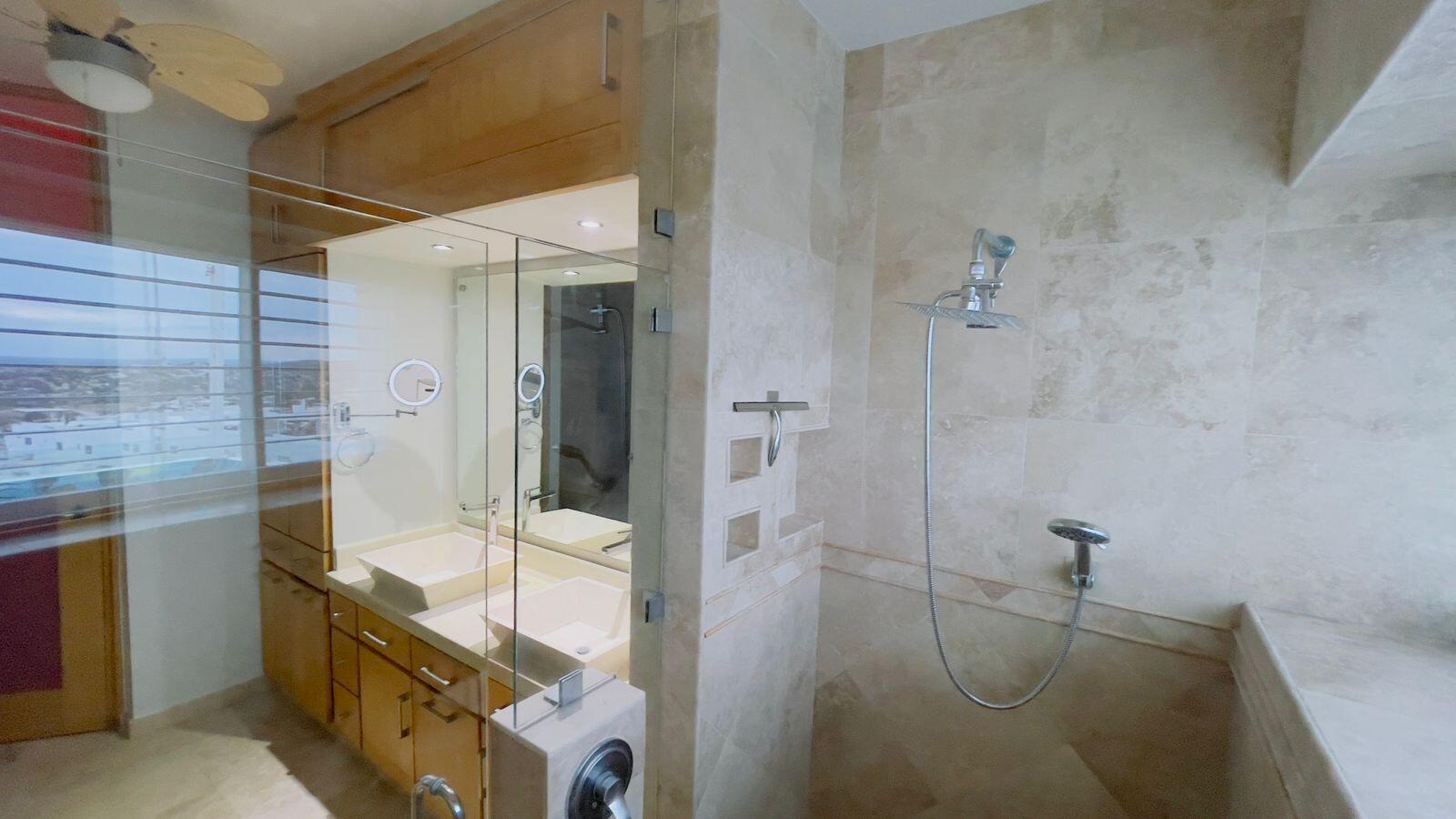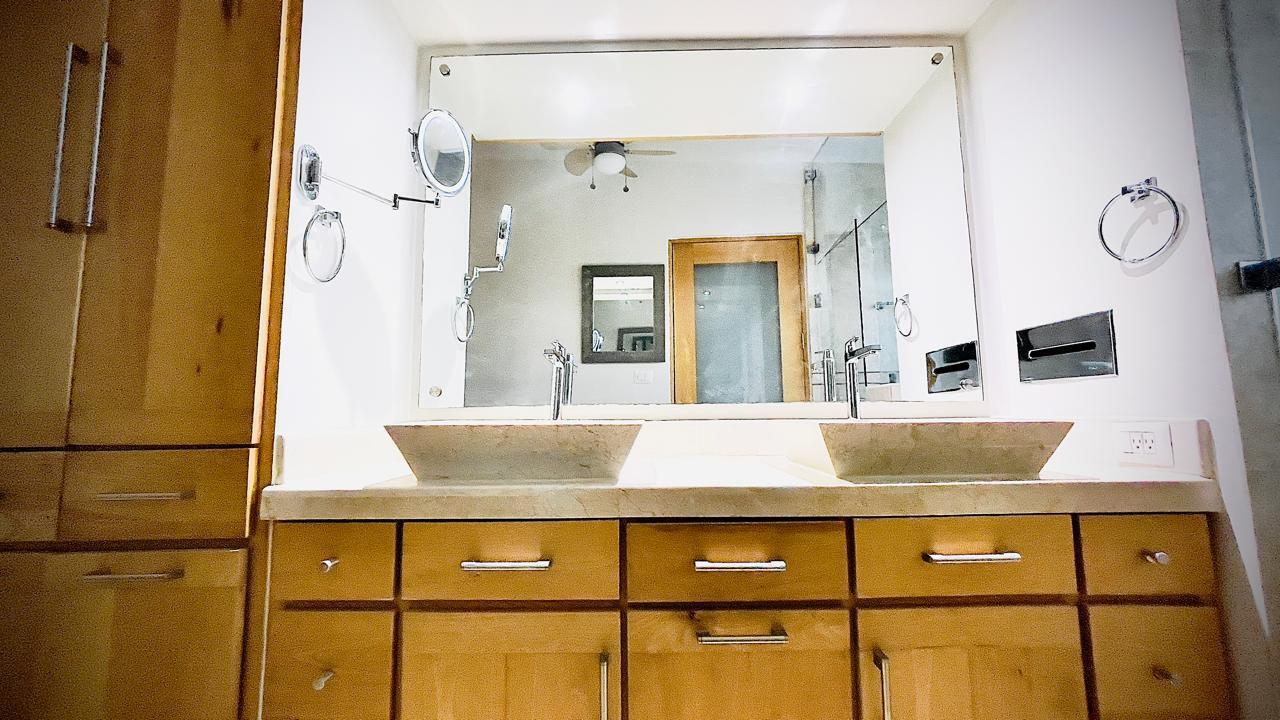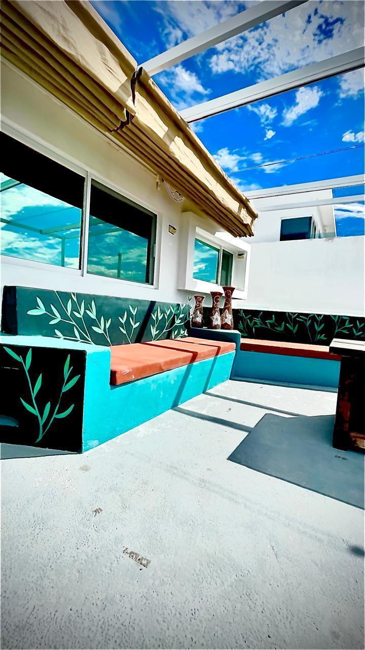 Unparalleled unobstructed views of La Paz City, Bay, Mountains, and sunsets from this Penthouse 900 sqf Terrace, Indoor and Outdoor living space meet a full-equipped Kitchen, granite countertops, and solid wood cabinets. Living room space with a Suite on each side, the Master Suite overlooking La Paz comes with a walk-in solid wood closet and plenty of storage space, separate toilet and shower, and his and hers vanities. The second bedroom includes a built-in desk, bathroom also includes a view through a large window. Outside a built-in bench, kitchen countertop, laundry and storage, and 20 meter 20-meter-long roof-top terrace