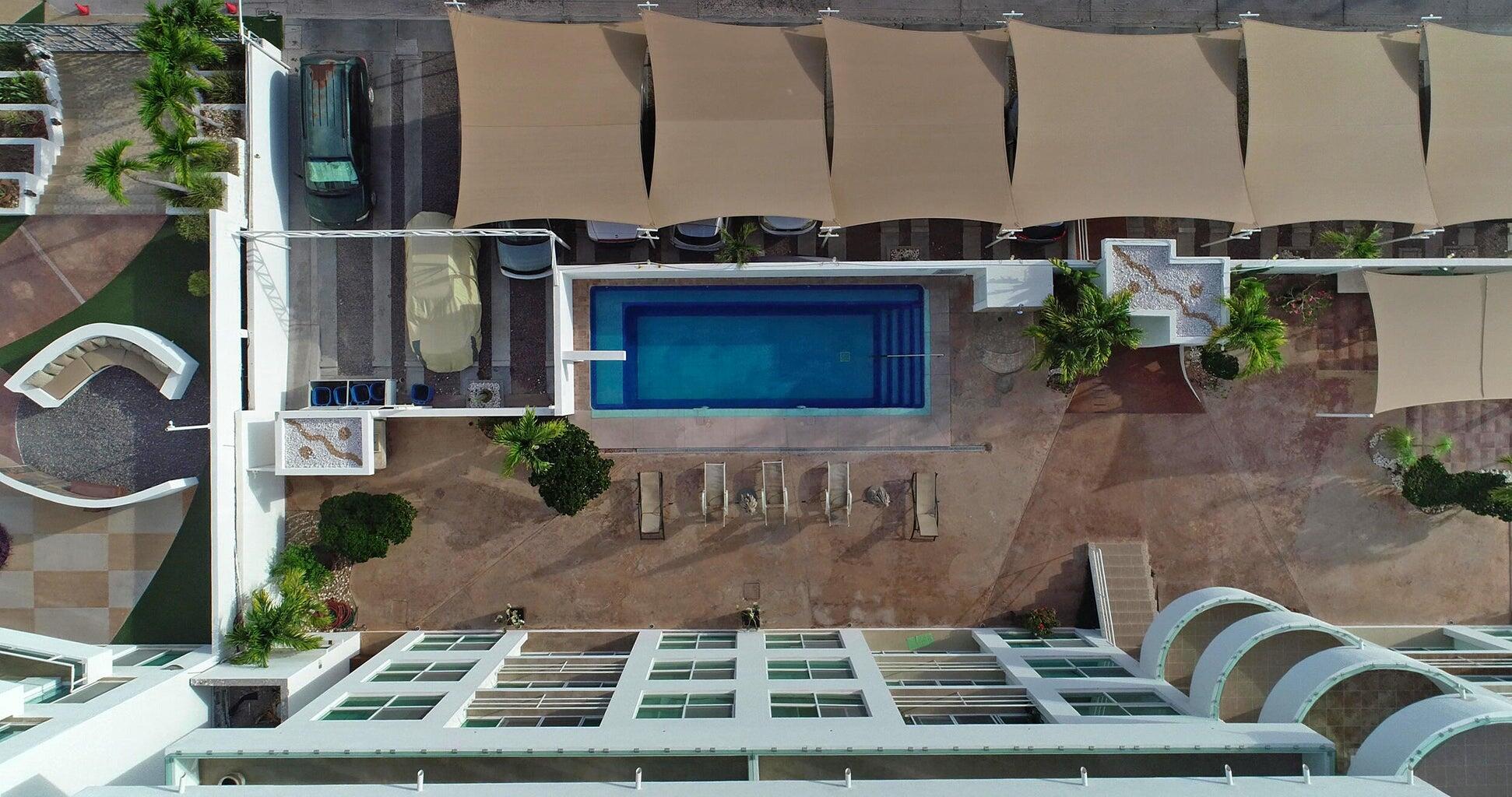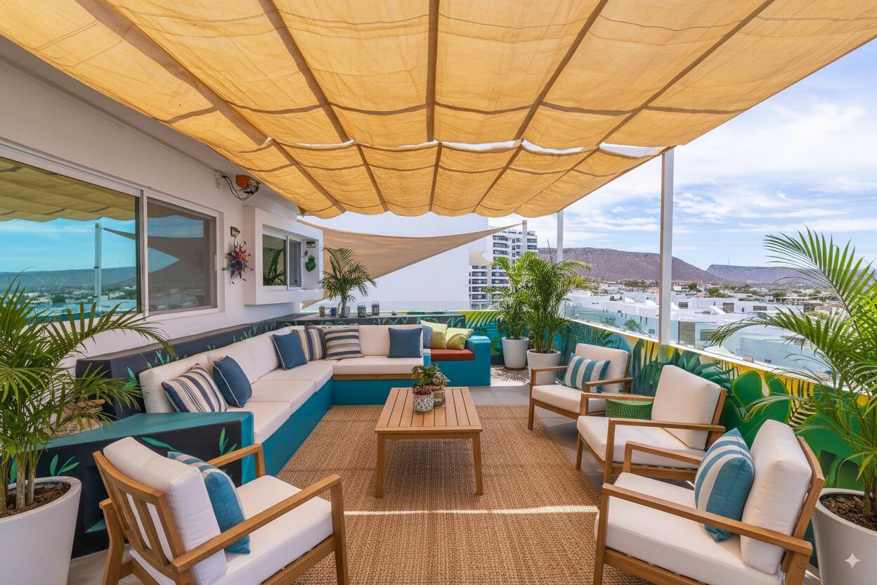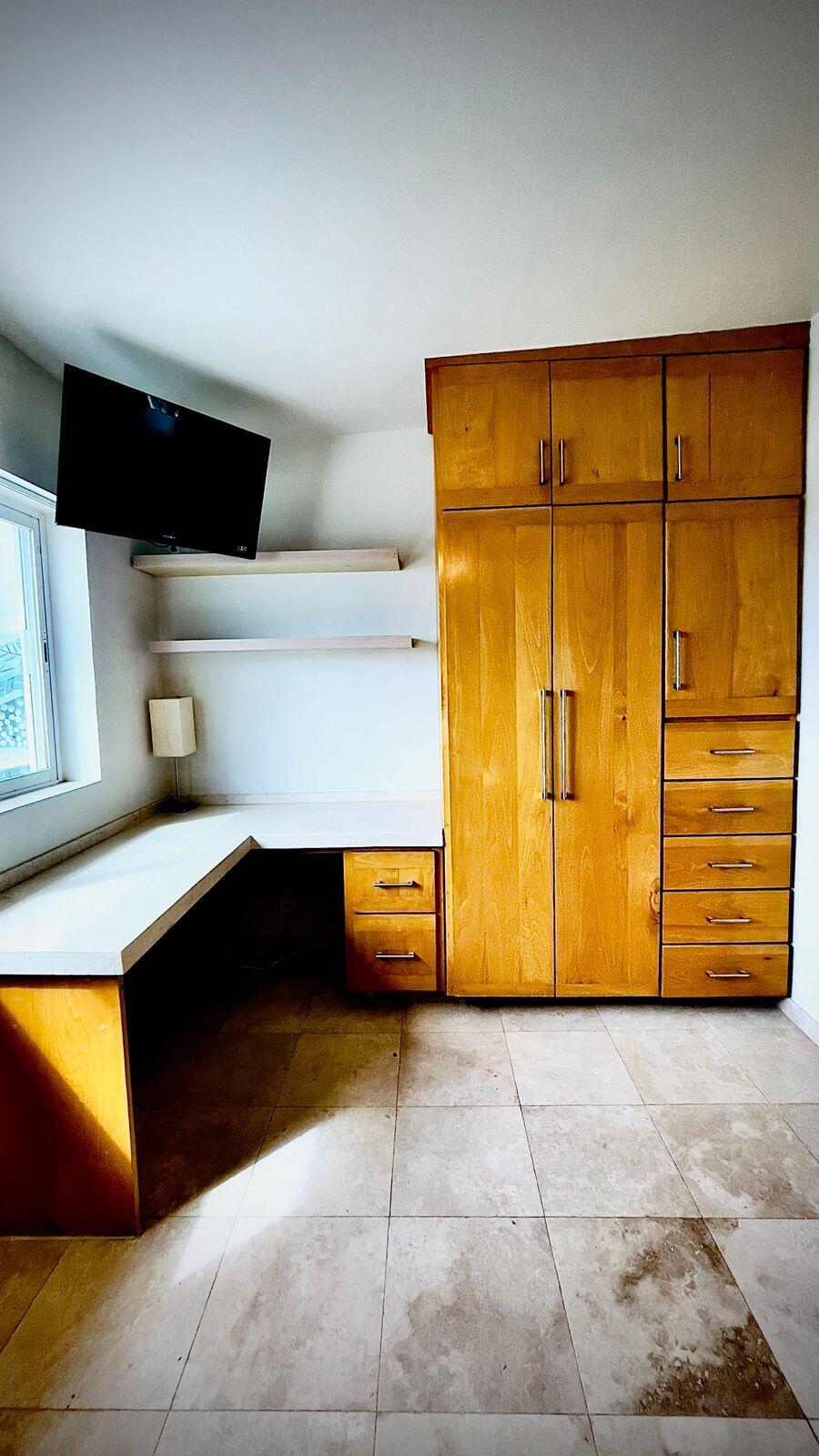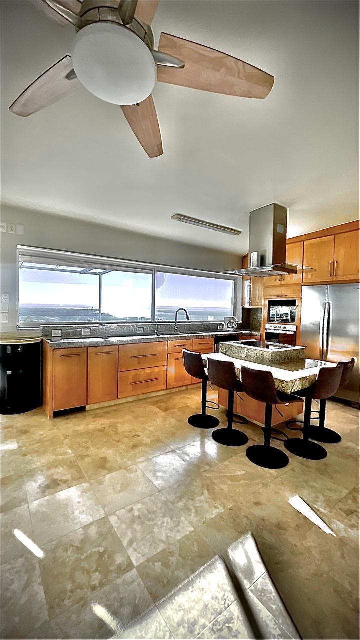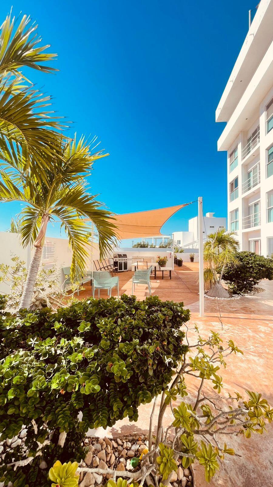 Unparalleled unobstructed views of La Paz City, Bay, Mountains, and sunsets from this Penthouse 900 sqf Terrace, Indoor and Outdoor living space meet a full-equipped Kitchen, granite countertops, and solid wood cabinets. Living room space with a Suite on each side, the Master Suite overlooking La Paz comes with a walk-in solid wood closet and plenty of storage space, separate toilet and shower, and his and hers vanities. The second bedroom includes a built-in desk, bathroom also includes a view through a large window. Outside a built-in bench, kitchen countertop, laundry and storage, and 20 meter 20-meter-long roof-top terrace