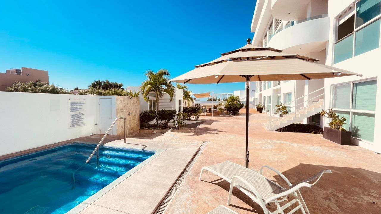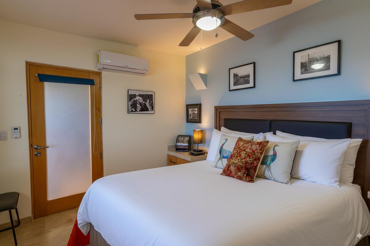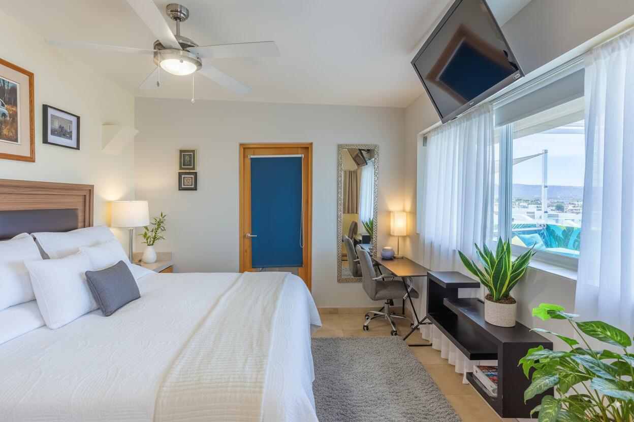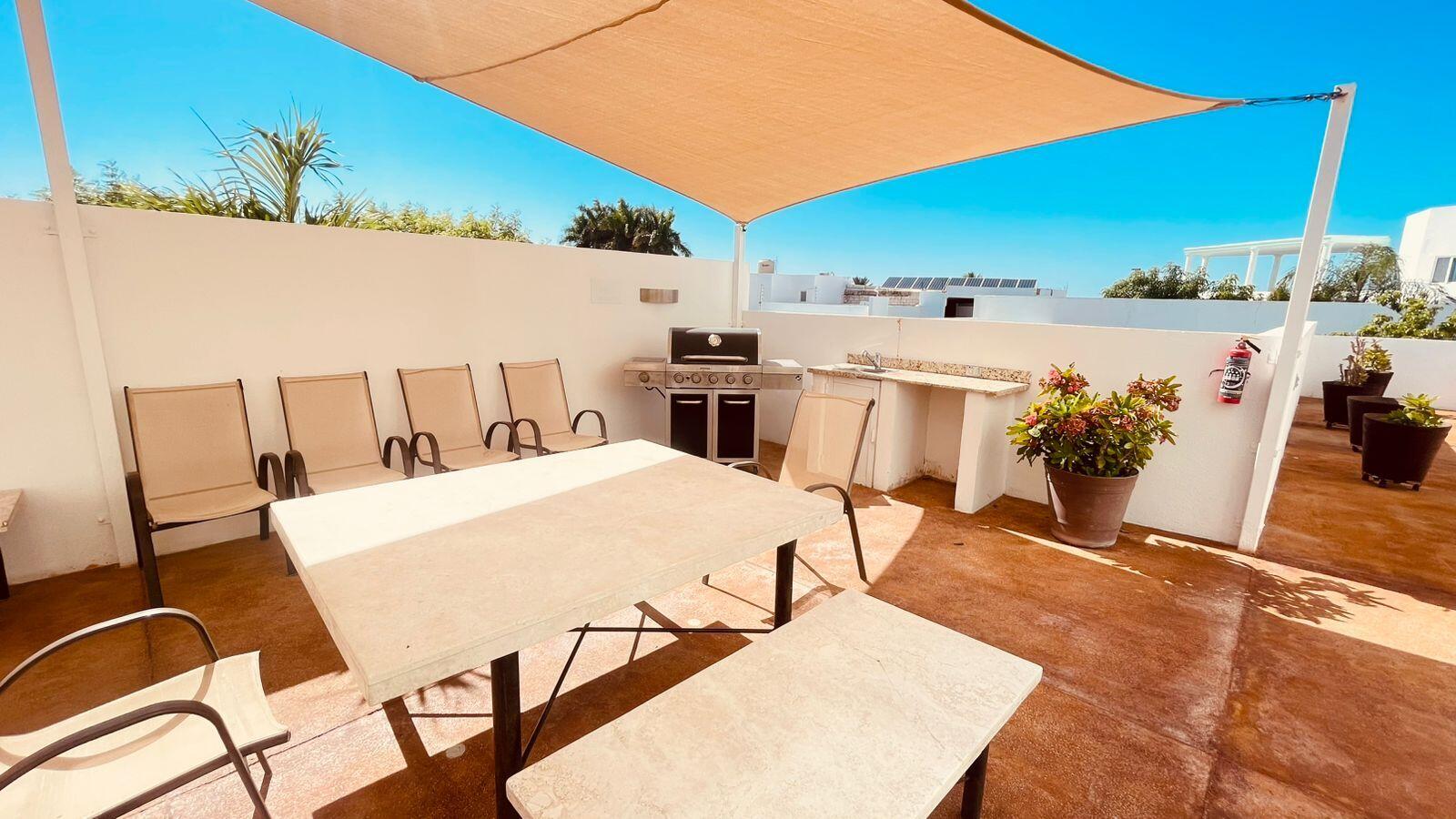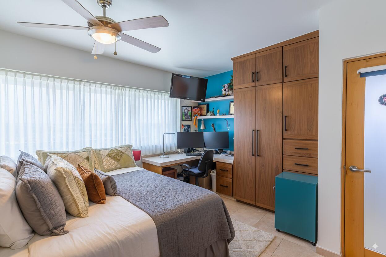 Unparalleled unobstructed views of La Paz City, Bay, Mountains, and sunsets from this Penthouse 900 sqf Terrace, Indoor and Outdoor living space meet a full-equipped Kitchen, granite countertops, and solid wood cabinets. Living room space with a Suite on each side, the Master Suite overlooking La Paz comes with a walk-in solid wood closet and plenty of storage space, separate toilet and shower, and his and hers vanities. The second bedroom includes a built-in desk, bathroom also includes a view through a large window. Outside a built-in bench, kitchen countertop, laundry and storage, and 20 meter 20-meter-long roof-top terrace