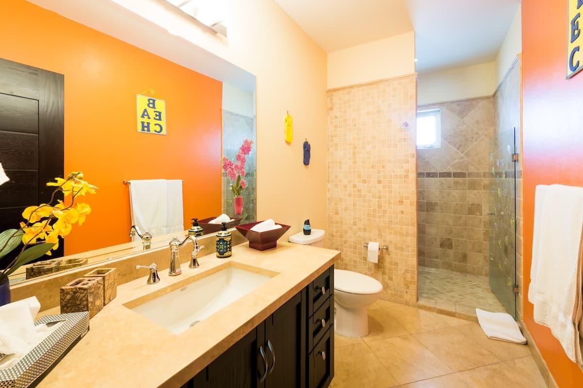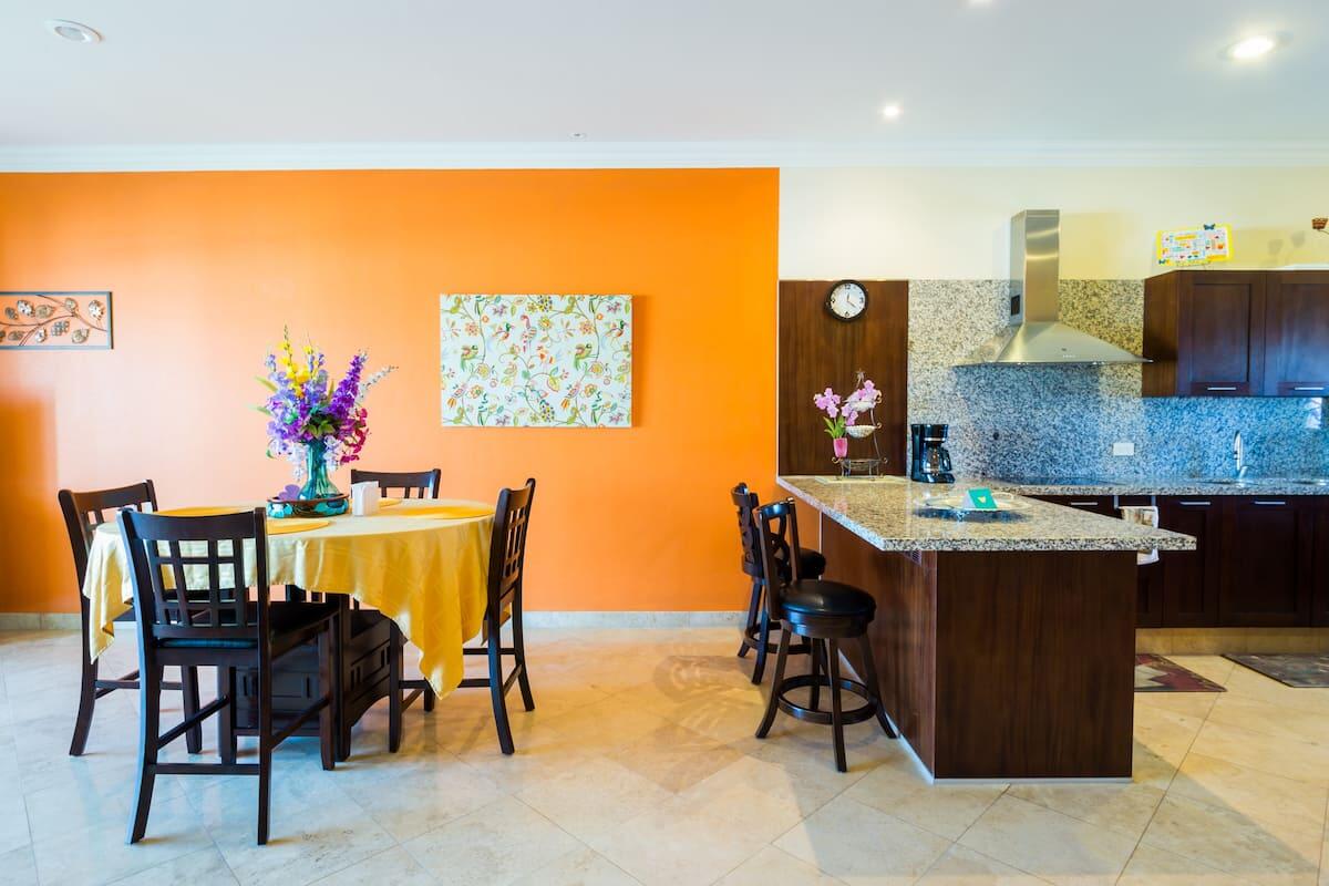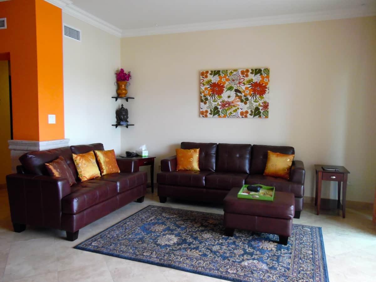 Luxury & confort is how better describe this outstanding 2 bedroom 2 bath apartment built with great attention to detail. Marble floors through out including bathrooms and showers, granite counters and splash in kitchen along with appliances, plus washer and dryer. Location allows daily morning sunrises from the apartment and good airflow and natural light. Main bach is at a short half block ”Playa el Medano”, with endlees beach activities, formal / casual restaurants at the beach; not to mention the closeness to the heart of Cabo / Marina / Shopoping Mall / restaurants and night life at a mile close. Easy to entertain Family and friends as per the convenience location to main attractions. Also, great potential for vacation rental