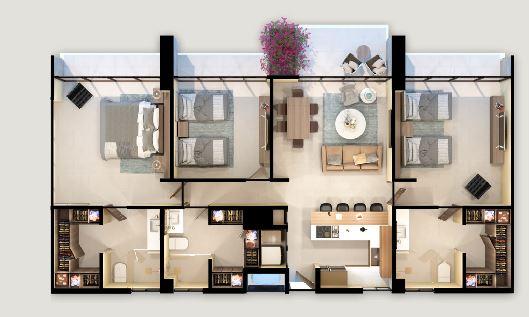 3 bedroom 3 bathroom condominium, first floor is parking so this is the first unit in the second floor, close to the club house with some ocean and panoramic view, all the areas have view, modern and new concept, 15% down, 15% in 12 monthy payments, and 70% delivery