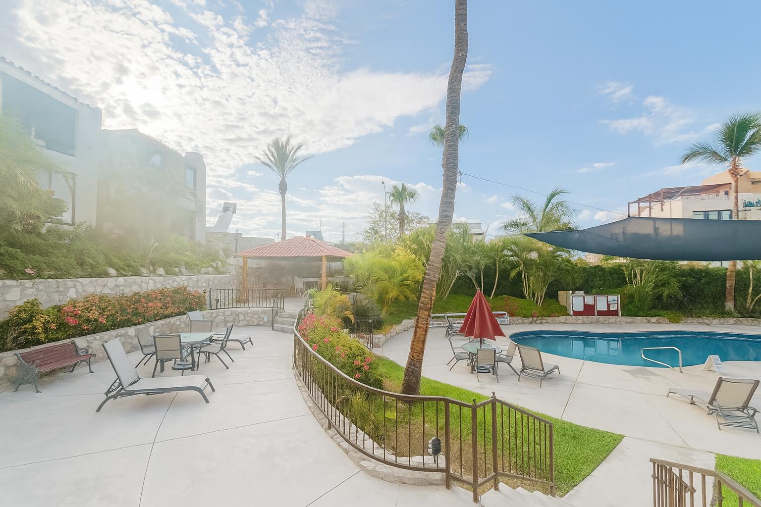 Step into this beautifully furnished 1-bedroom, 1-bathroom condo located in the desirable Laguna Vista community in San Jose del Cabo. Enjoy the comfort of modern air conditioning throughout, a convenient in-unit laundry center, and a dedicated parking space.Relax by the shared pool and palapa area, perfect for soaking up the Baja sun or entertaining friends.