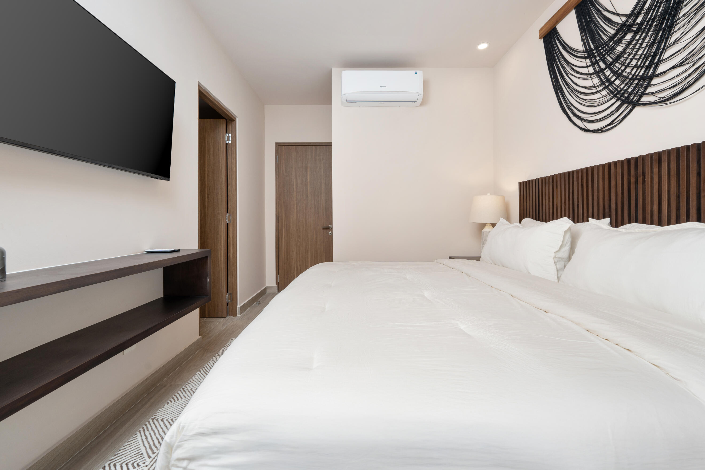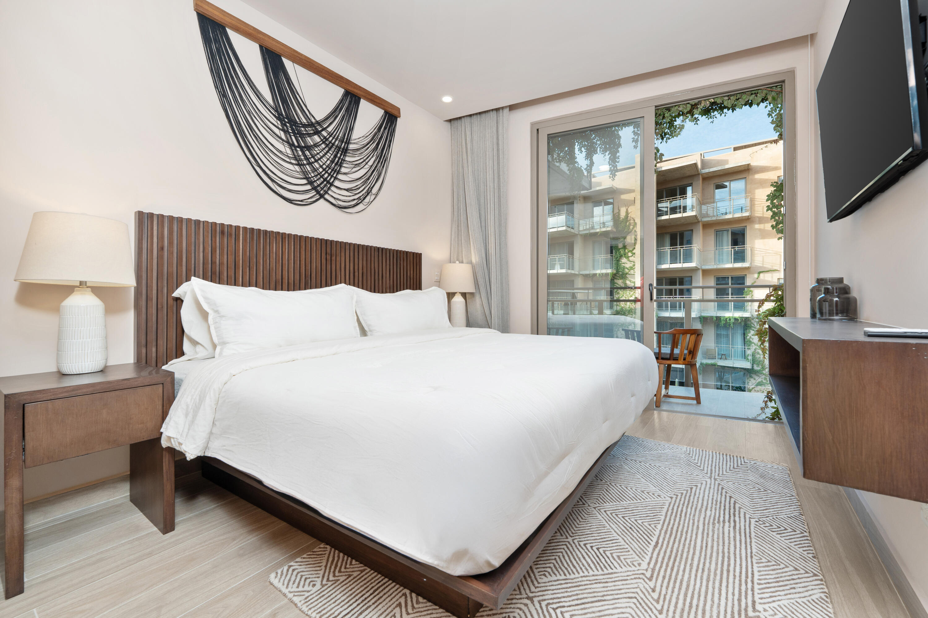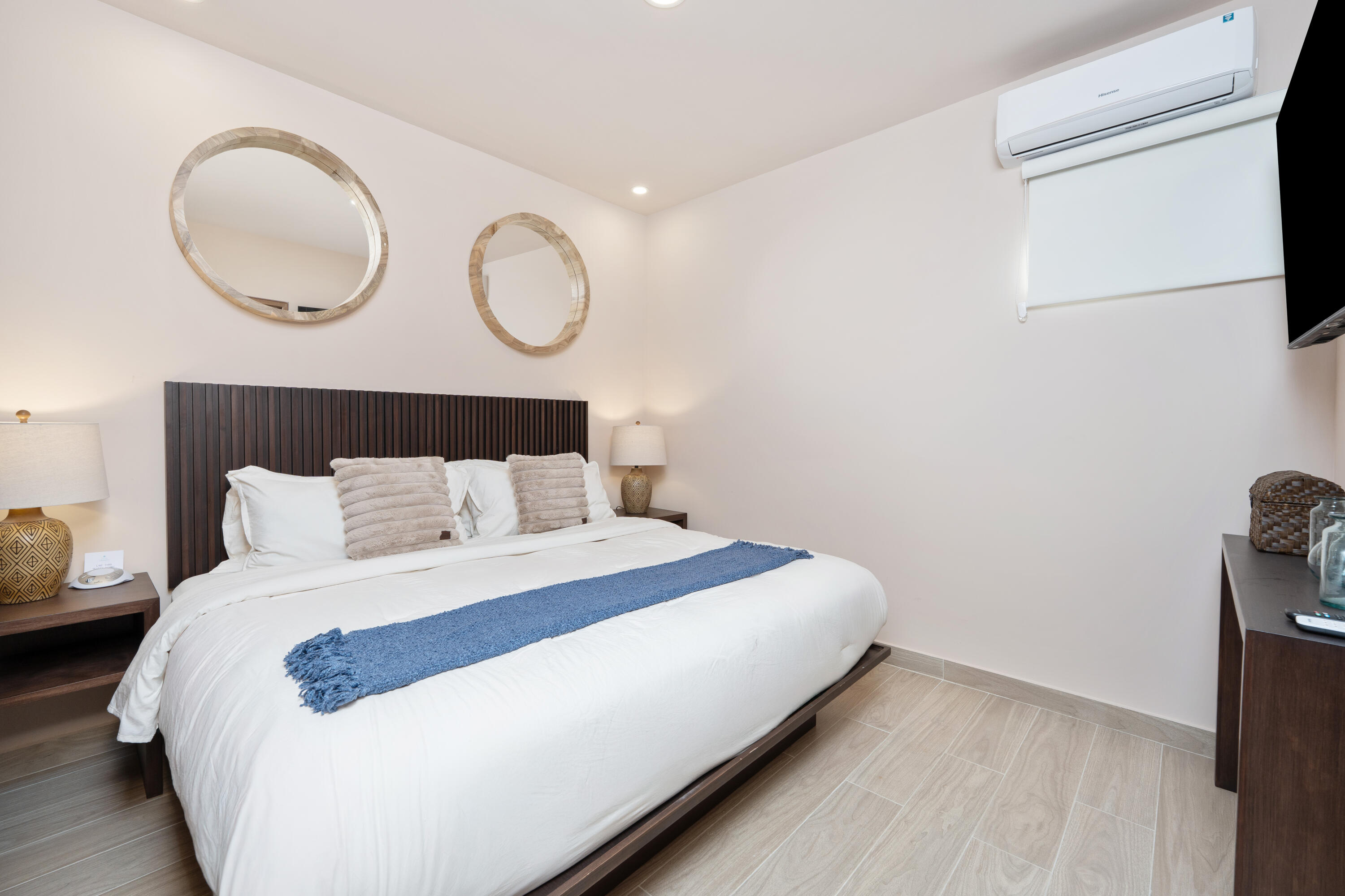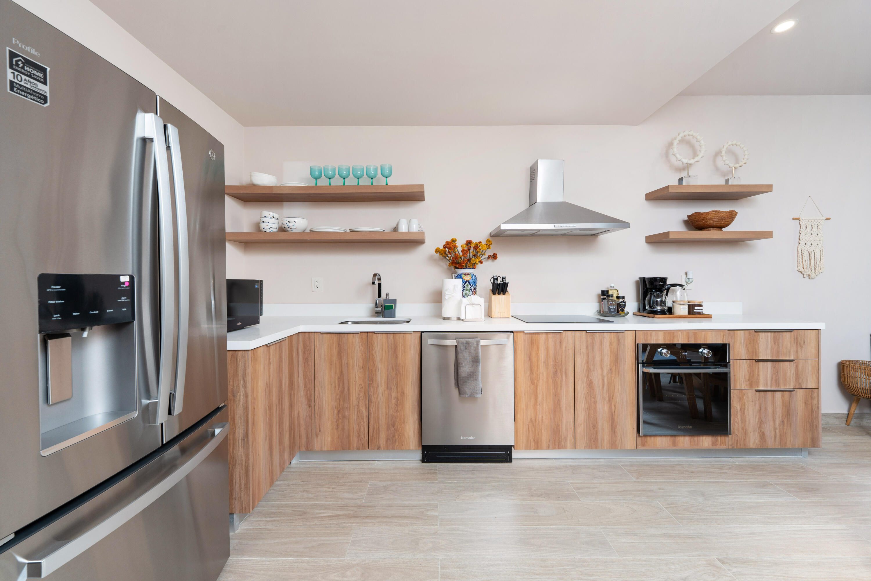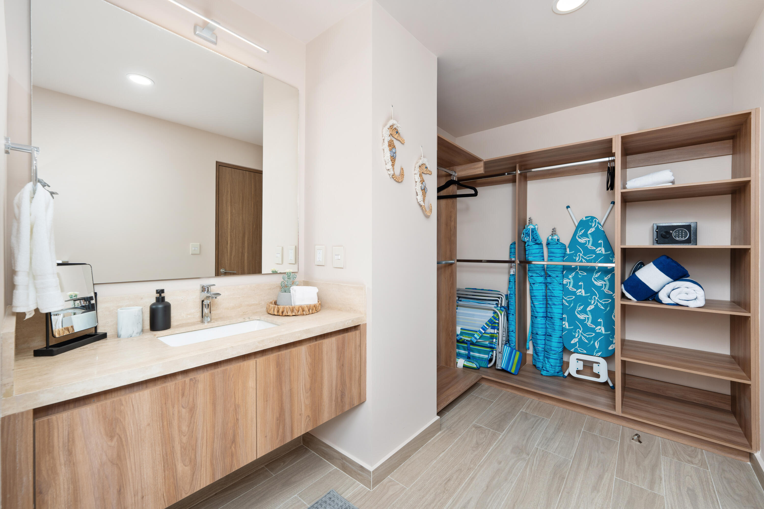 This contemporary 99 m condo in Cabo San Lucas features an efficient layout with 2 bedrooms and 2 bathrooms. The open-concept living area combines the kitchen, dining, and living spaces, creating a seamless flow. The kitchen boasts wood cabinetry, stainless steel appliances, and sleek countertops. Both bedrooms offer ample space, with the primary bedroom measuring 11.1 m. The bathrooms are modern and well-appointed. A balcony provides outdoor living space with scenic views. The interior design showcases a neutral color, creating a serene coastal ambiance. High-quality finishes and thoughtful details throughout enhance the overall aesthetic and functionality of this compact yet stylish residence.