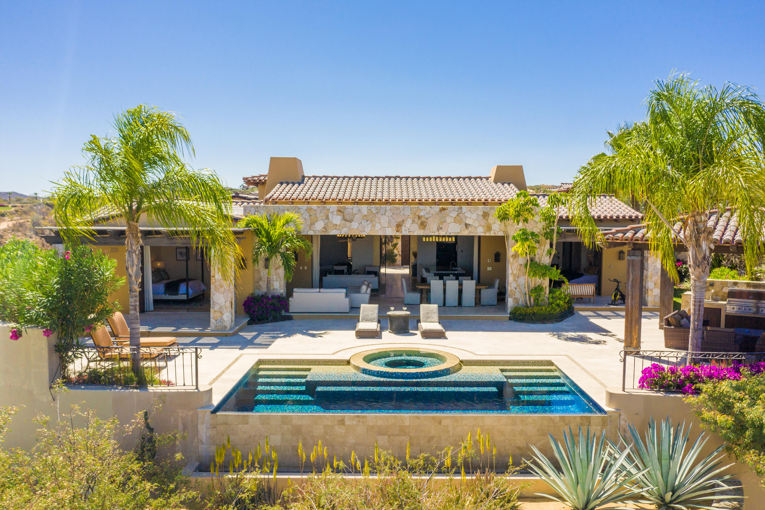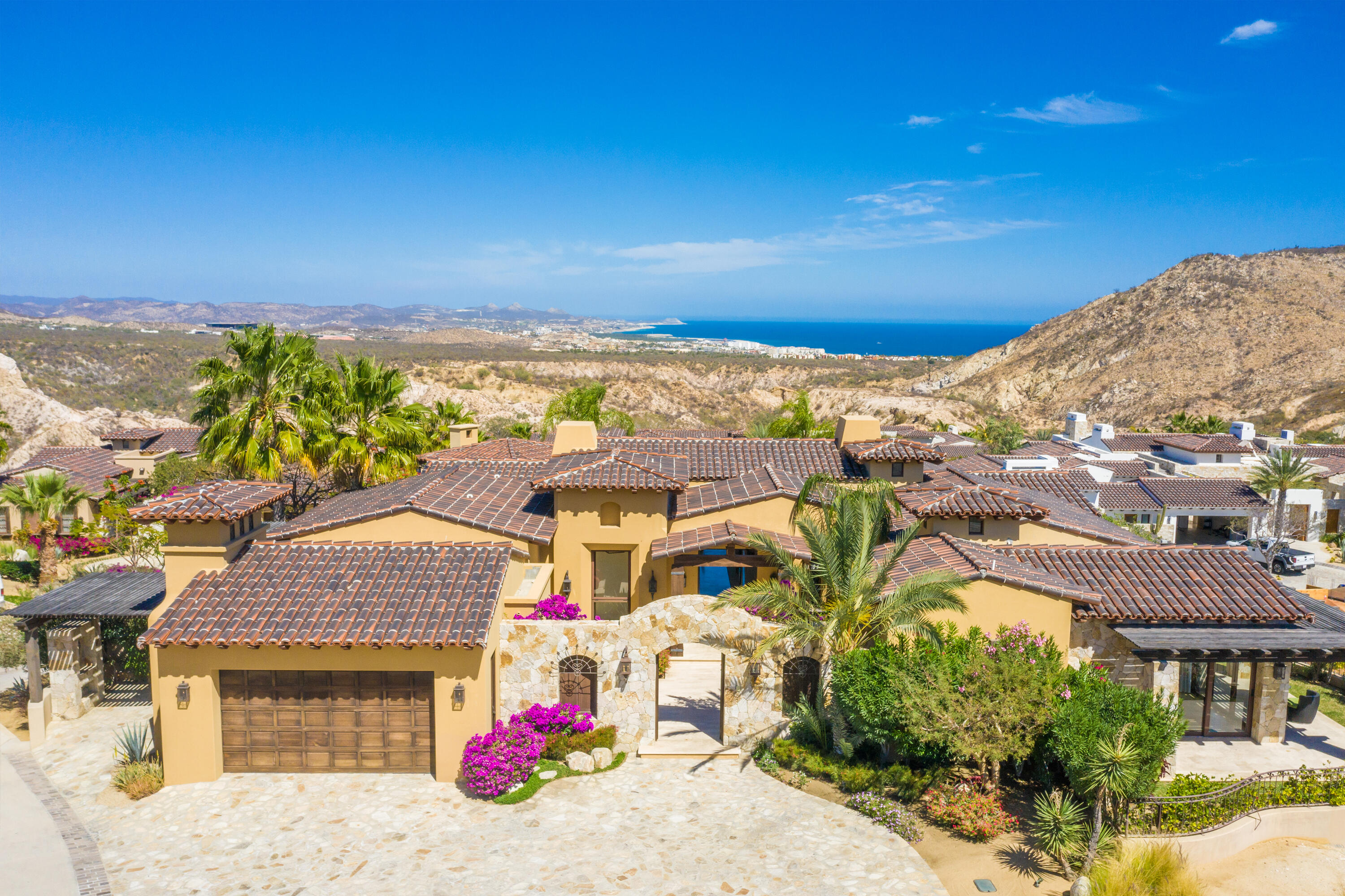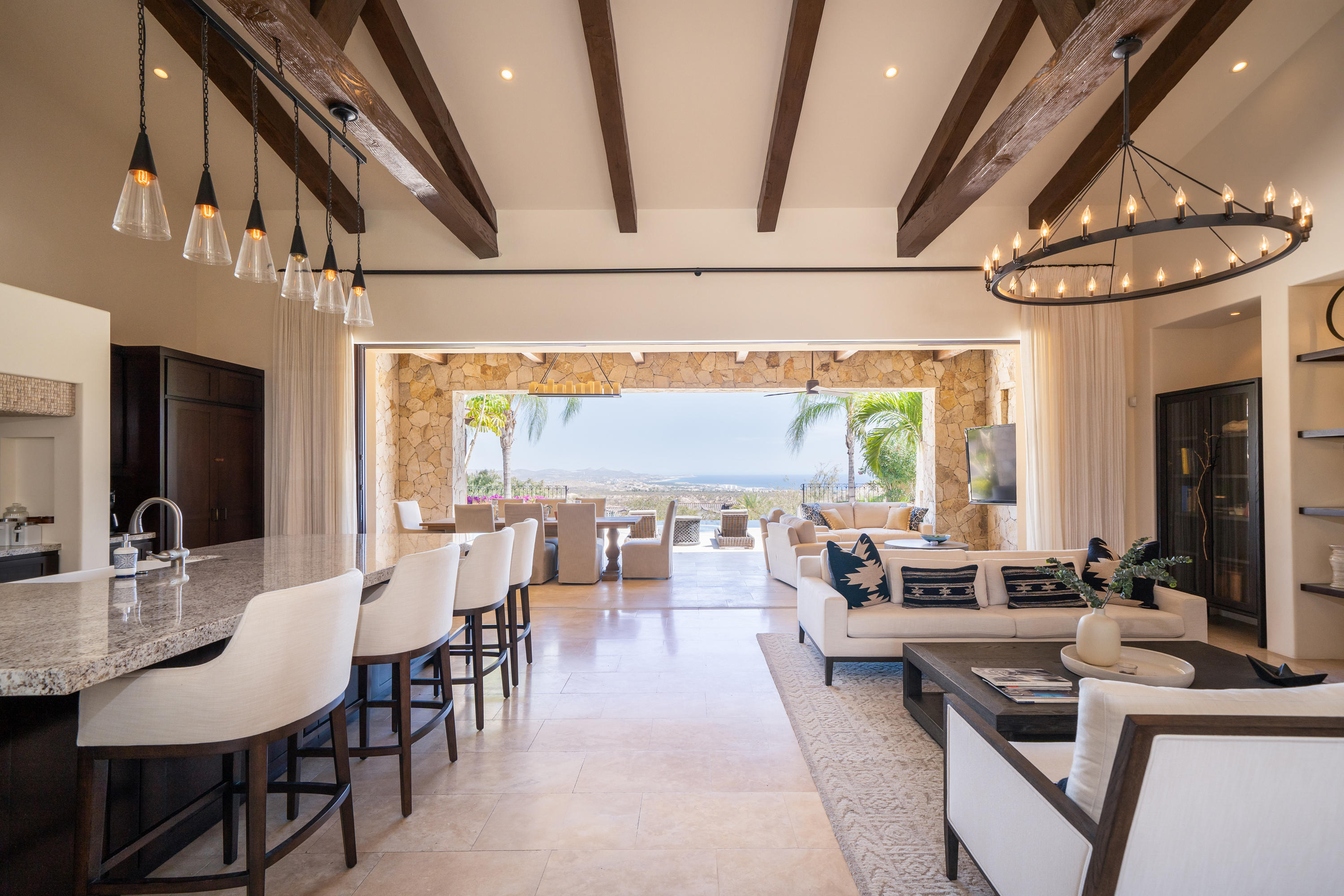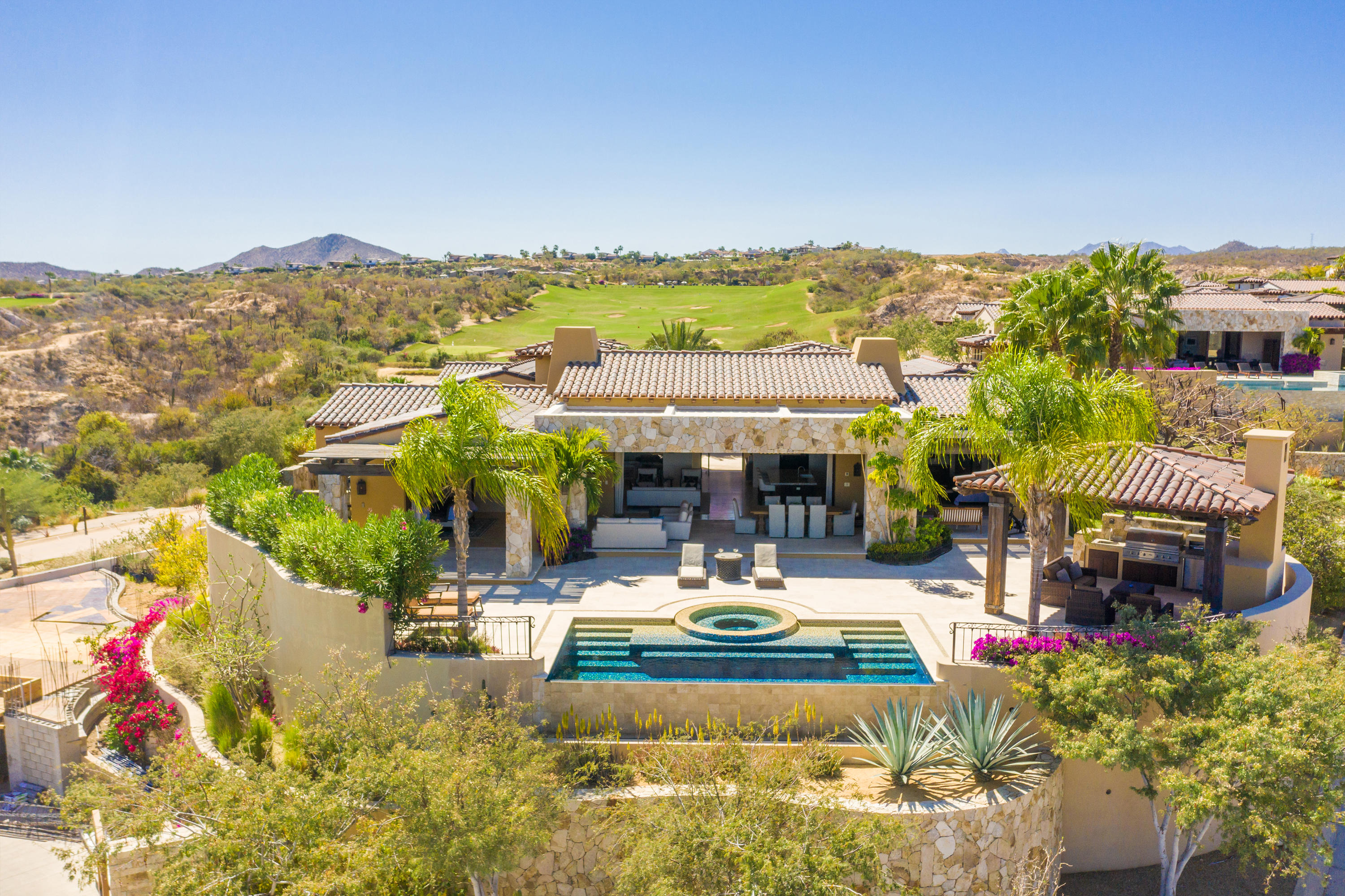 Magnificent Turnkey single level home perched high on the canyon ridgeline offering stunning ocean and city light views. Located in the highly desirable neighborhood of Las Canadas in Querencia, this modern home is just a short walk or golf cart ride from the Q-Club Village which offers the world class Tom Fazio Golf course, Spa, Fitness Facility, Restaurants, Bar, Pools, Tennis Courts, and children’s activities. This home features an open floor plan with indoor/outdoor living concept, cascading water feature and 2 gas fireplaces perfect for entertaining. The spacious great room extends into the gourmet kitchen with views of the infinity pool and Sea of Cortez. The master suite offers indoor/outdoor showers and a standing soaker tub perfect for relation.