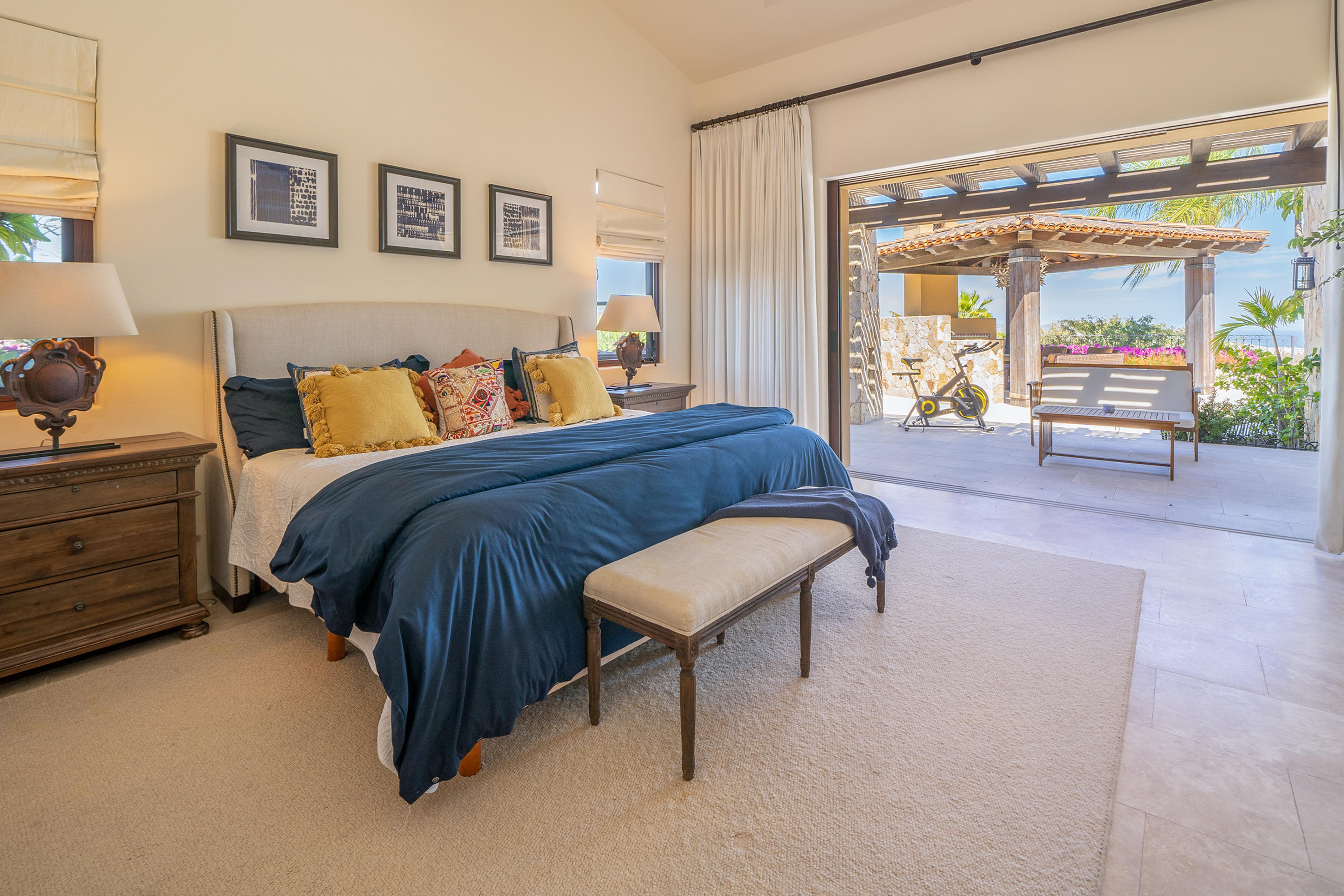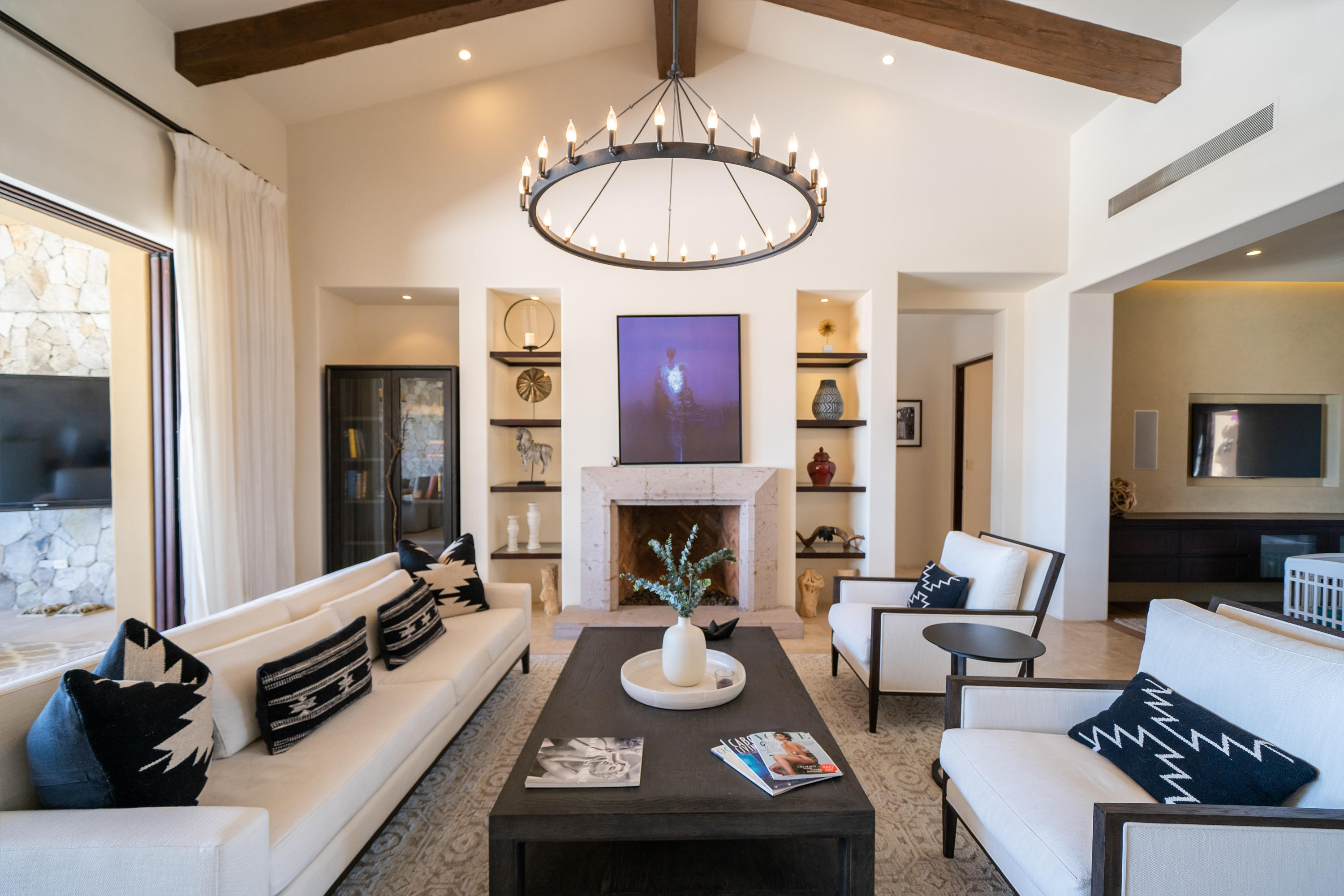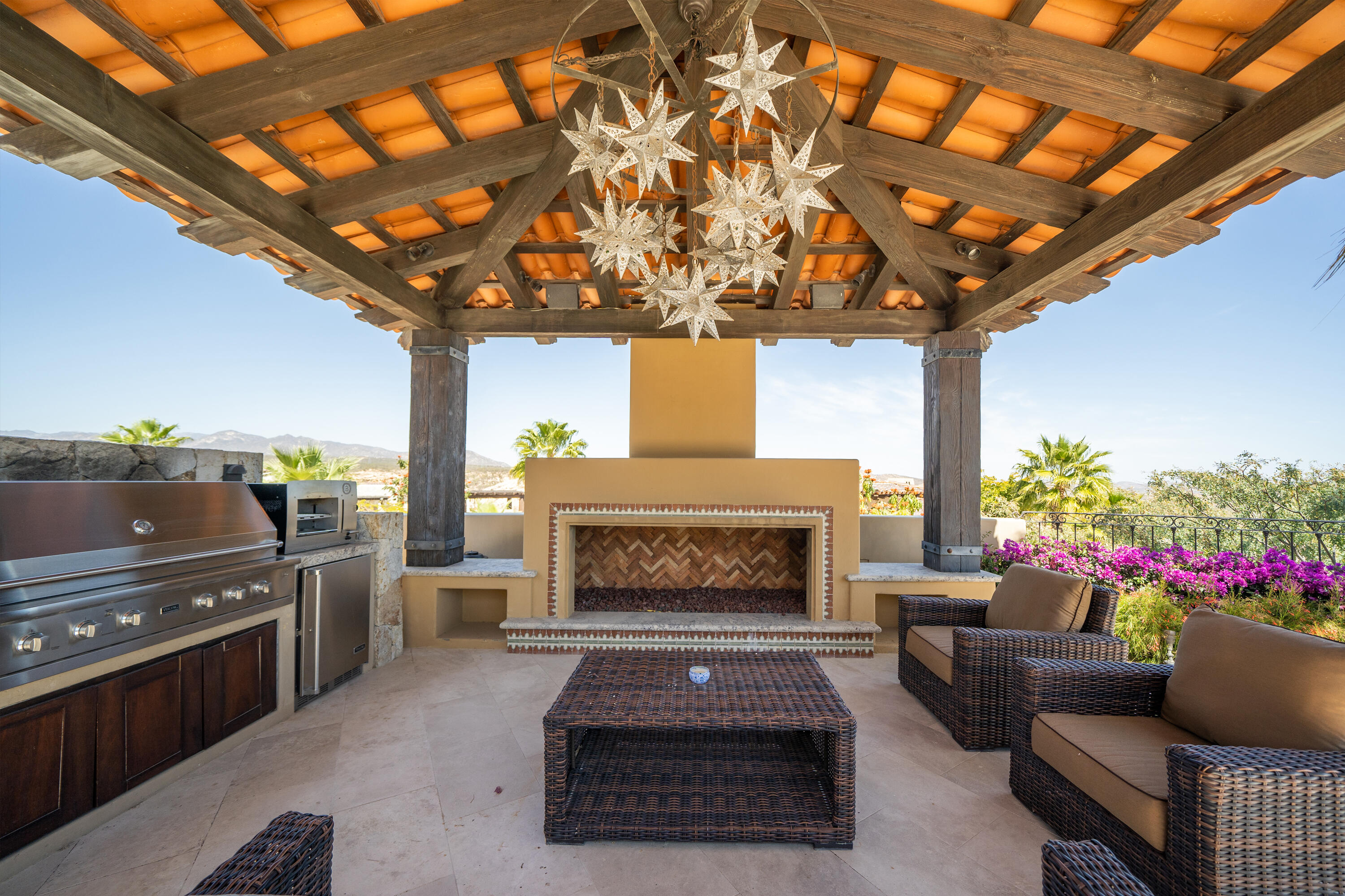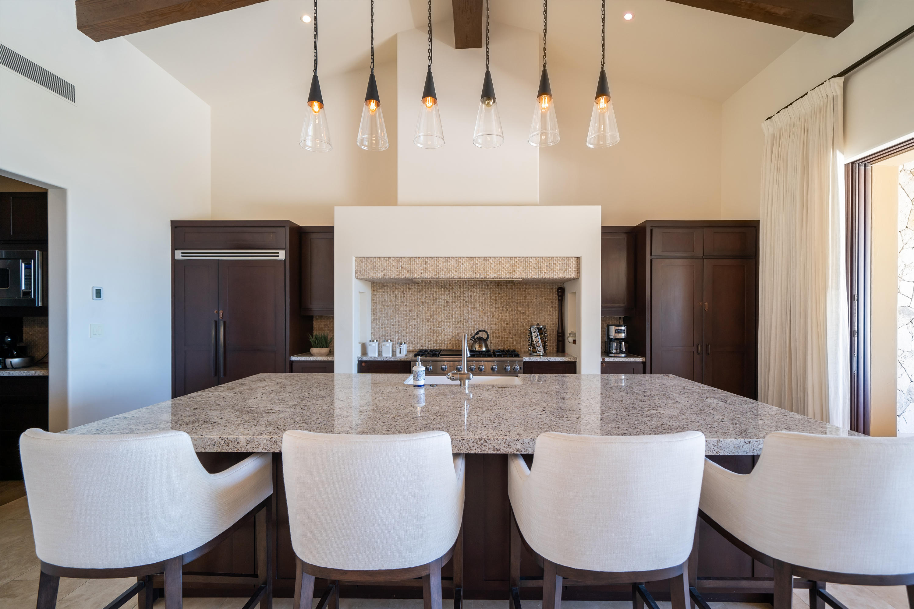 Magnificent Turnkey single level home perched high on the canyon ridgeline offering stunning ocean and city light views. Located in the highly desirable neighborhood of Las Canadas in Querencia, this modern home is just a short walk or golf cart ride from the Q-Club Village which offers the world class Tom Fazio Golf course, Spa, Fitness Facility, Restaurants, Bar, Pools, Tennis Courts, and children’s activities. This home features an open floor plan with indoor/outdoor living concept, cascading water feature and 2 gas fireplaces perfect for entertaining. The spacious great room extends into the gourmet kitchen with views of the infinity pool and Sea of Cortez. The master suite offers indoor/outdoor showers and a standing soaker tub perfect for relation.