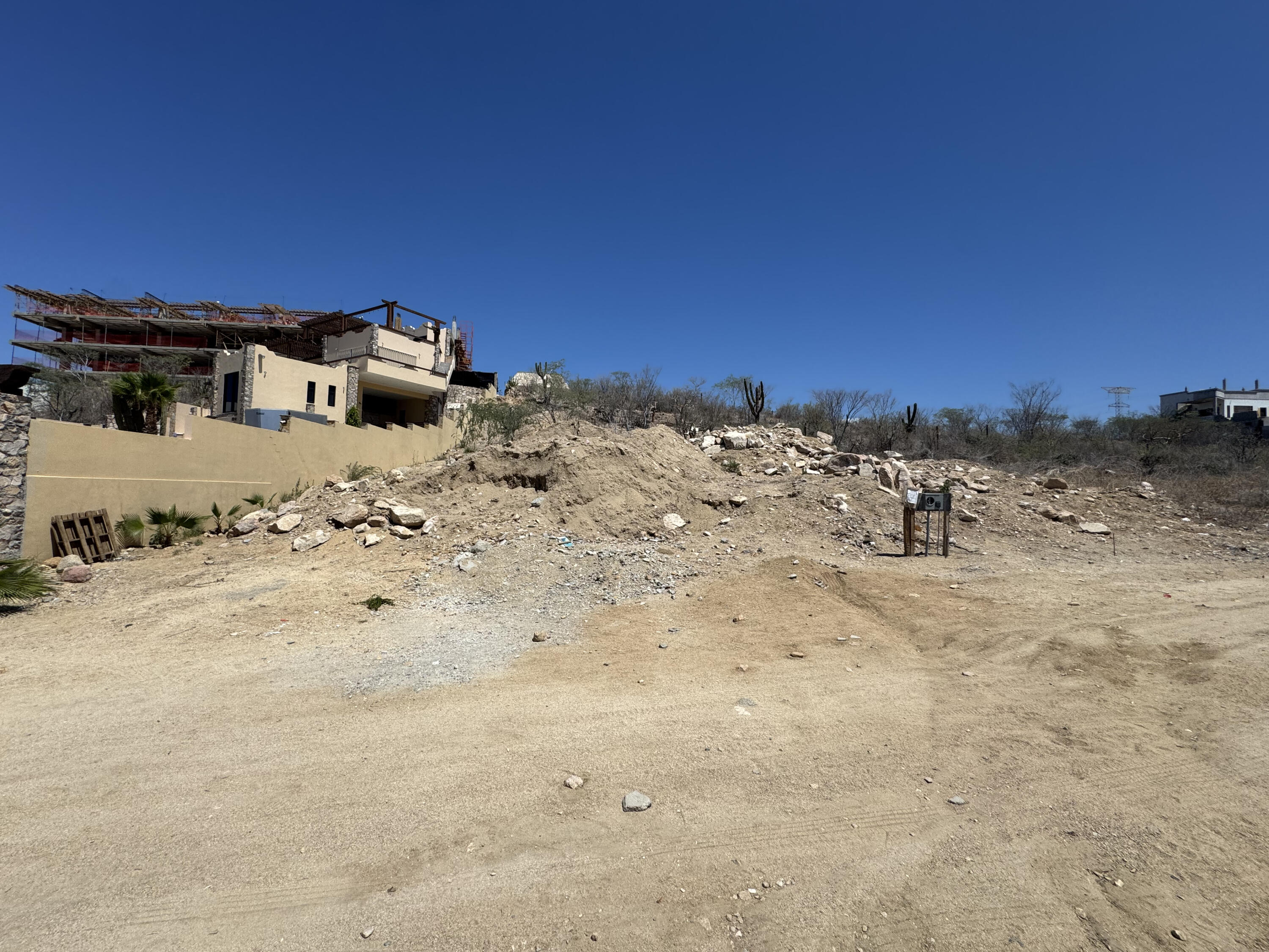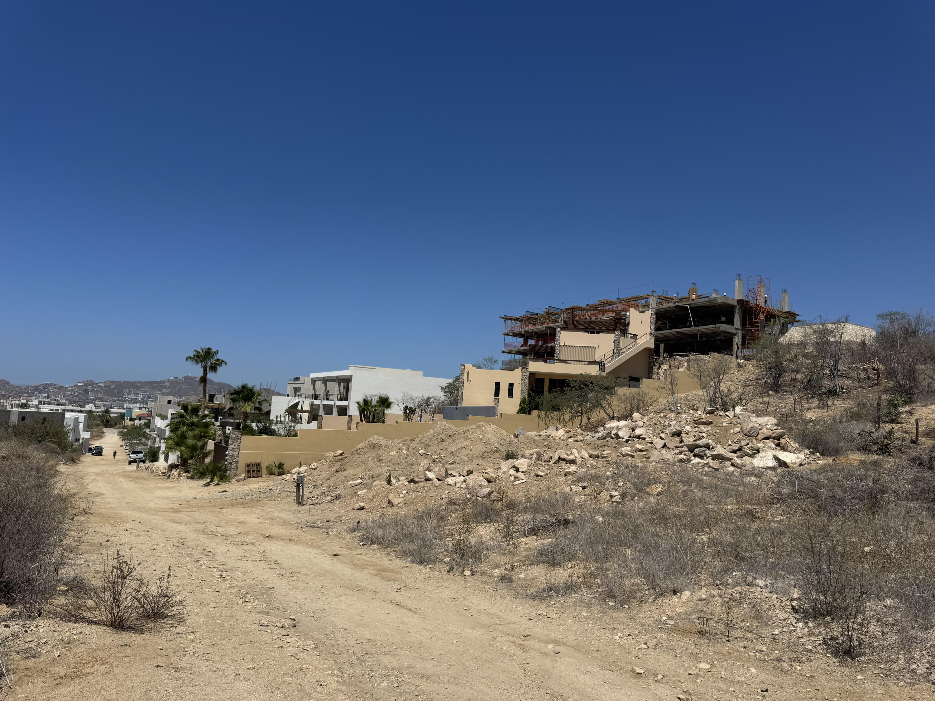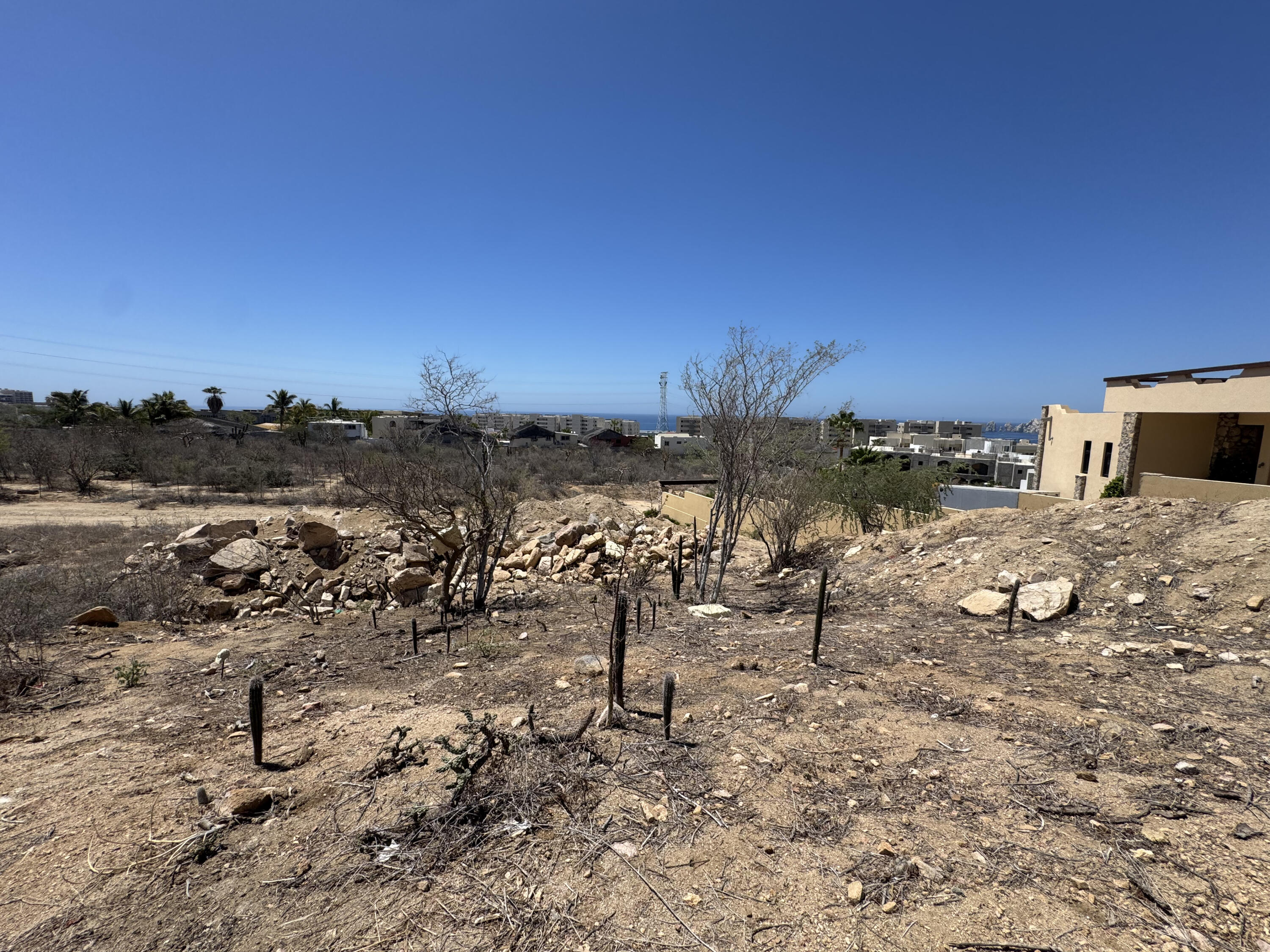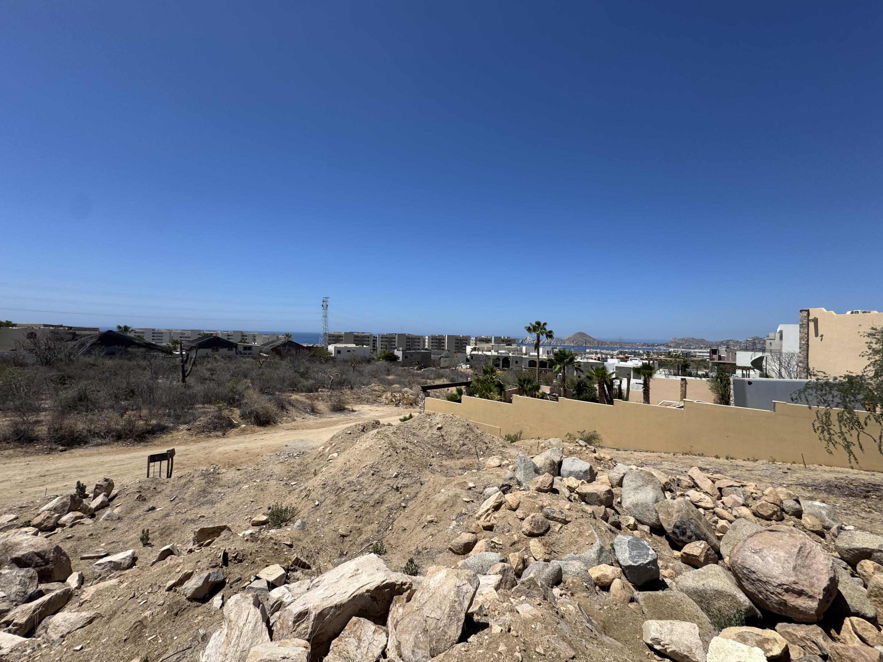 Selling price in pesos $7,505,000 MXN. Discover the perfect canvas for your future home or investment in the prestigious El Tezal area of Cabo San Lucas. This elevated lot sits on a gentle hillside, offering captivating views of the city and surrounding natural beauty.