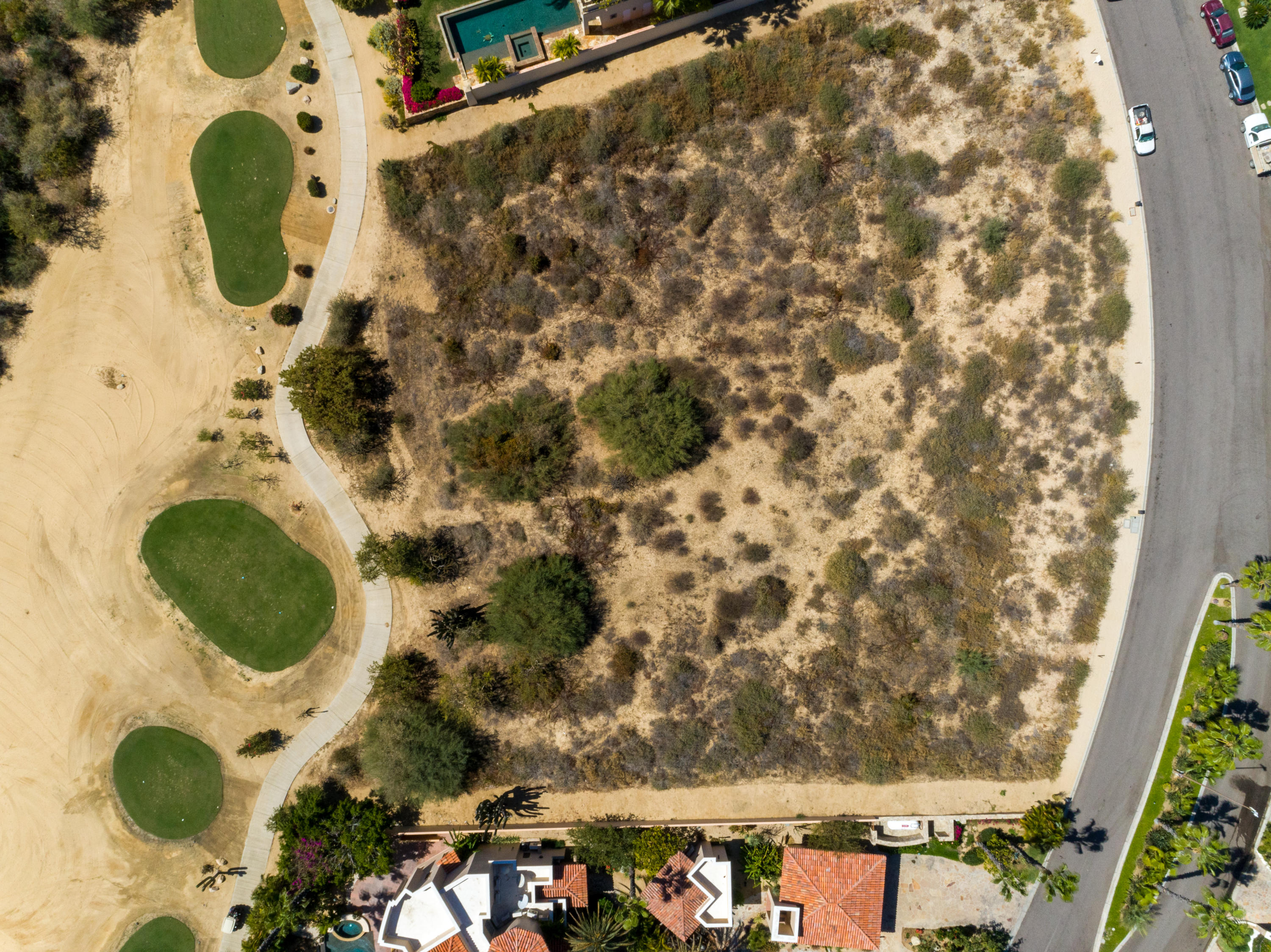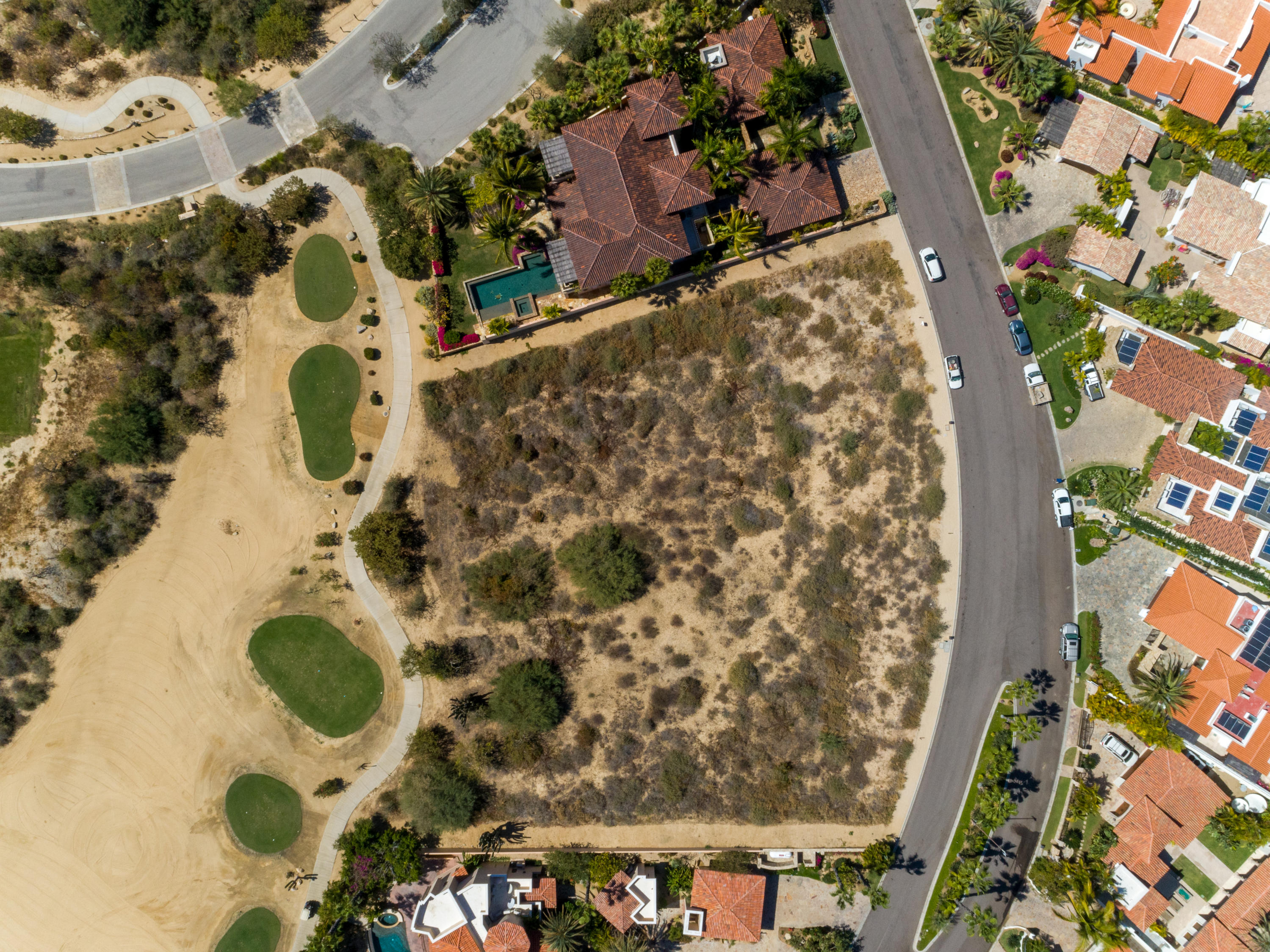 Flat lot located off tee box, great views and easy to build.