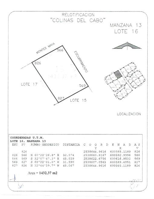 NEW LISTING!Rolling Hills Lot 16, Blk 13.1432.37m2 (15418 sf or more than 1/3 acre) of 80% flat, easy to build lot with GORGEOUS VIEWS. See the Pacific and the Sea of Cortes. Just 10 minutes north of the hustle and bustle of cabo with 24 hour security 7 days a week. Owner will accept some financing. WOW. Country living at it’s best. Elevated Lot with protected views.