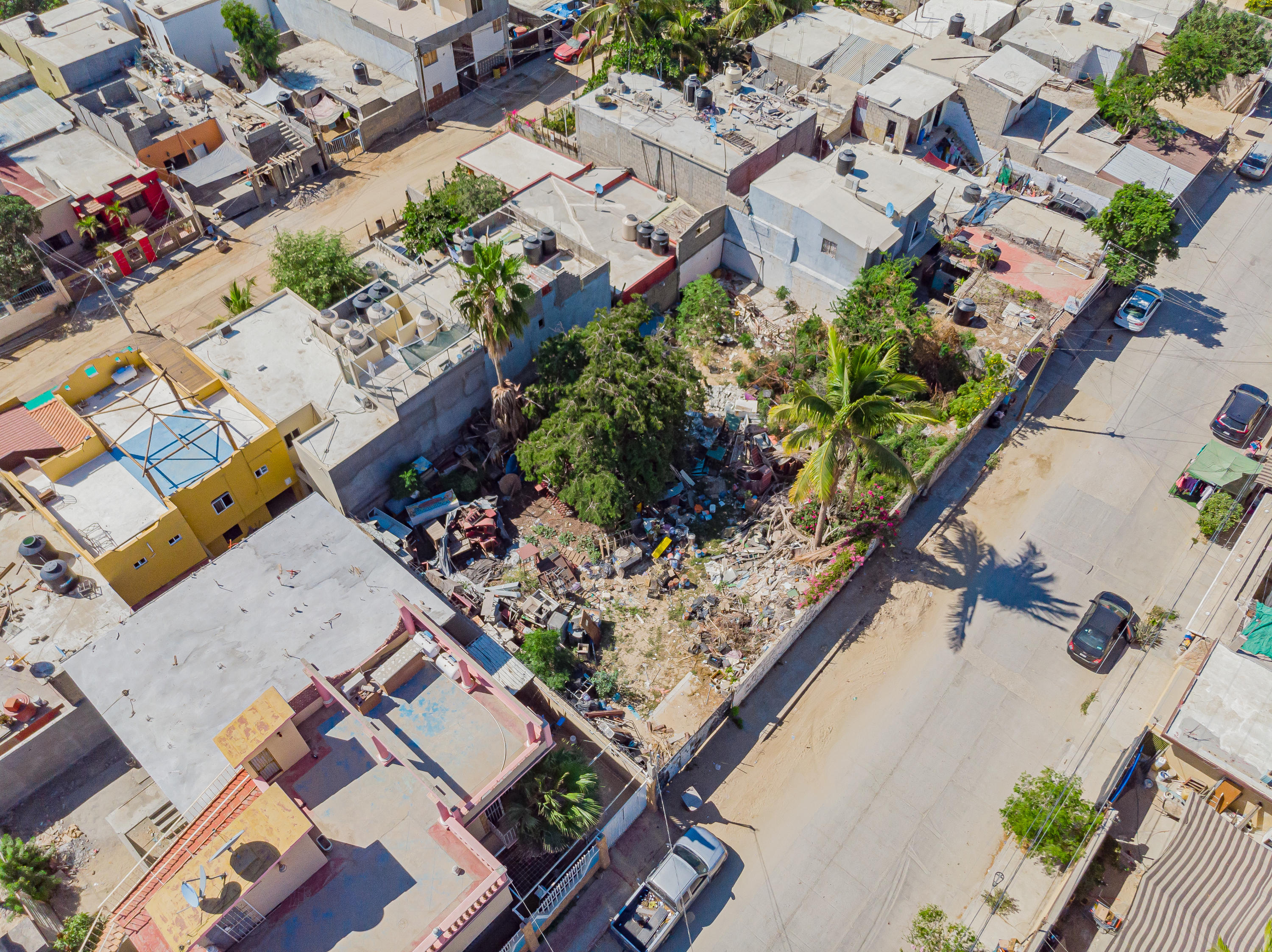Flat, surrounded by a perimeter wall in a residential zone, with potential for small businesses or condos. Paved access and services on place. Close to supermarkets, public parks and the Todos Santos high way.