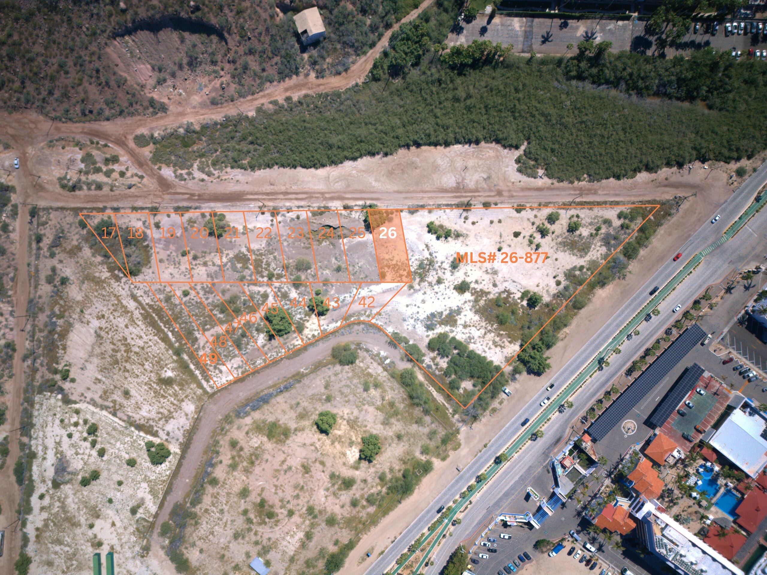 17 individually offered lots in the Lomas de Palmira area, positioned along the highly desirable La Paz-Pichilingue Scenic Highway corridor (Km 2.5) near the marina and the waterfront hotel zone–an exceptional location to build a residence or launch a development project just minutes from the La Paz Malecon.This is a tourism-residential growth zone recognized for its strategic connectivity: quick access back into central La Paz, easy reach to the marina lifestyle, and direct route toward La Paz’s most iconic coastal areas such as Balandra and El Tecolote–a combination that supports strong end-user demand and long-term investment potential.Lot sizes range from 294.61 m to 601.40 m, providing flexible options for custom homes, rental-oriented builds, or phased development.