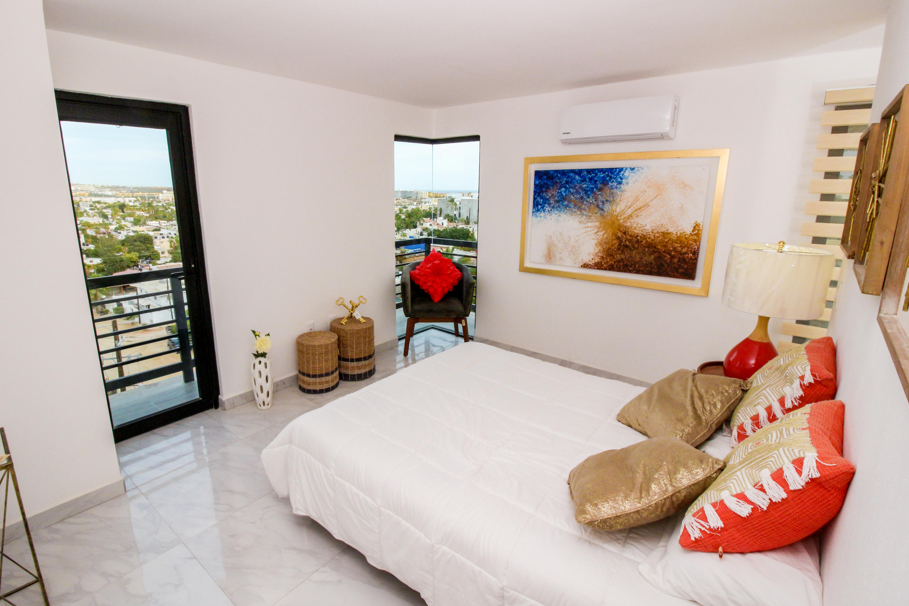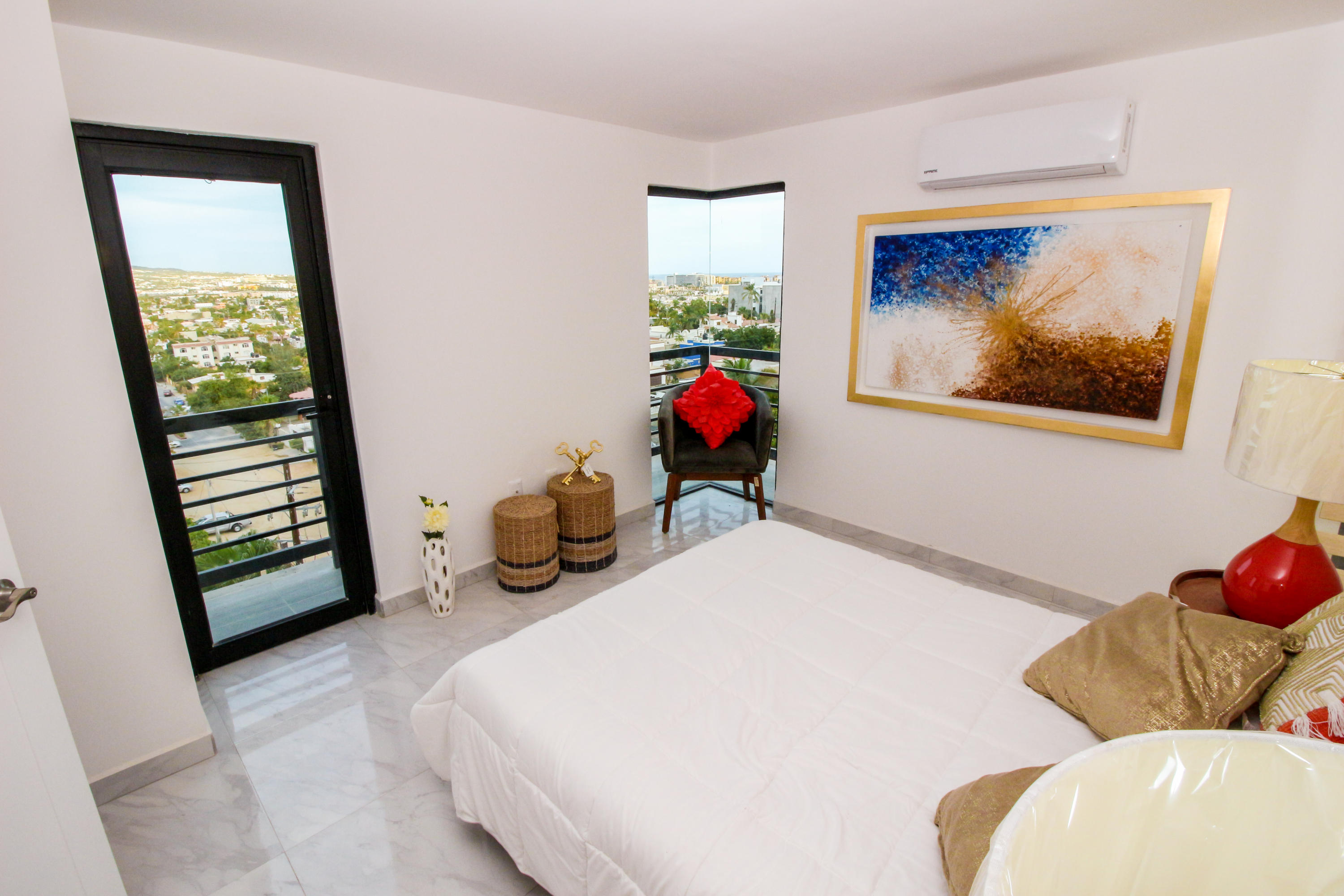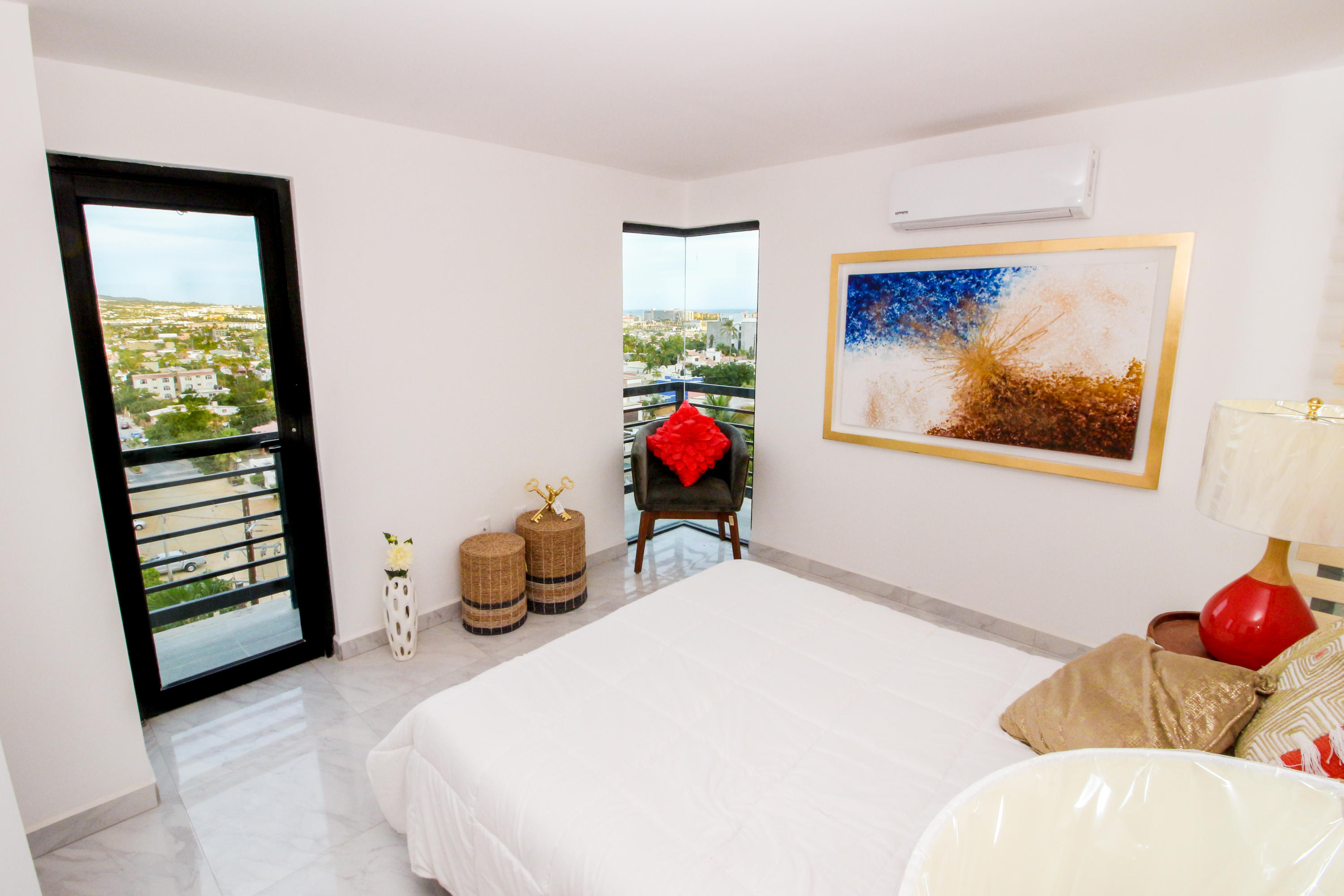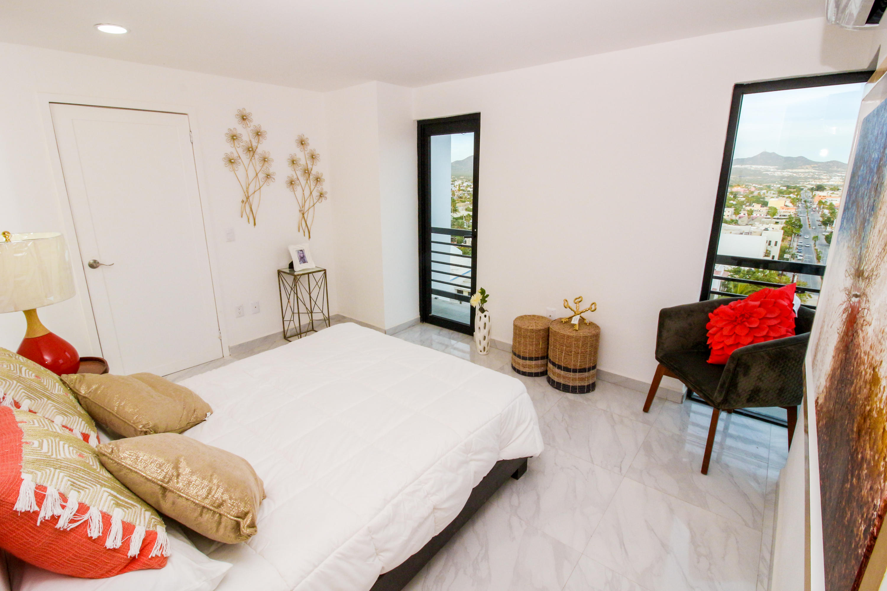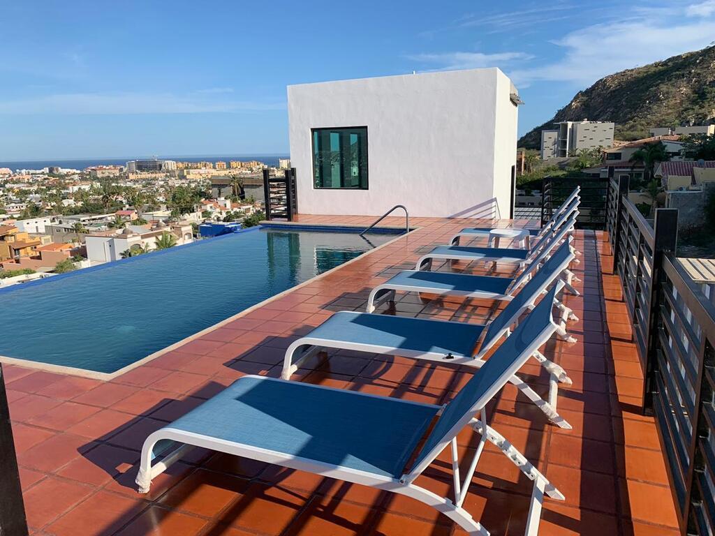 *Location * Location * Location* Morgan Residences & Boutique Hotel is perfectly located only a 3/4 of a mile away from the famous Cabo San Lucas Marina- Cabos entertaining Downtown & San Lucas white Sand local Beaches. This is by *F A R* the *VERY BEST* Corner Condo at Morgan Residences & Boutique Hotels with so much natural Sunlight entering this outstanding Condo. You will be stunned with its amazing Ocean and Mountain views from ALL Bedrooms, Living room & its gorgeous Kitchen. This breathtaking Condo is located on the 5th floor. You will have to see it to believe it! 240 degree views of the City of Cabo San Lucas with Blue water views from the rooftop with a fantastic large Infinity pool. A largely equipped modern Gym, Relaxing sunbathing area with fire pits and BBQ