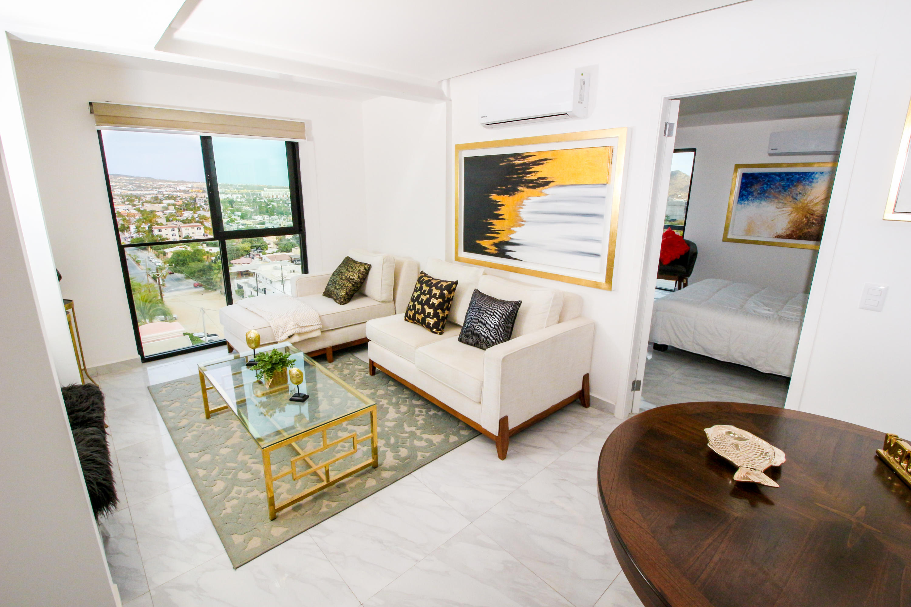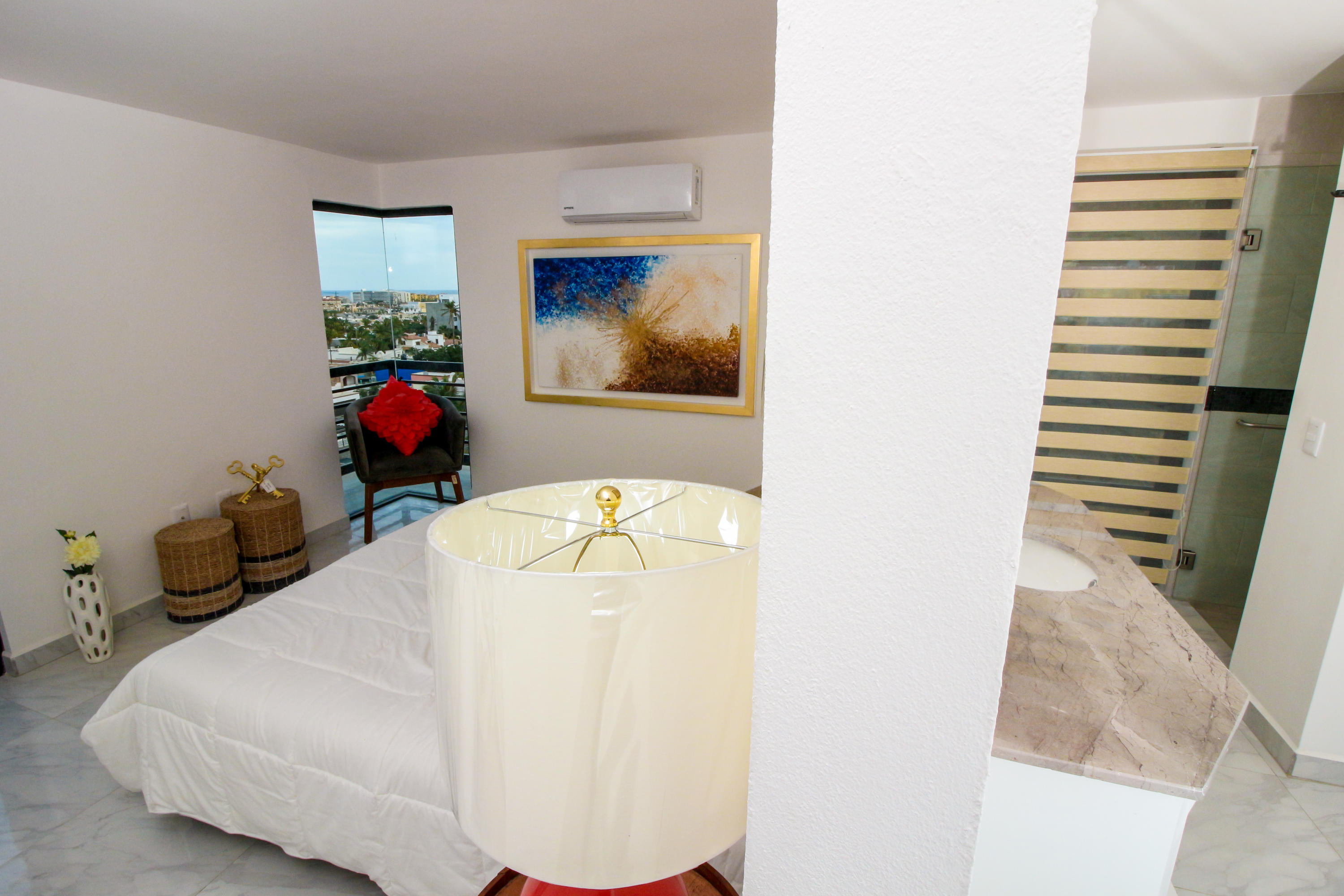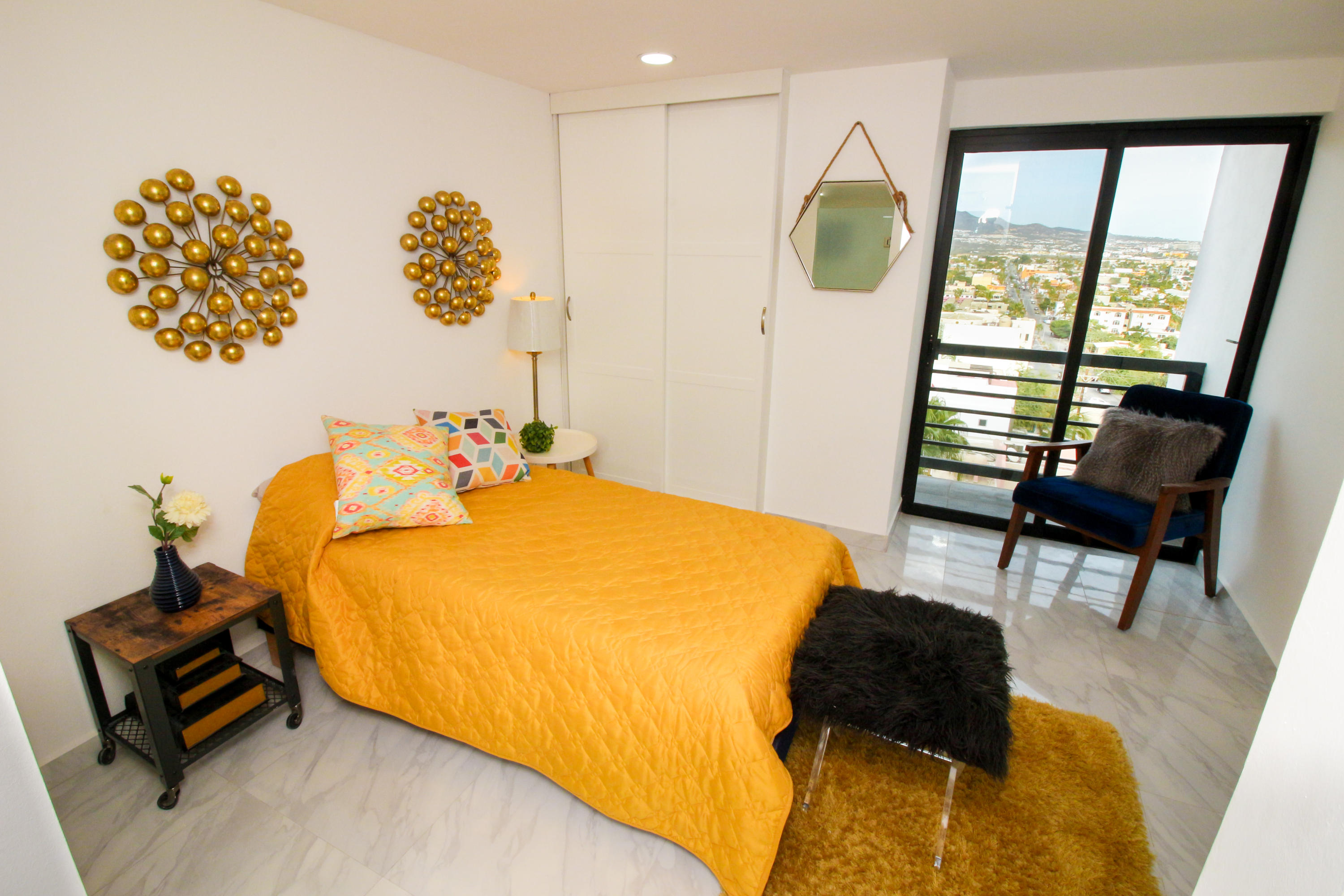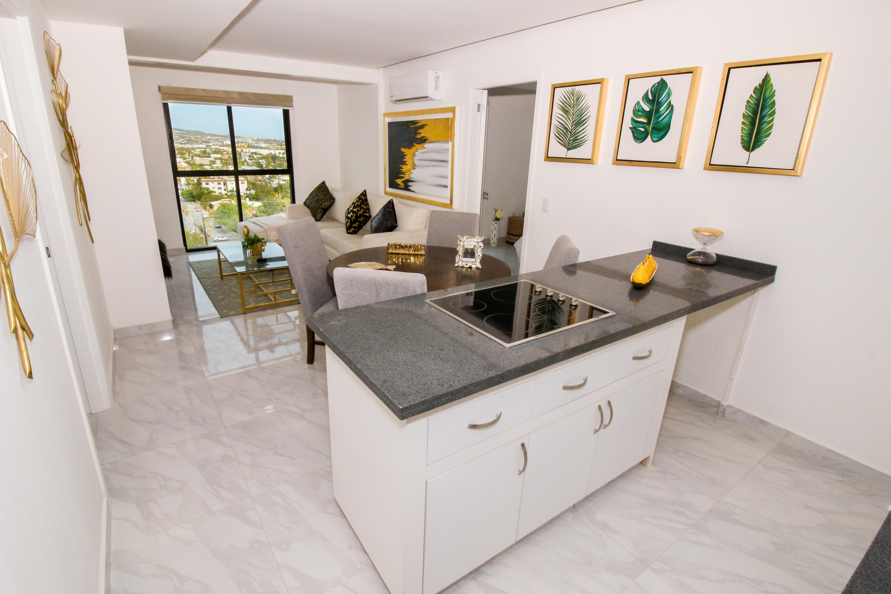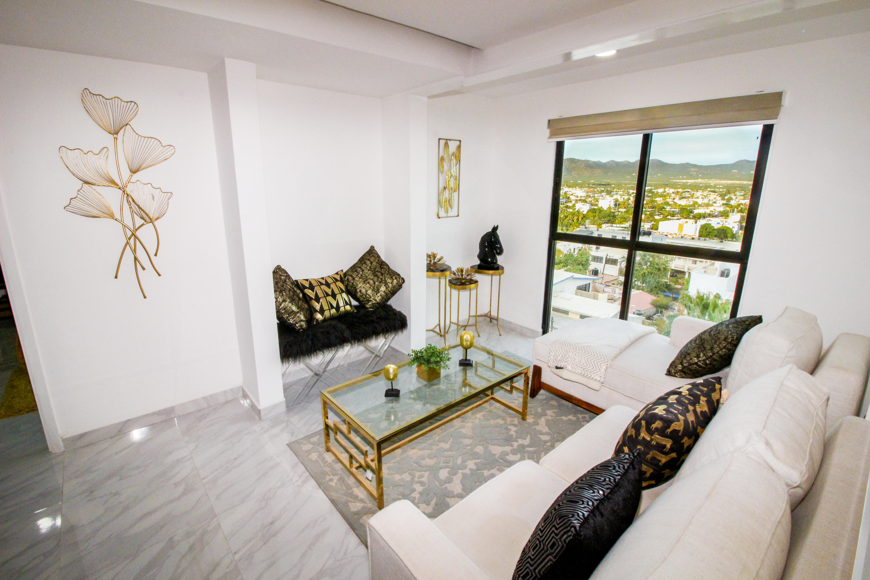 *Location * Location * Location* Morgan Residences & Boutique Hotel is perfectly located only a 3/4 of a mile away from the famous Cabo San Lucas Marina- Cabos entertaining Downtown & San Lucas white Sand local Beaches. This is by *F A R* the *VERY BEST* Corner Condo at Morgan Residences & Boutique Hotels with so much natural Sunlight entering this outstanding Condo. You will be stunned with its amazing Ocean and Mountain views from ALL Bedrooms, Living room & its gorgeous Kitchen. This breathtaking Condo is located on the 5th floor. You will have to see it to believe it! 240 degree views of the City of Cabo San Lucas with Blue water views from the rooftop with a fantastic large Infinity pool. A largely equipped modern Gym, Relaxing sunbathing area with fire pits and BBQ