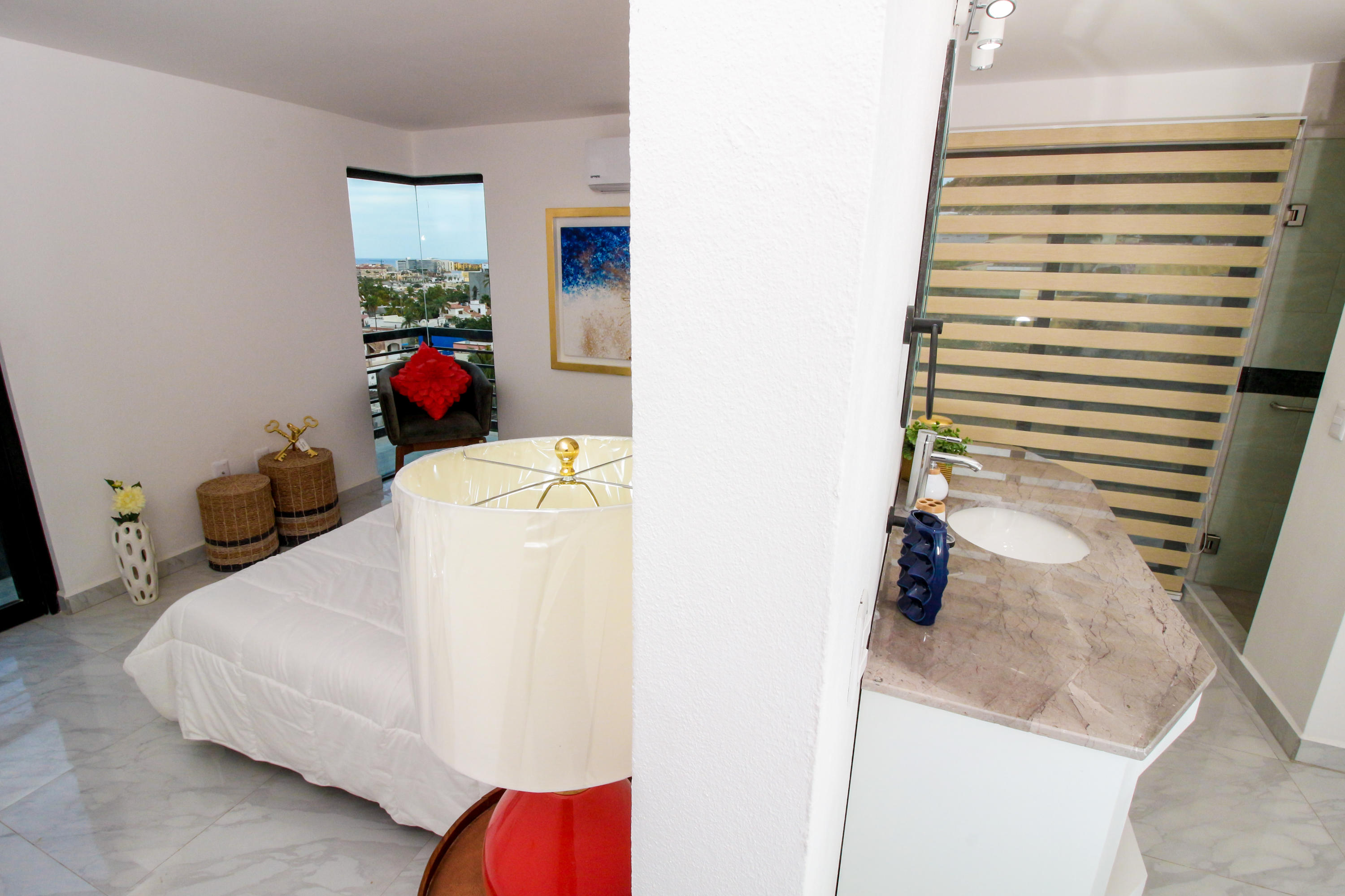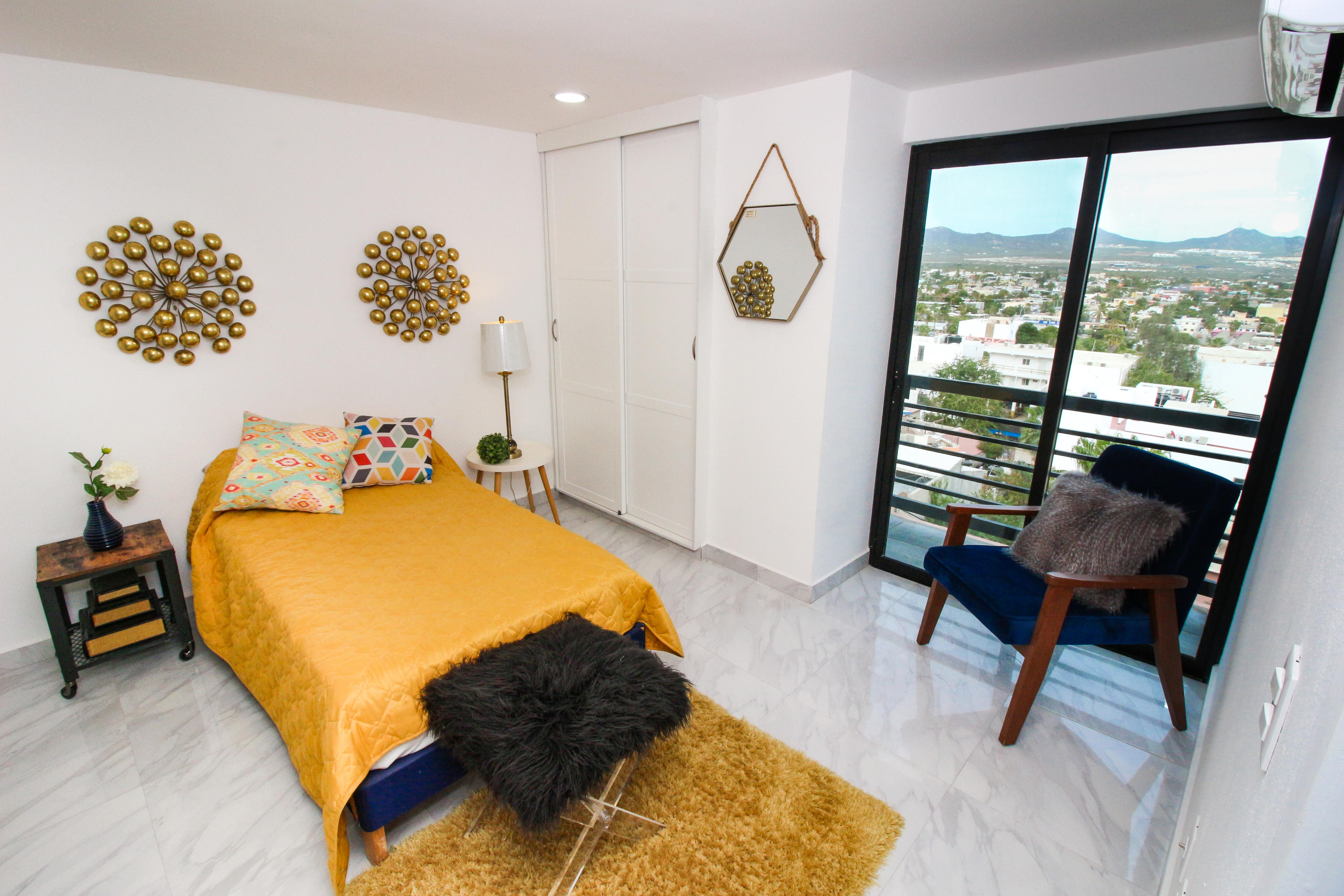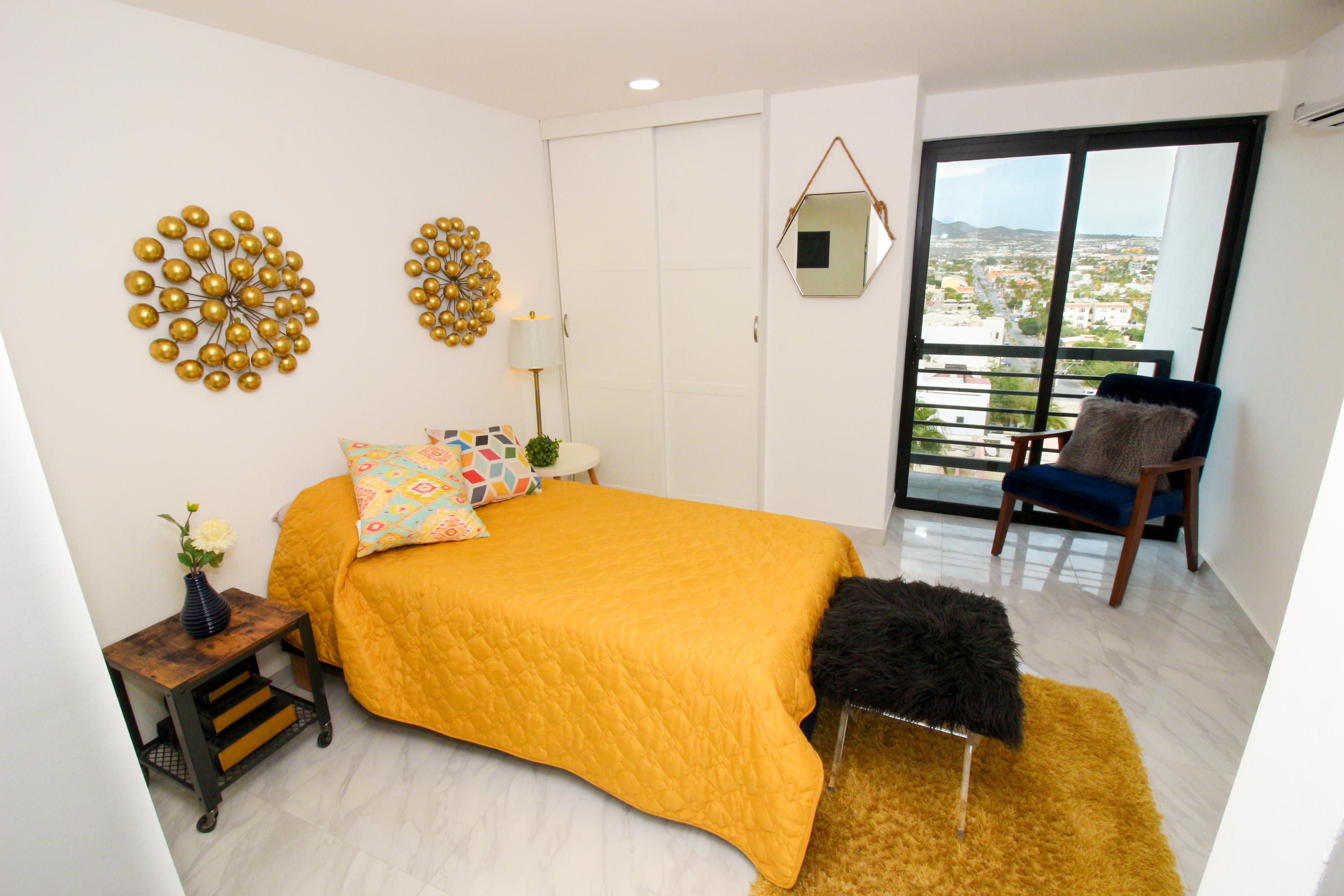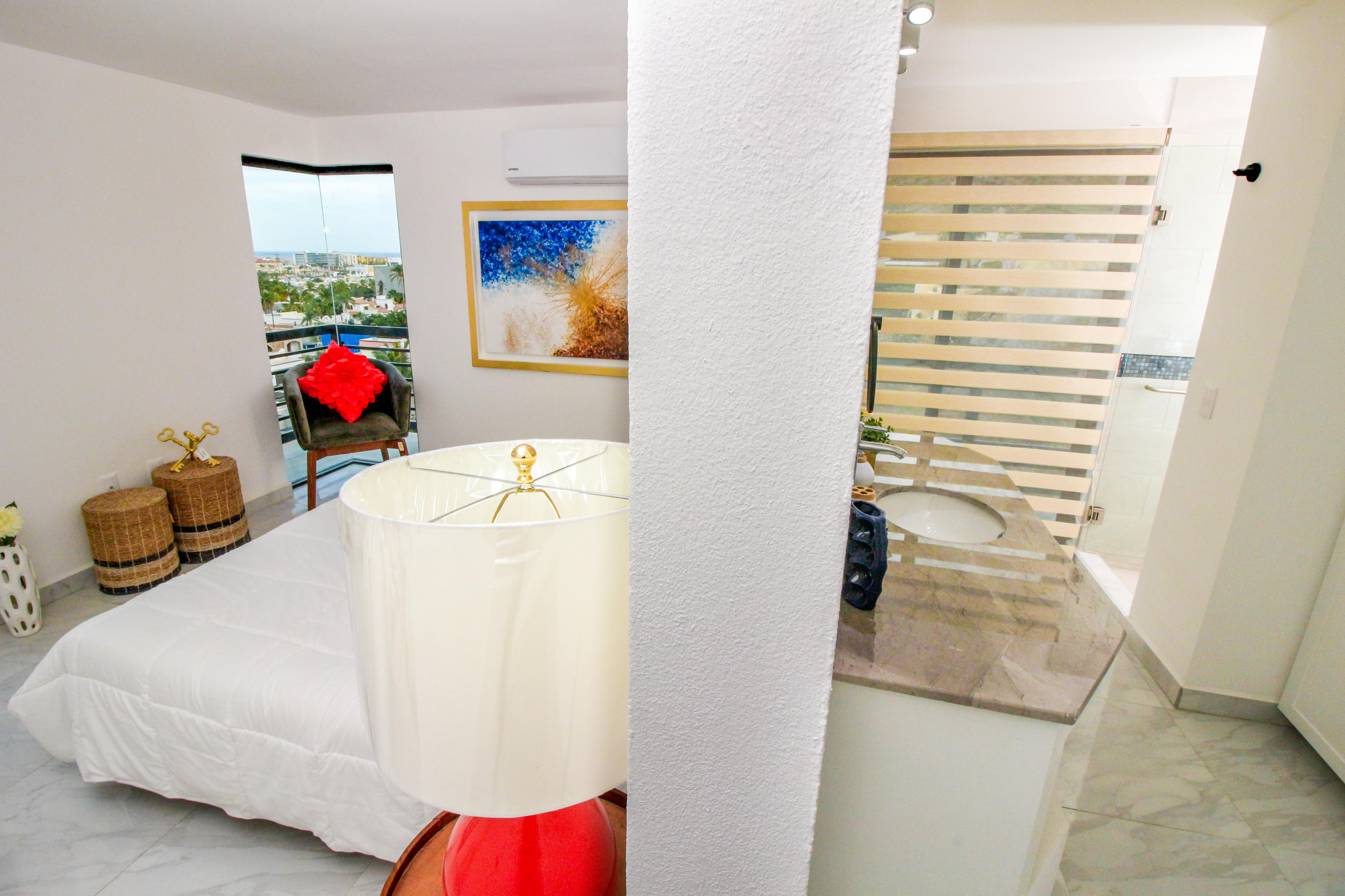 *Location * Location * Location* Morgan Residences & Boutique Hotel is perfectly located only a 3/4 of a mile away from the famous Cabo San Lucas Marina- Cabos entertaining Downtown & San Lucas white Sand local Beaches. This is by *F A R* the *VERY BEST* Corner Condo at Morgan Residences & Boutique Hotels with so much natural Sunlight entering this outstanding Condo. You will be stunned with its amazing Ocean and Mountain views from ALL Bedrooms, Living room & its gorgeous Kitchen. This breathtaking Condo is located on the 5th floor. You will have to see it to believe it! 240 degree views of the City of Cabo San Lucas with Blue water views from the rooftop with a fantastic large Infinity pool. A largely equipped modern Gym, Relaxing sunbathing area with fire pits and BBQ