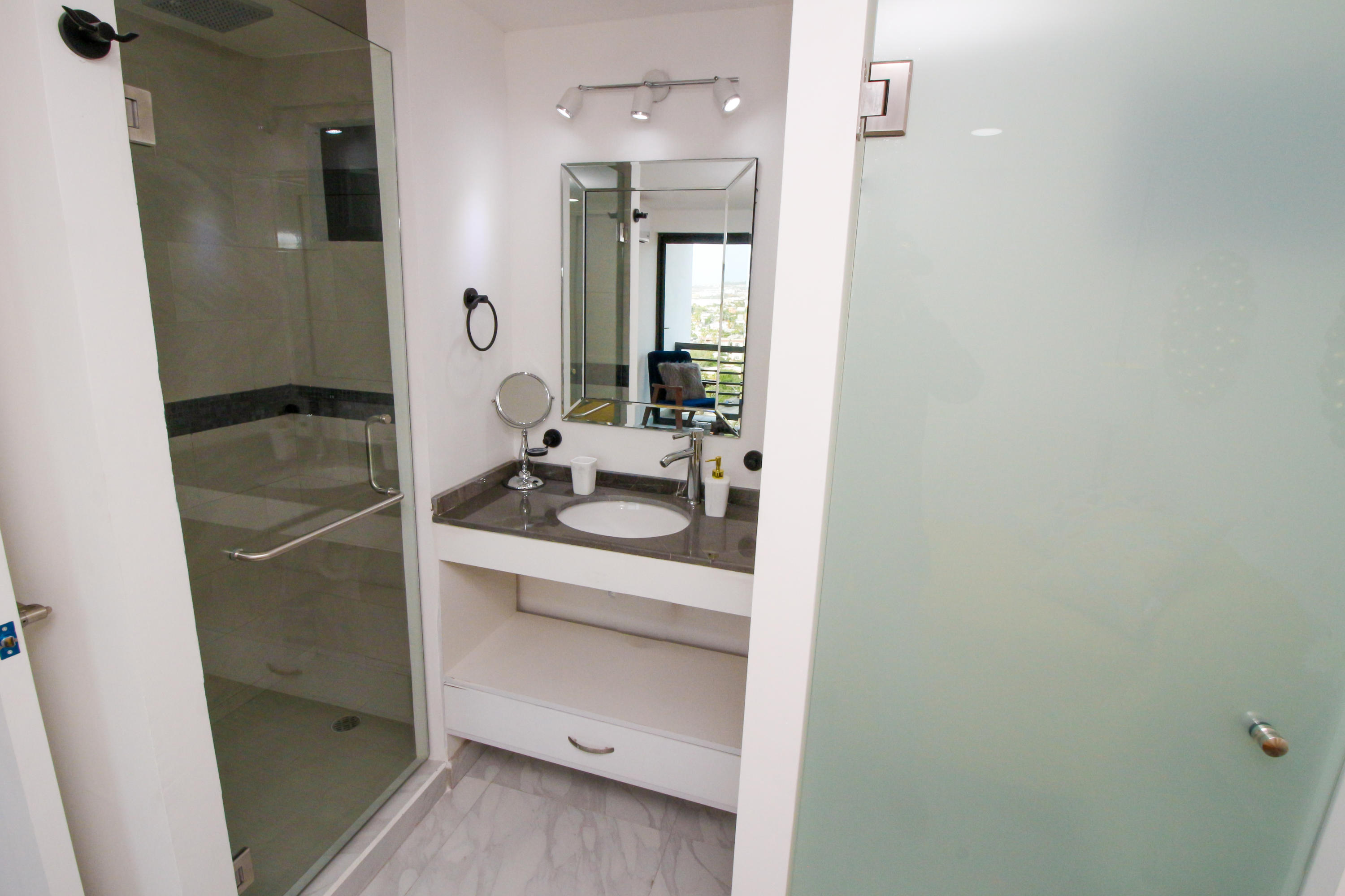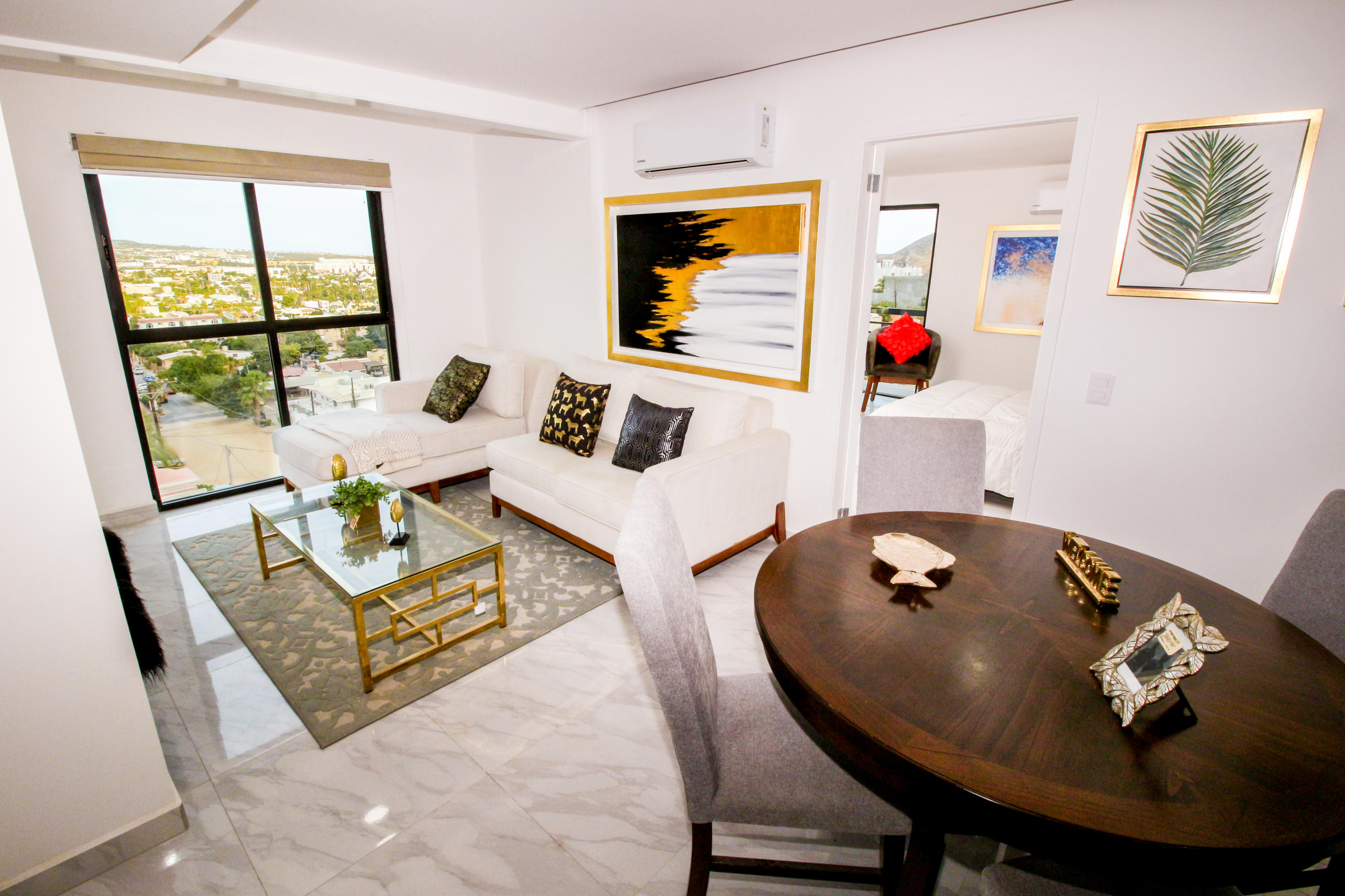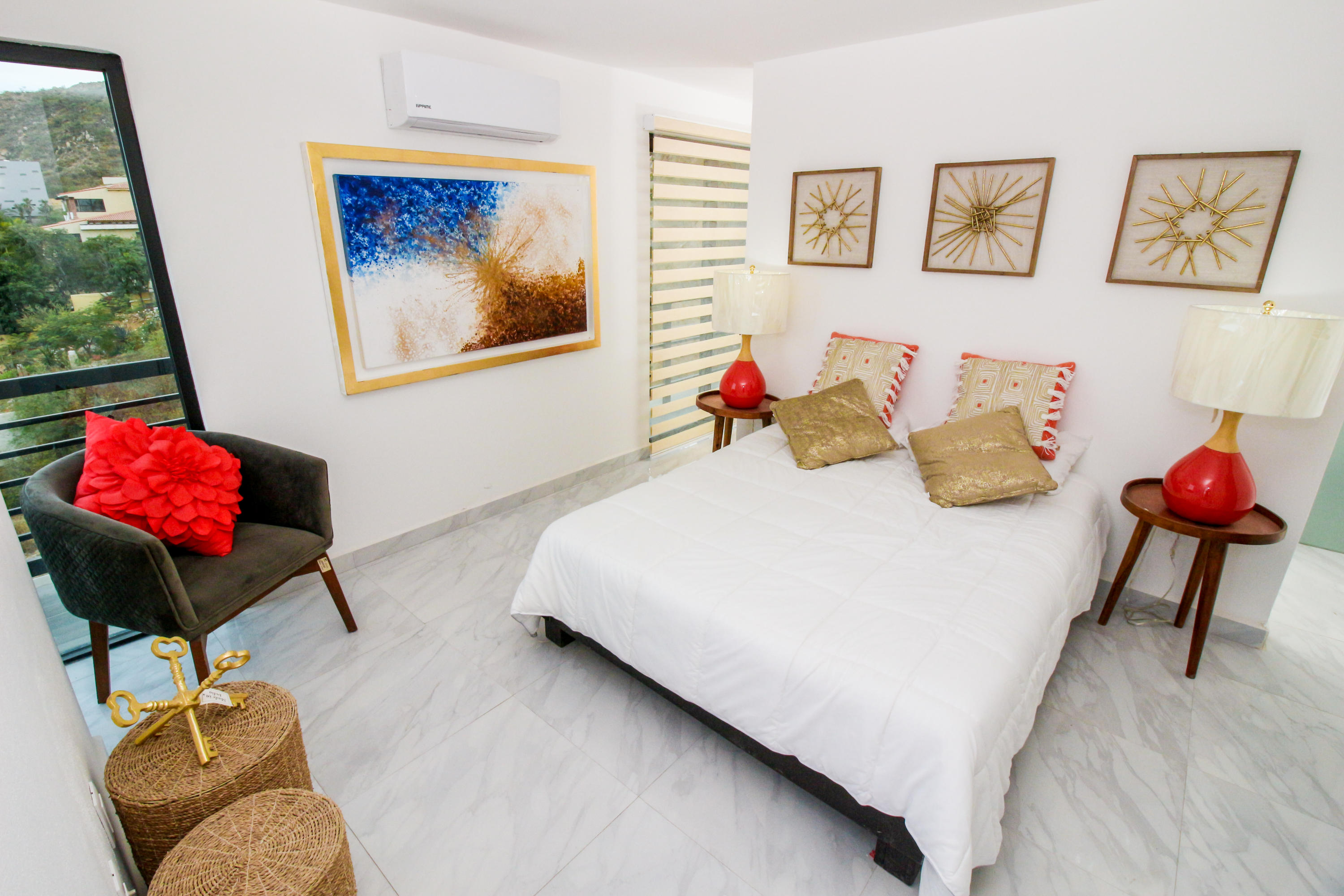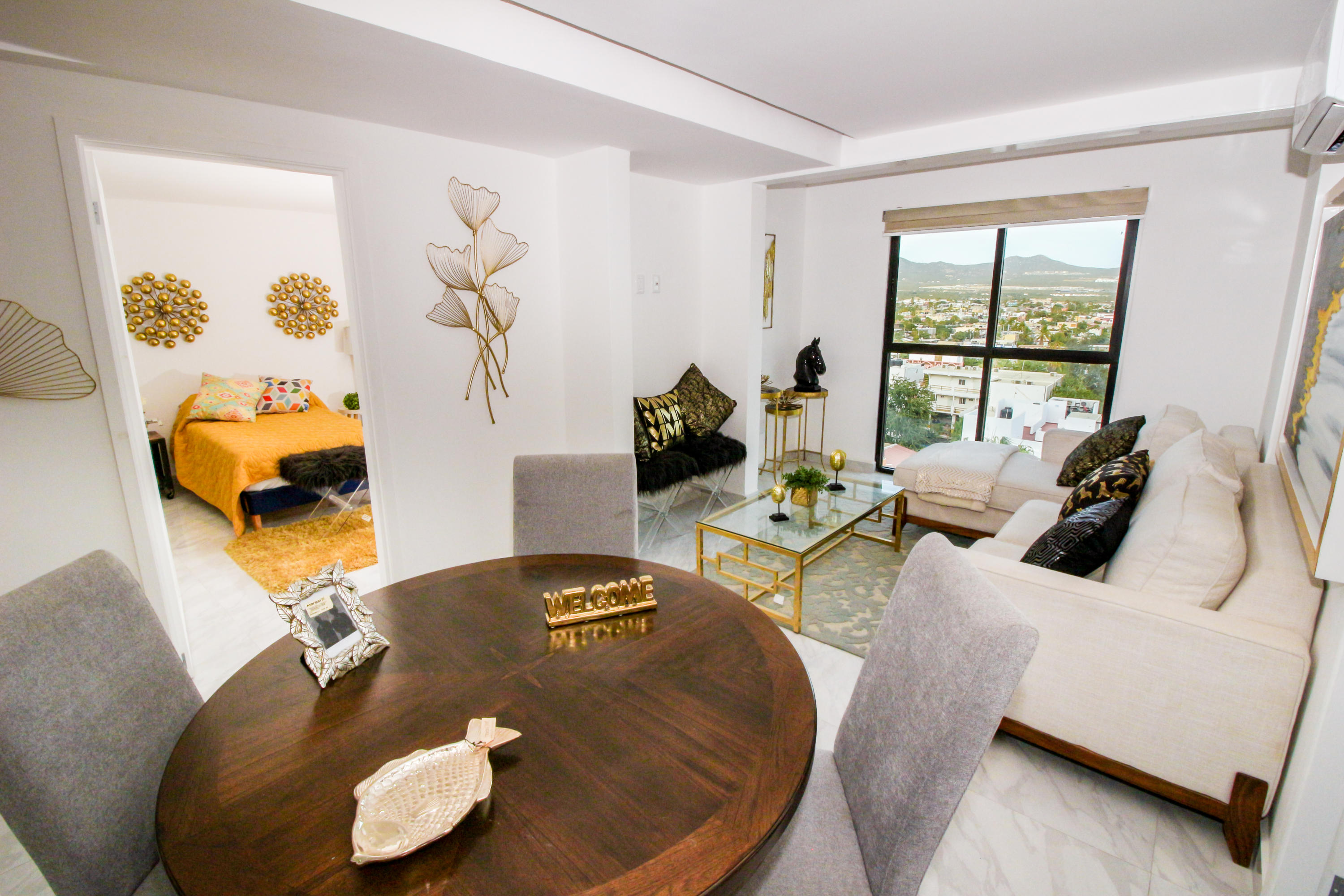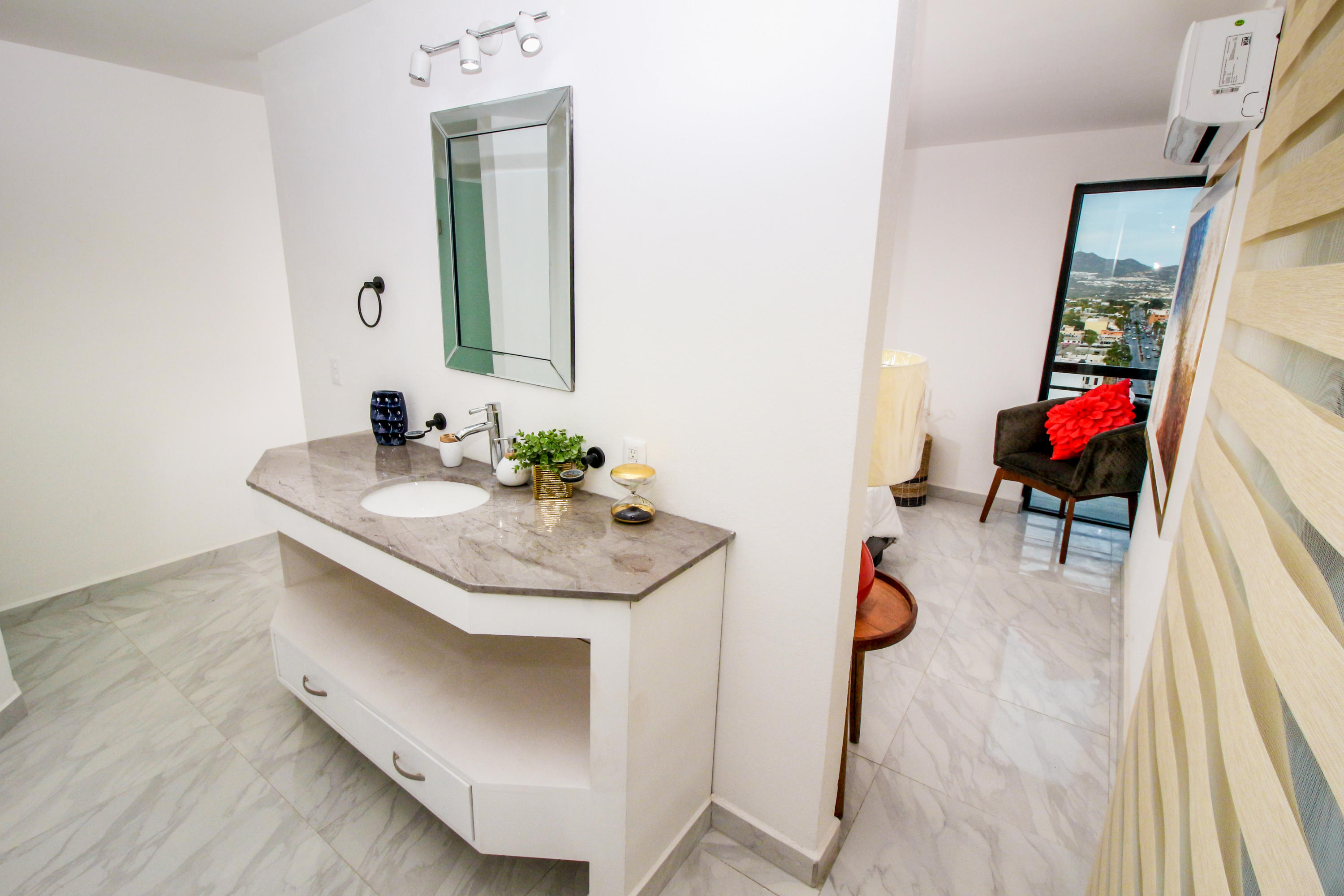 *Location * Location * Location* Morgan Residences & Boutique Hotel is perfectly located only a 3/4 of a mile away from the famous Cabo San Lucas Marina- Cabos entertaining Downtown & San Lucas white Sand local Beaches. This is by *F A R* the *VERY BEST* Corner Condo at Morgan Residences & Boutique Hotels with so much natural Sunlight entering this outstanding Condo. You will be stunned with its amazing Ocean and Mountain views from ALL Bedrooms, Living room & its gorgeous Kitchen. This breathtaking Condo is located on the 5th floor. You will have to see it to believe it! 240 degree views of the City of Cabo San Lucas with Blue water views from the rooftop with a fantastic large Infinity pool. A largely equipped modern Gym, Relaxing sunbathing area with fire pits and BBQ